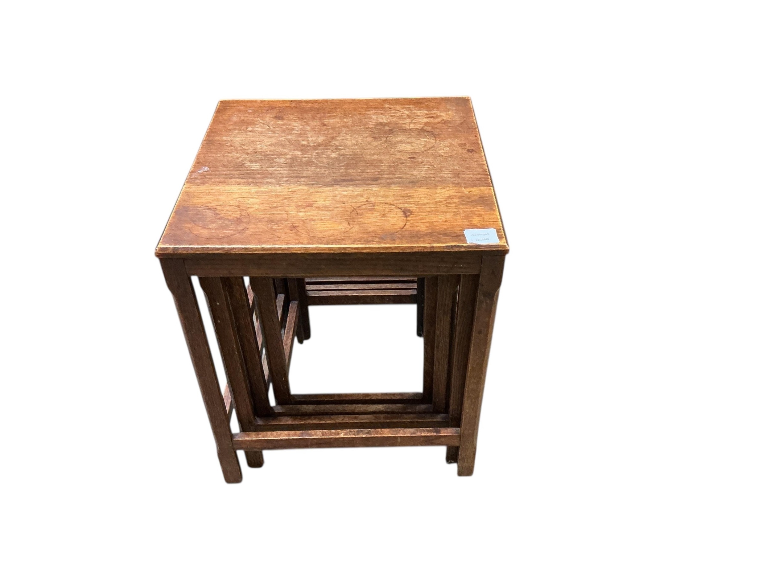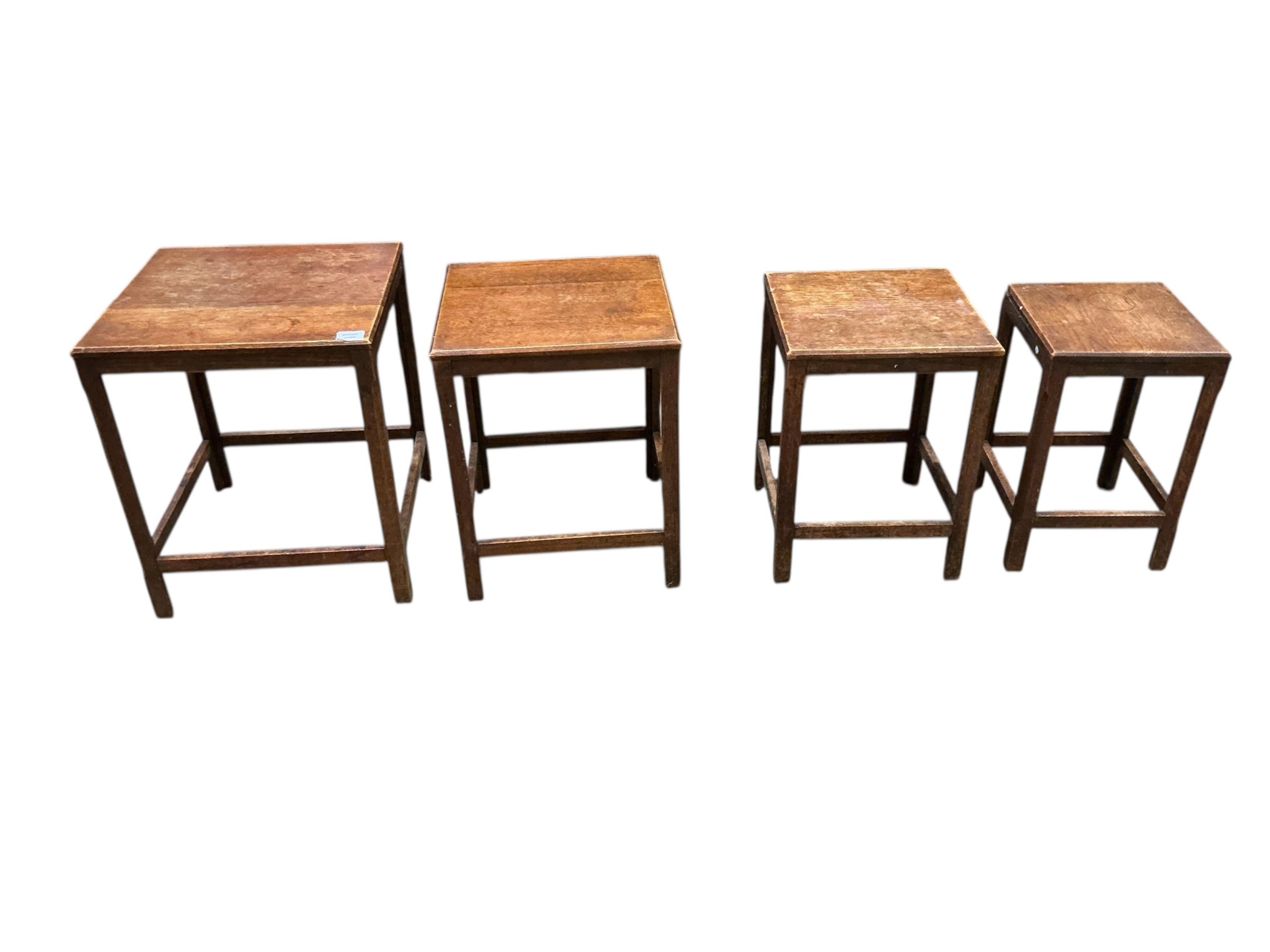 A quartetto of Arts & Crafts style oak tea tables, width 44cm, depth 45cm, height 54cm