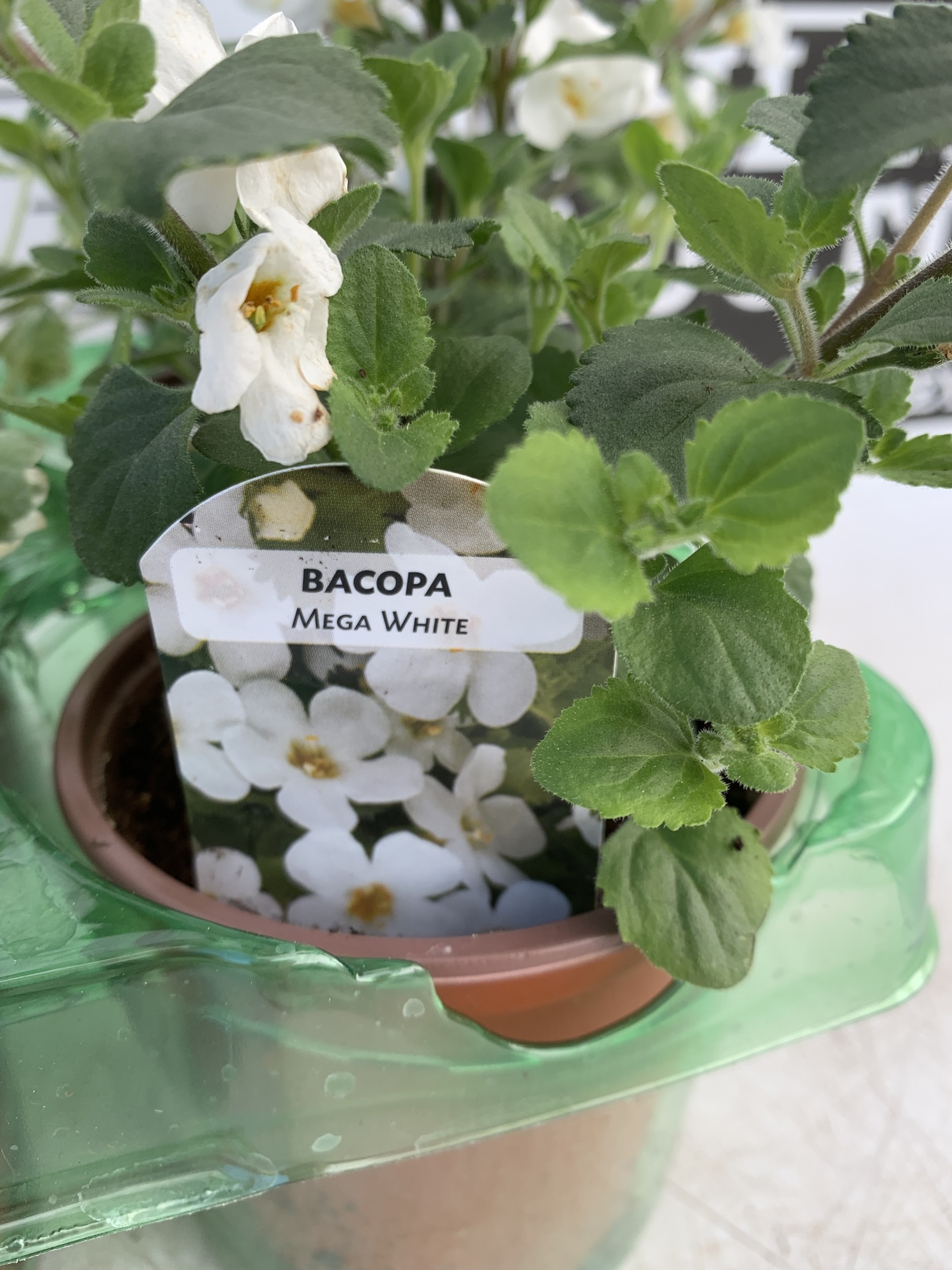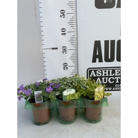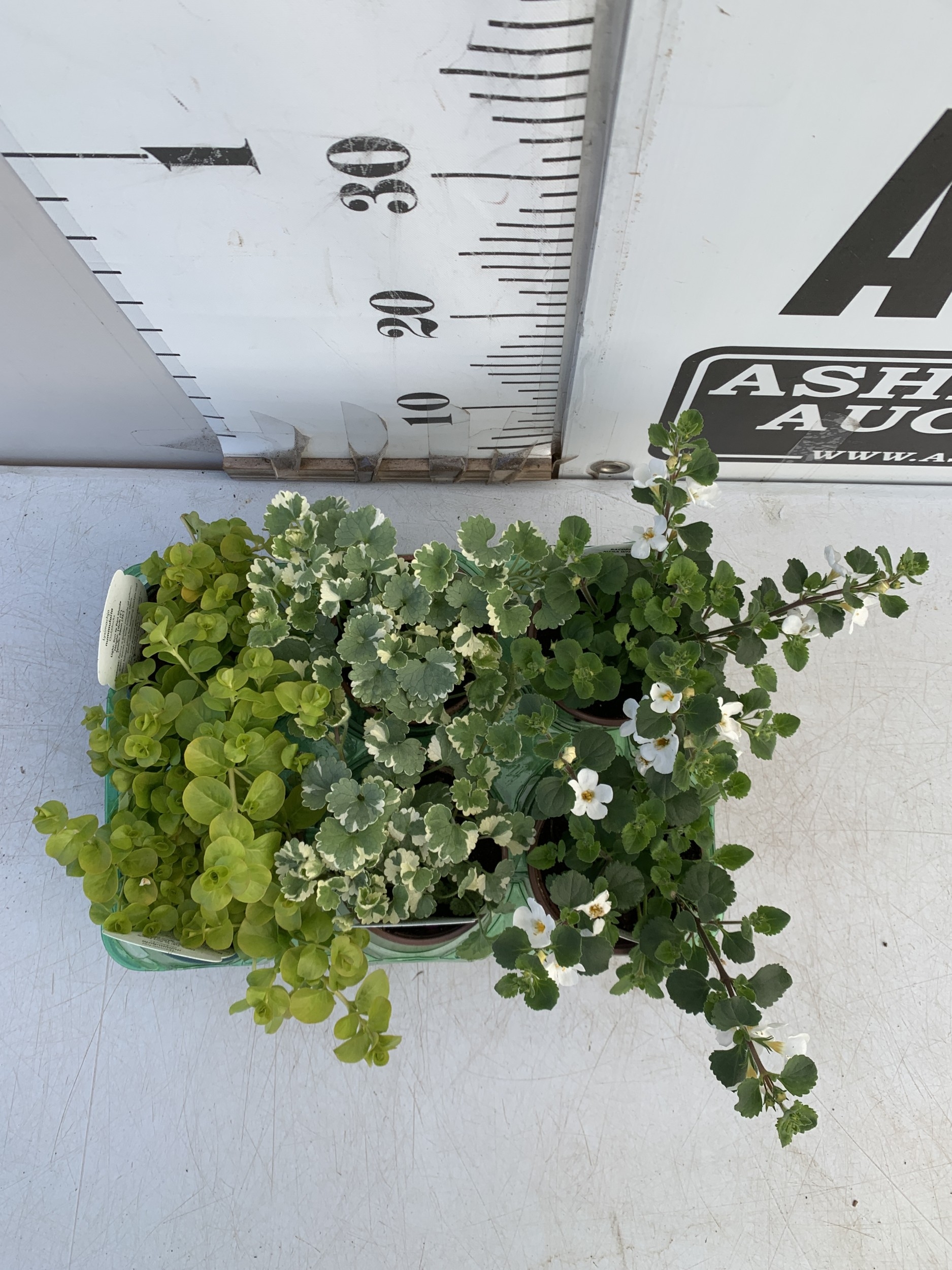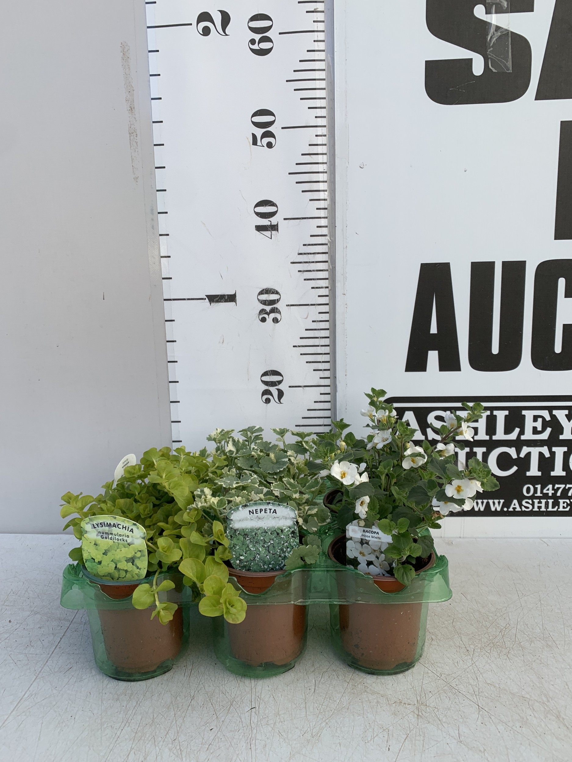 SIX MIXED BASKET PLANTS - TWO NEPETA, TWO LYSIMACHIA NUMMULARIA 'GOLDILOCKS' AND TWO BACOPA 'MEGA WHITE' IN P9CM POTS ON A TRAY. TO BE SOLD FOR THE SIX