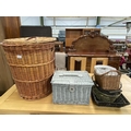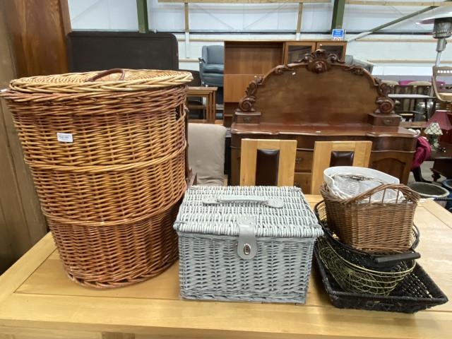 Assorted wicker baskets including a Marks & Spencer hamper
