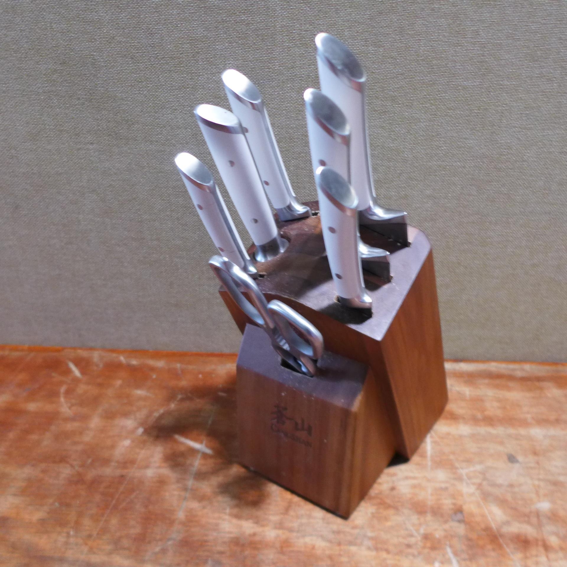A Cangshan knife block with knives (377-151) *This lot is su...
