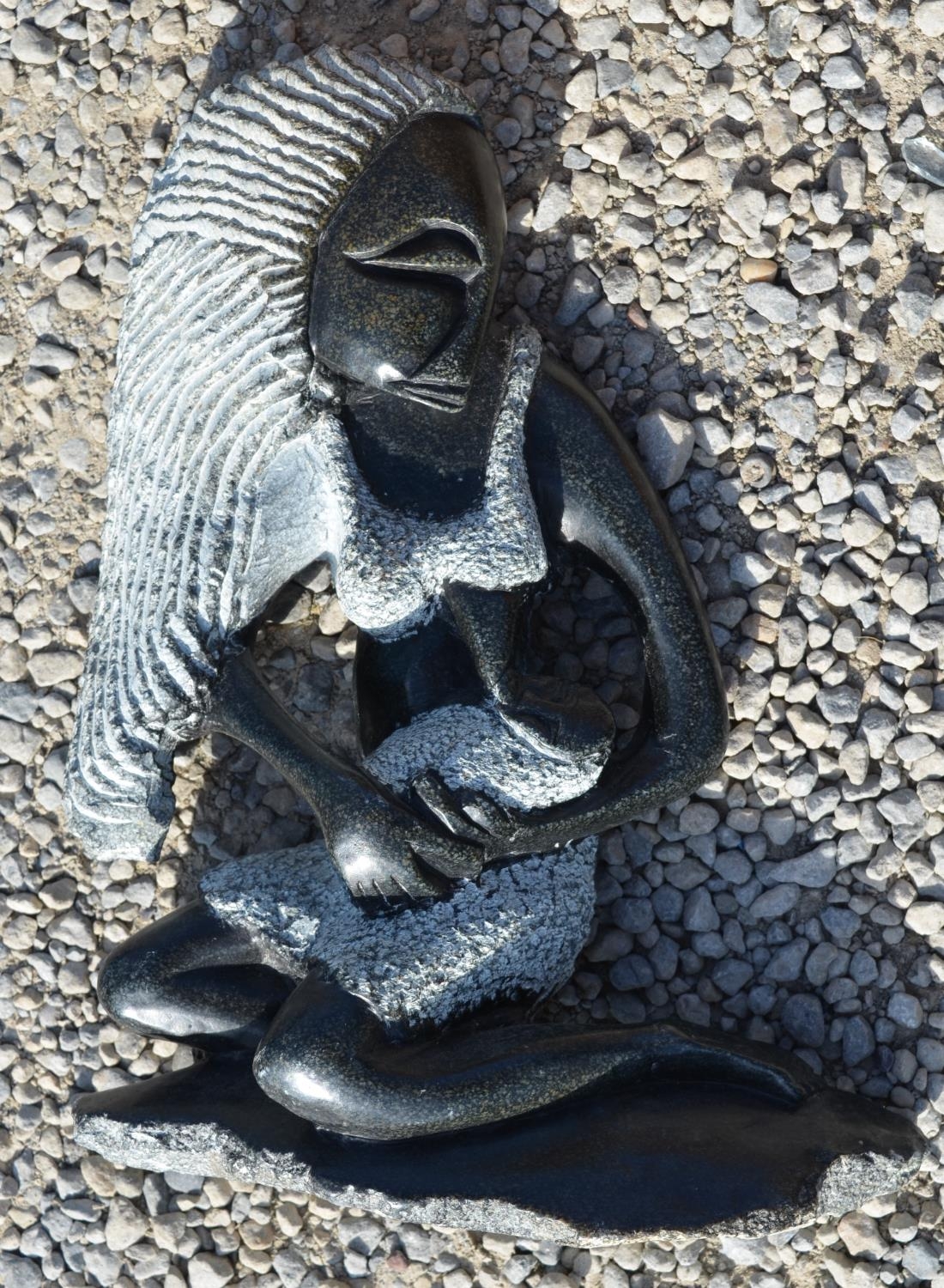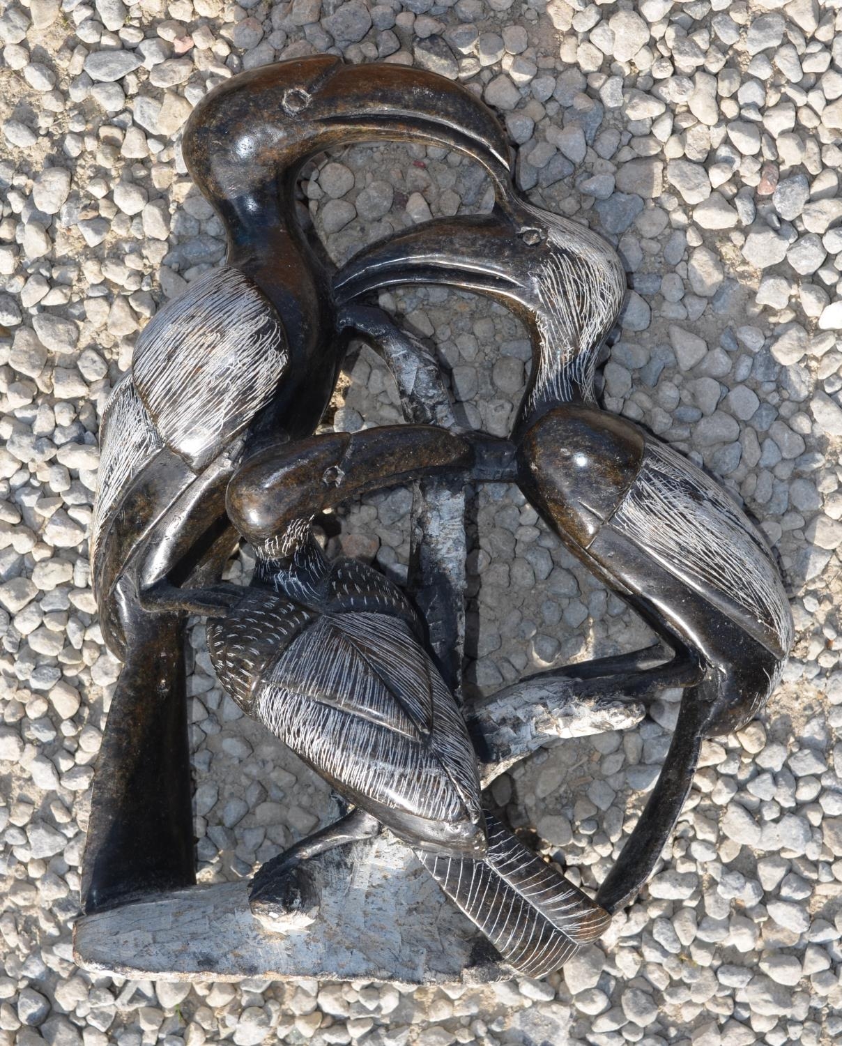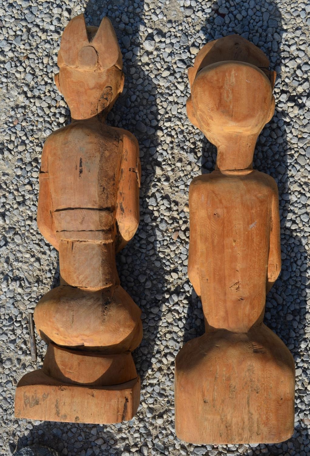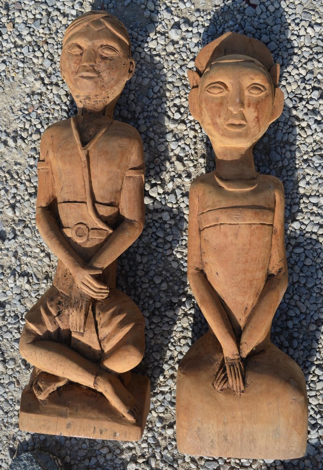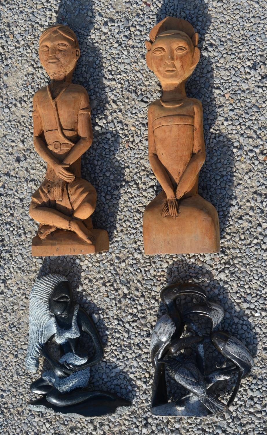 Eastern carved softwood figures of garden Goddess H50cm and another two black figurines (4)