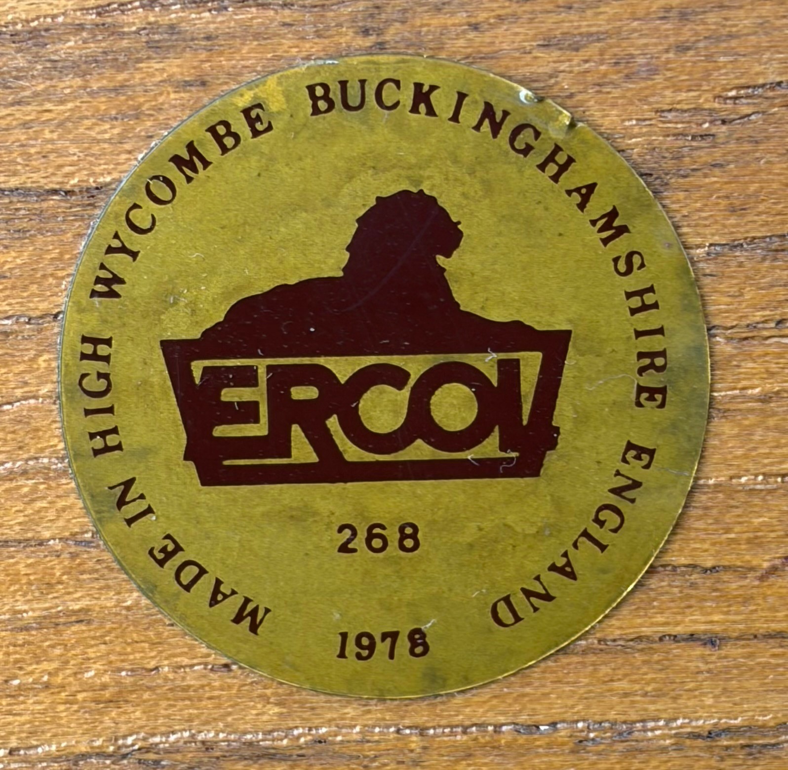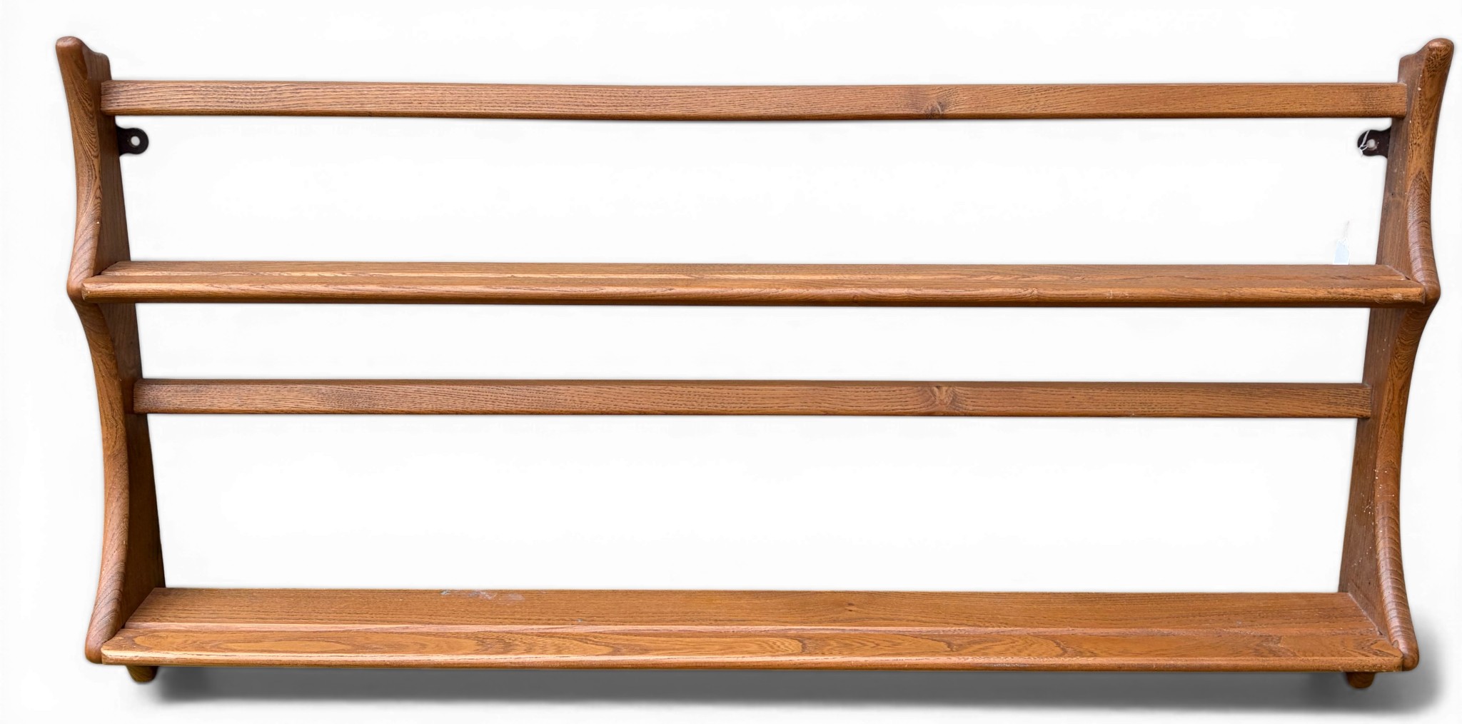 A vintage Ercol waterfall plate rack with gold label, 96cm w x 50cm h x 13cm d.