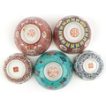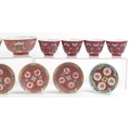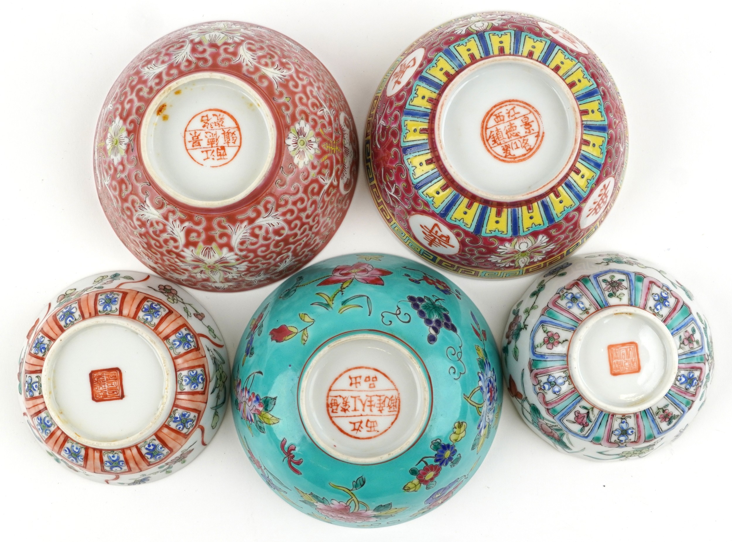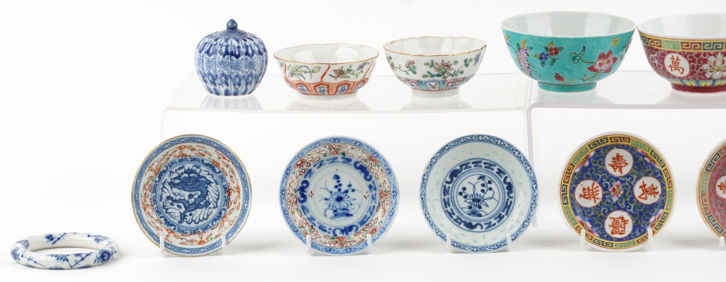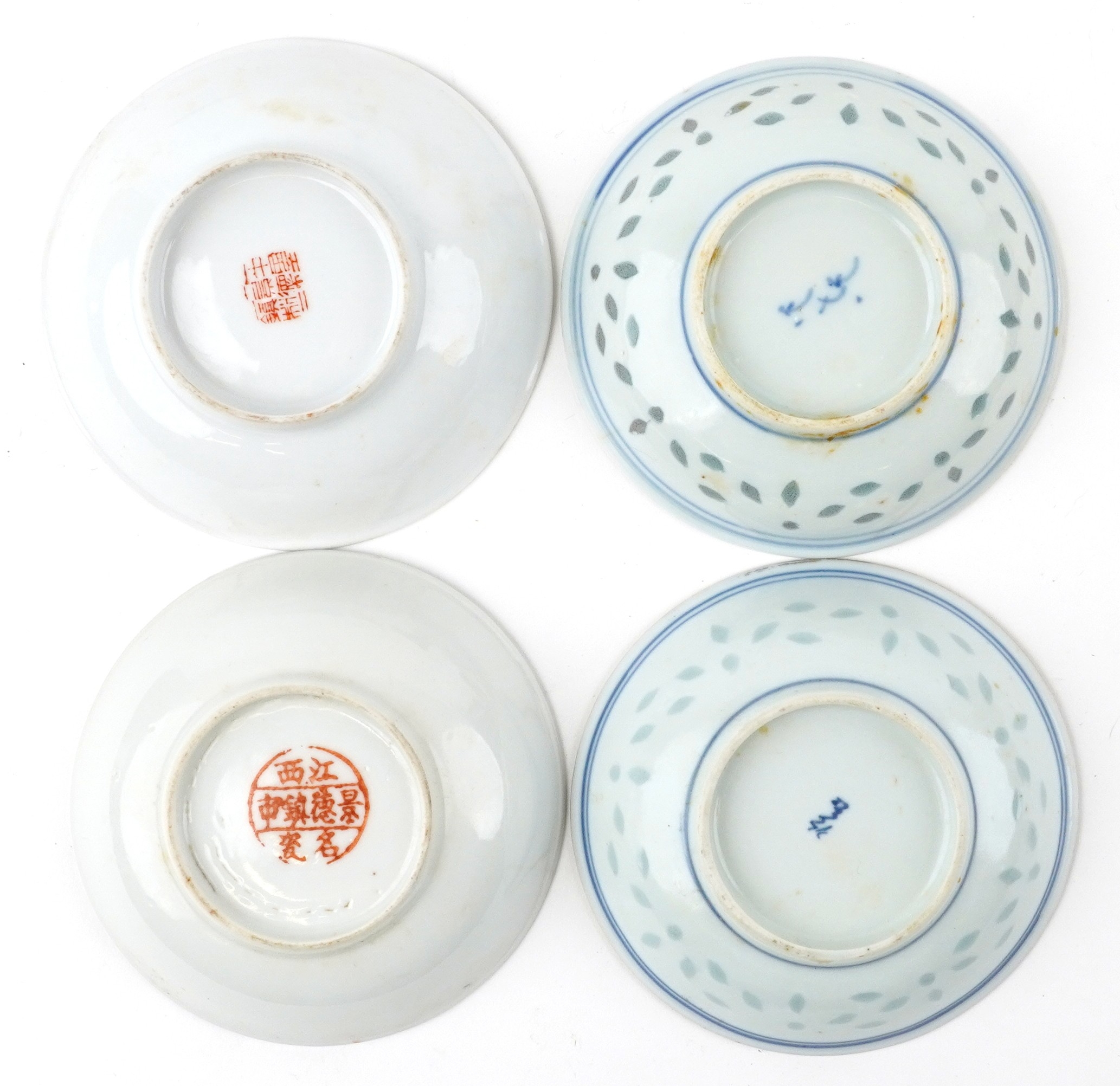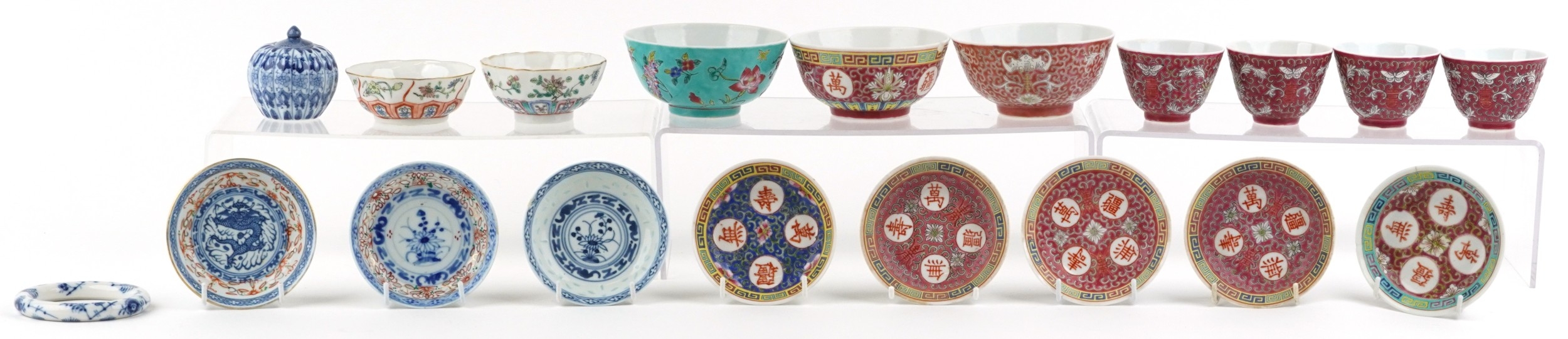 A collection of Chinese porcelain including rice bowls, tea bowls and saucers, each with hand painted floral decoration, the largest 11.5cm in diameter.