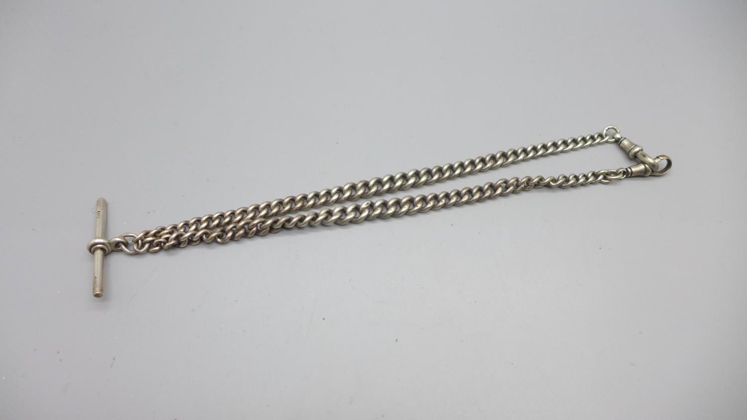 A silver double Albert chain, each link marked, 35g, 37.5cm