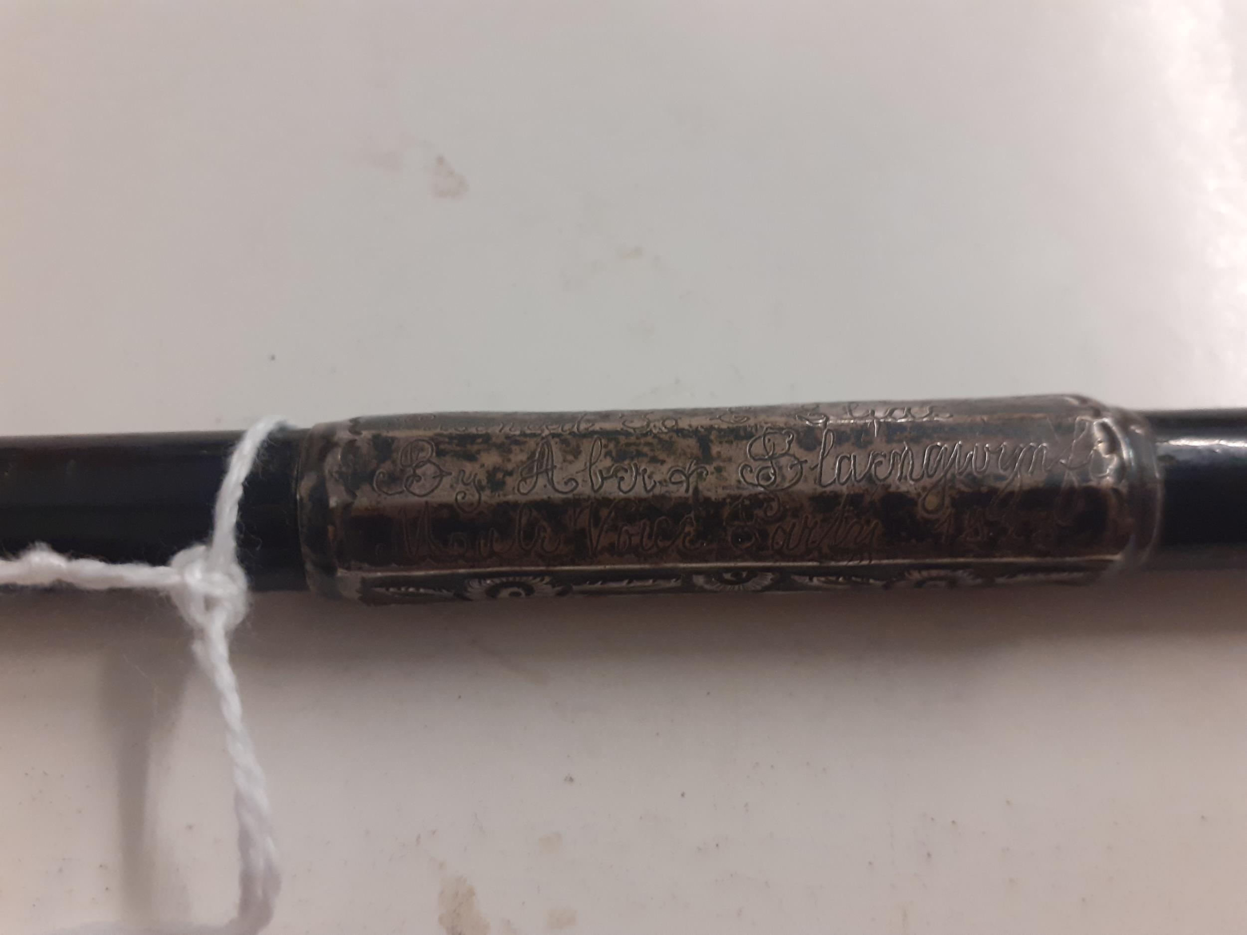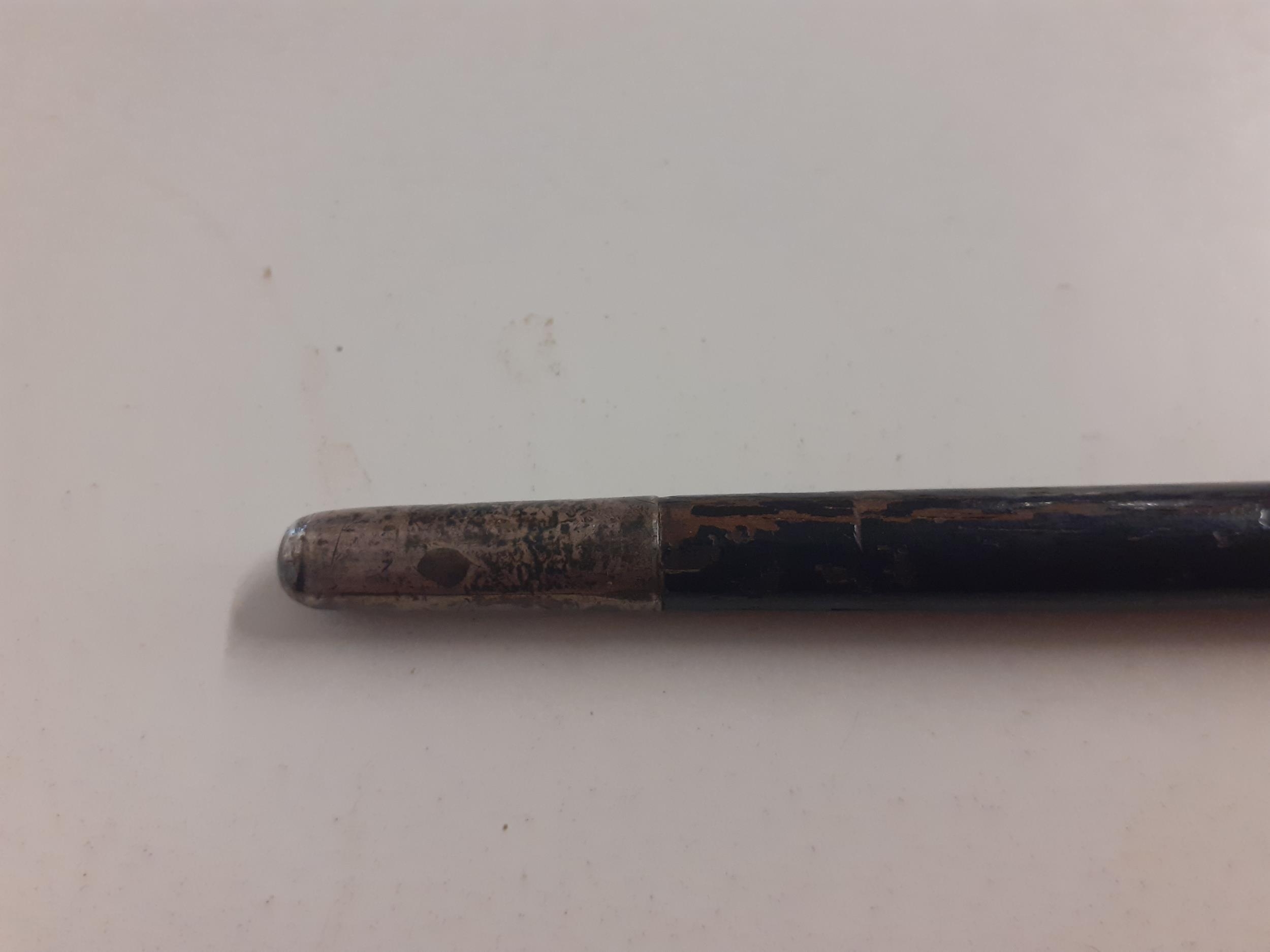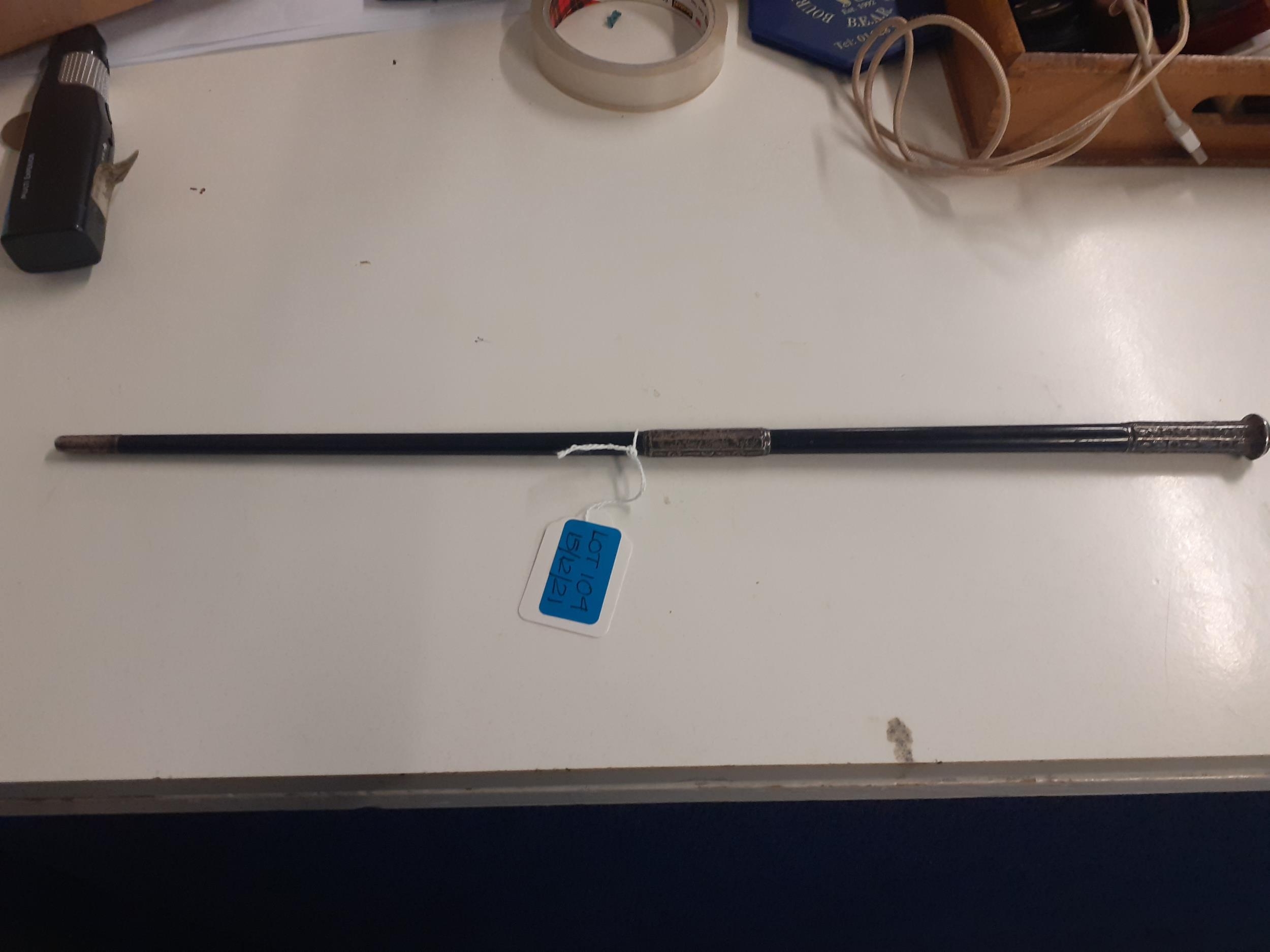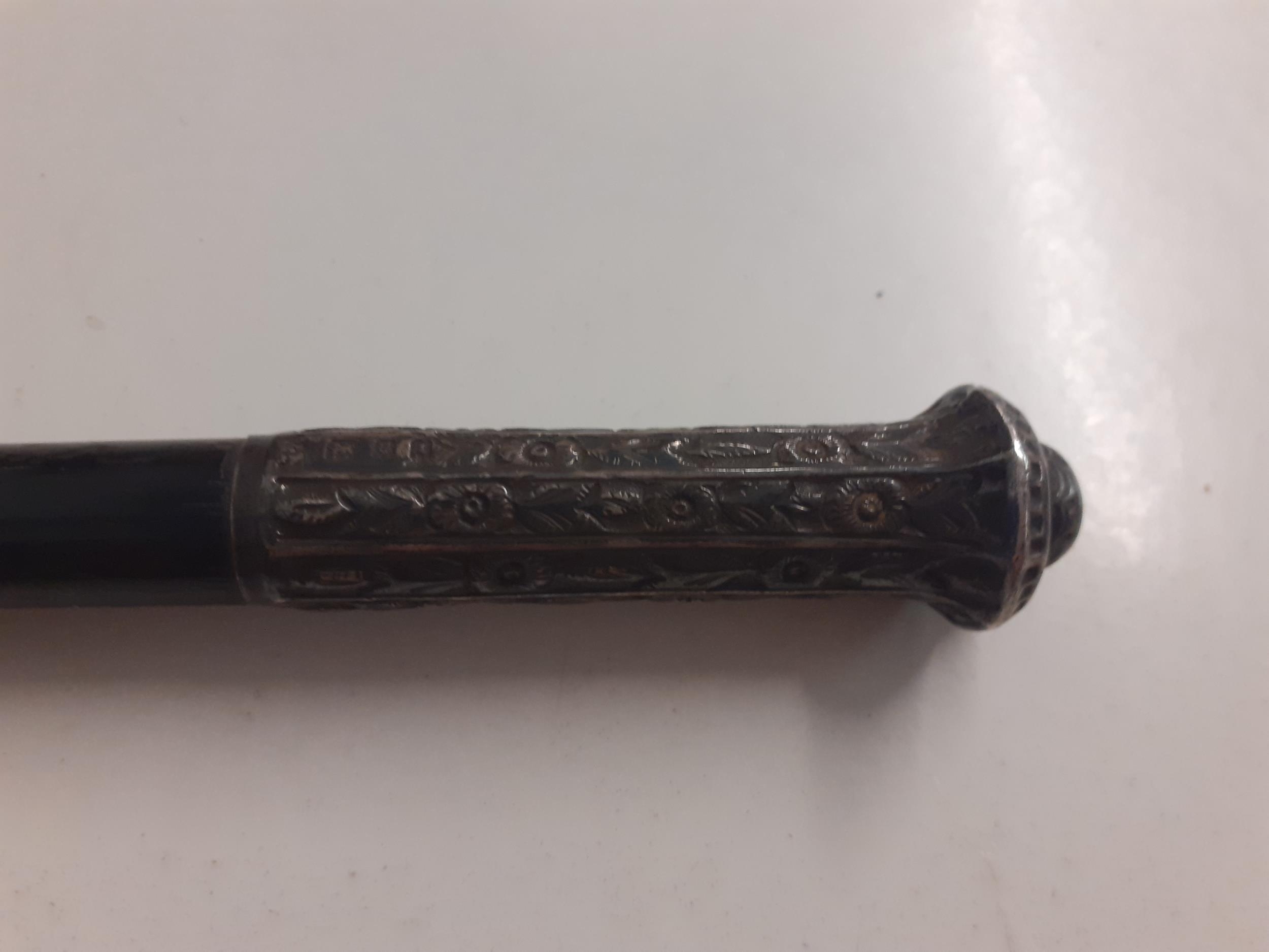 A Late 19th/early 20th Century ebony conductor's baton with Sterling silver worked handle, tip and central band, silver marks to the handle