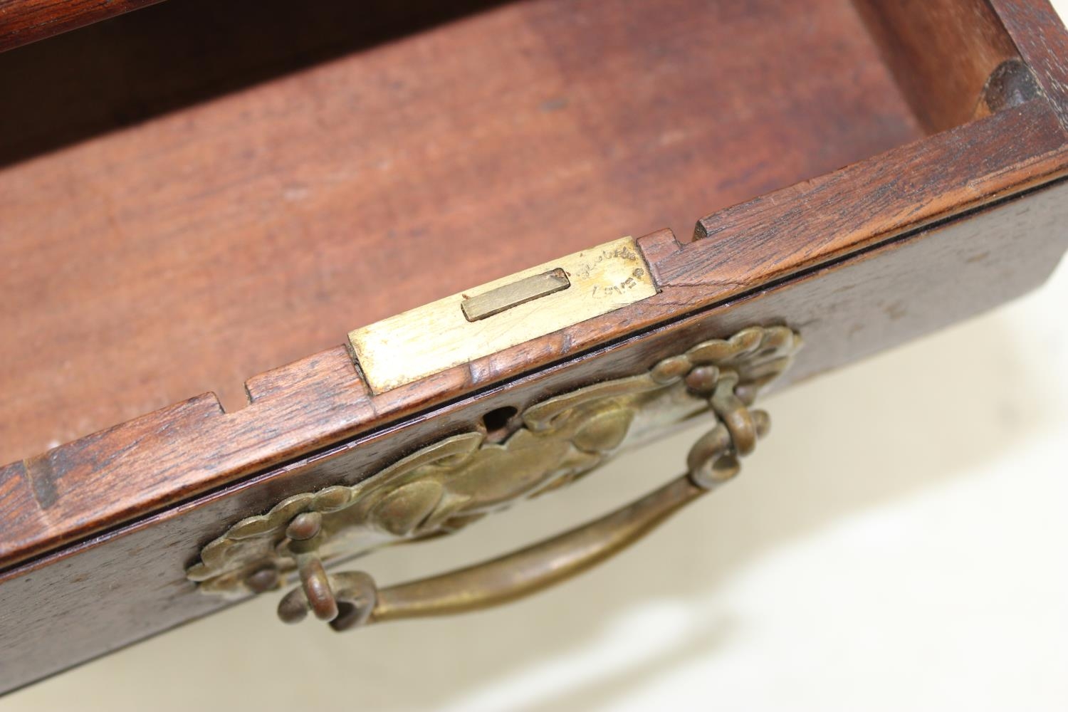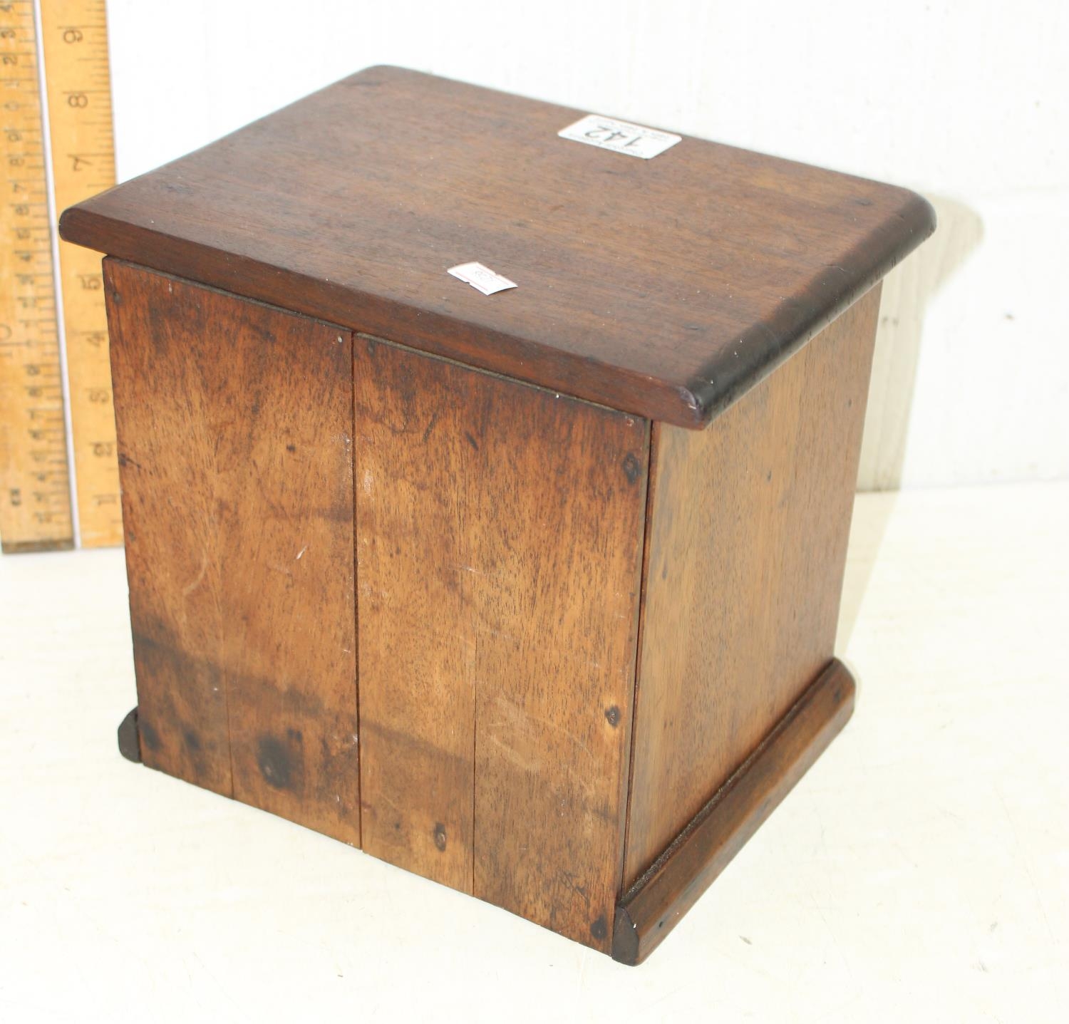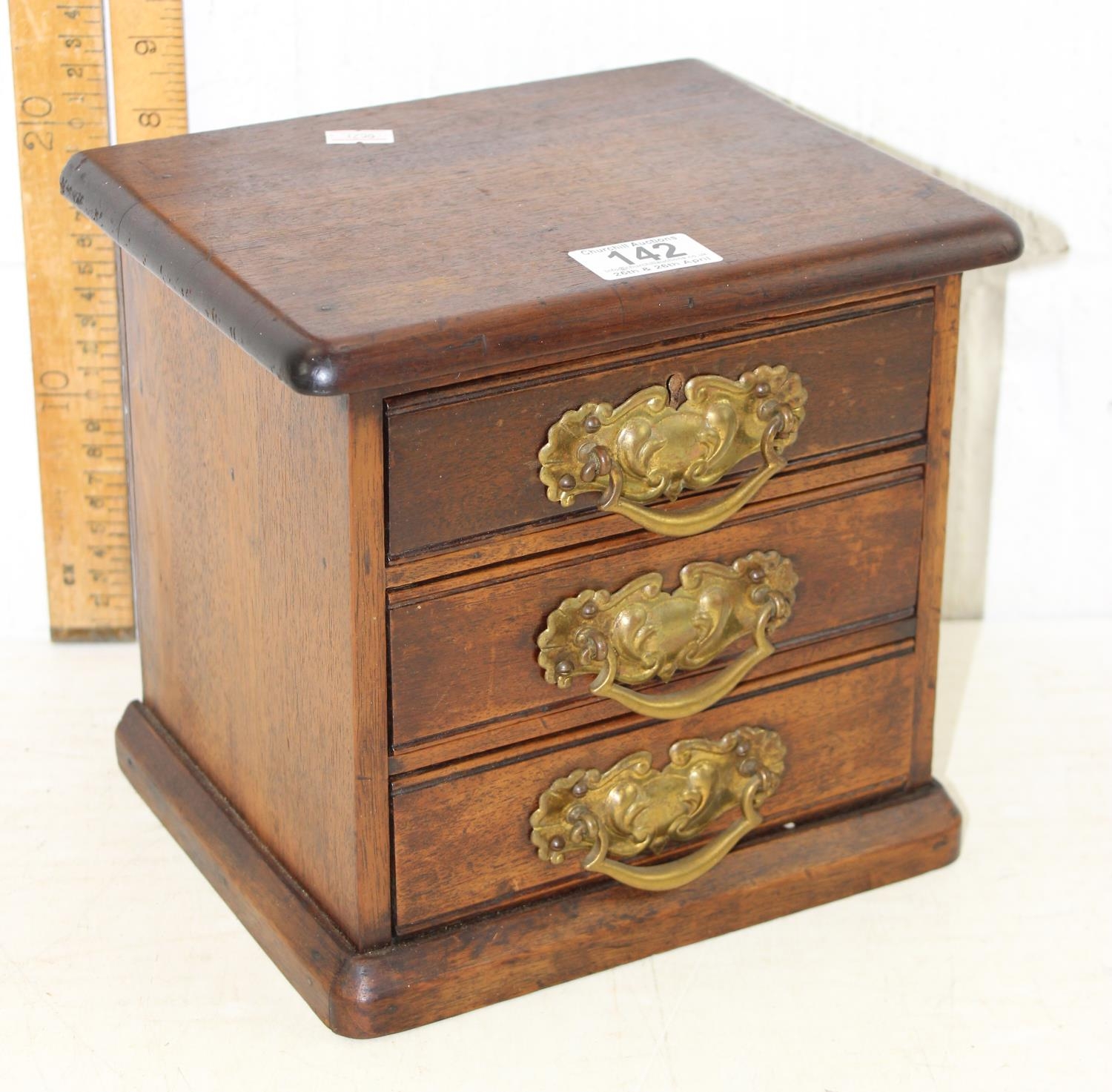 A small antique wooden 3 drawer collectors chest with brass handles