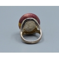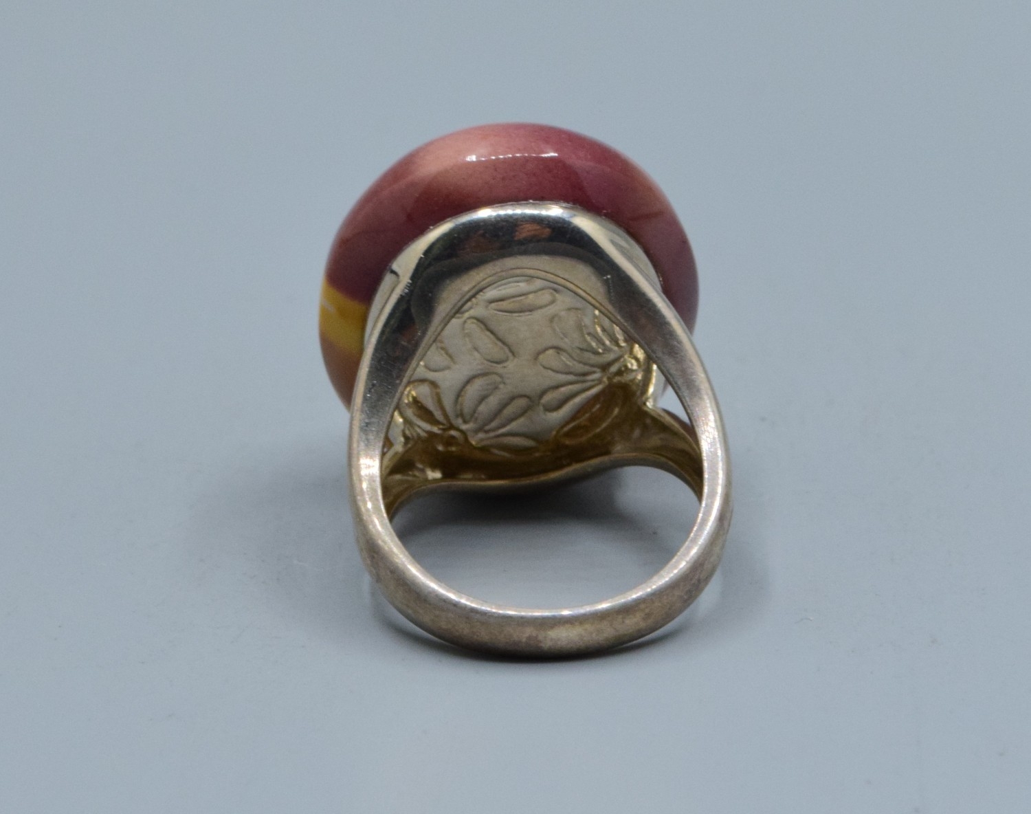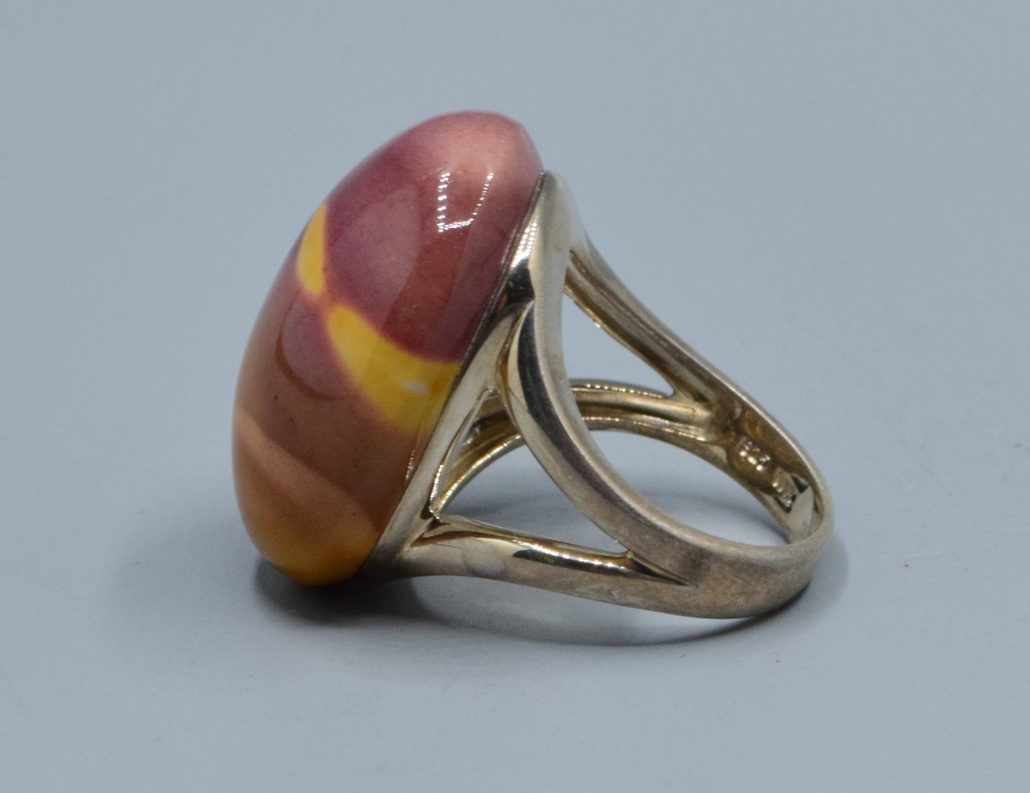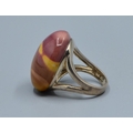 925 silver large oval Mookaite Jasper ladies dress ring with the single stone being 27x21x15mm held in a split shank design size Q