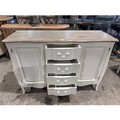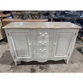 A white two door 4 drawer sideboard with contrast top