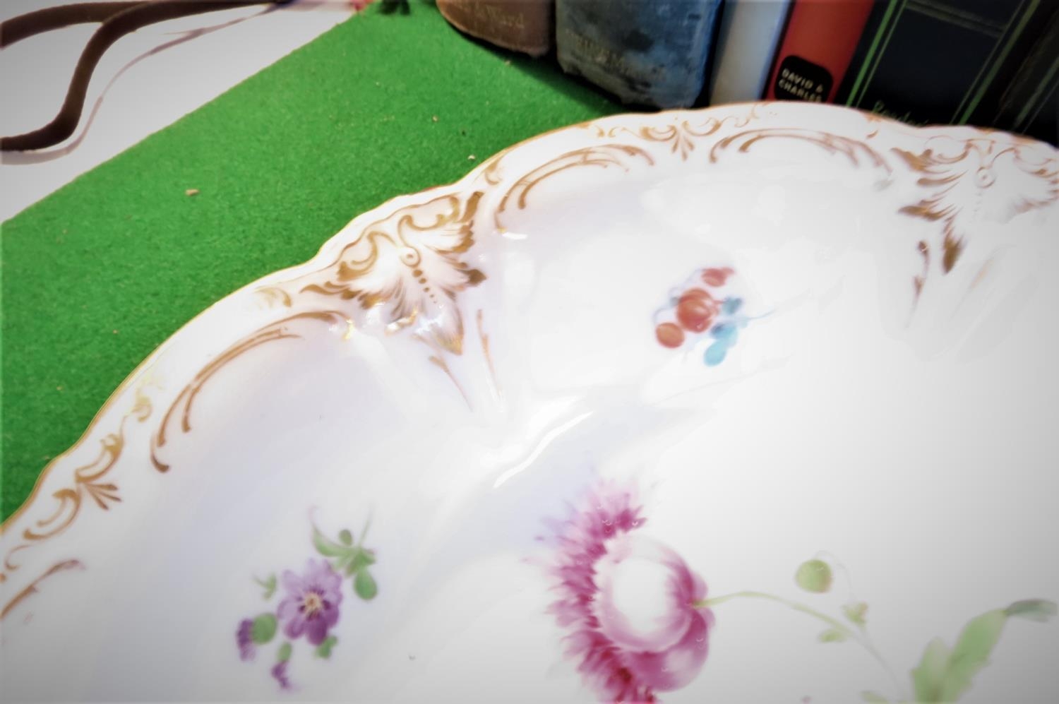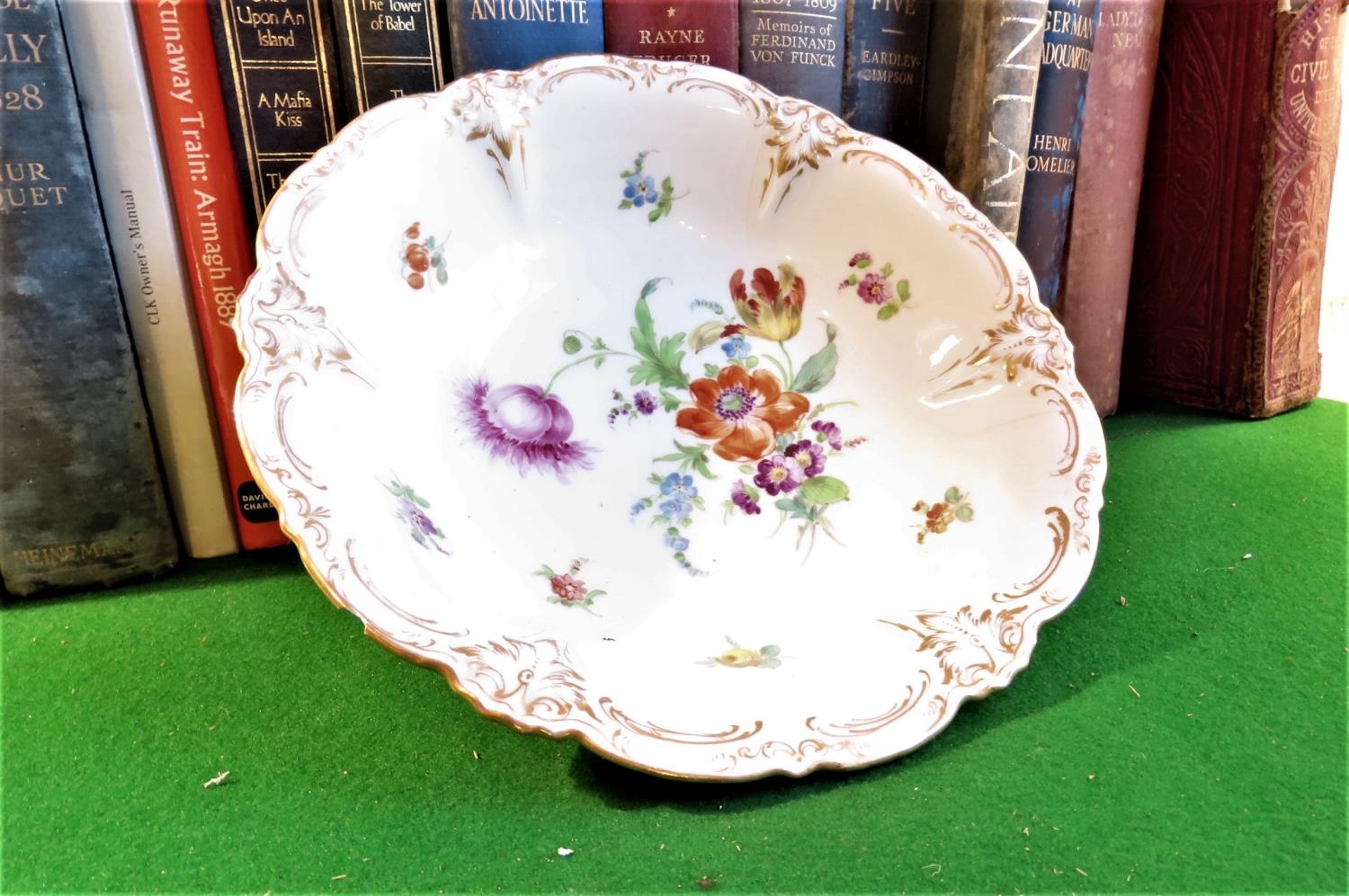 Dresden Bone Porcelain Bowl Shaped Form with Floral Motif Decoration Approximately 8 Inches Diameter
