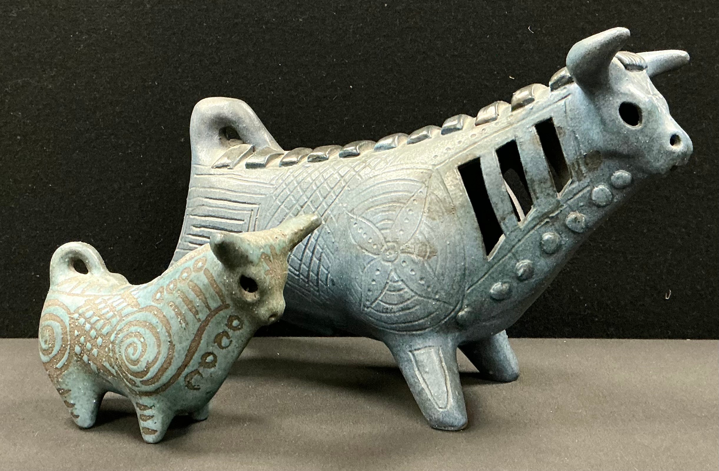 Gus McLaren (Australian 1923 - 2008) a studio pottery bull and calf (2)