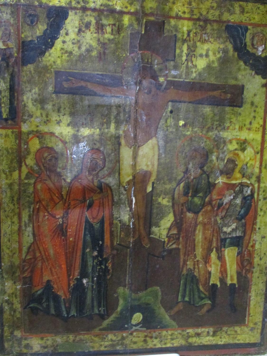 Antique Russian Orthodox Icon Depicting the Crucifixion Circa 1800 (Central Split, Restored)