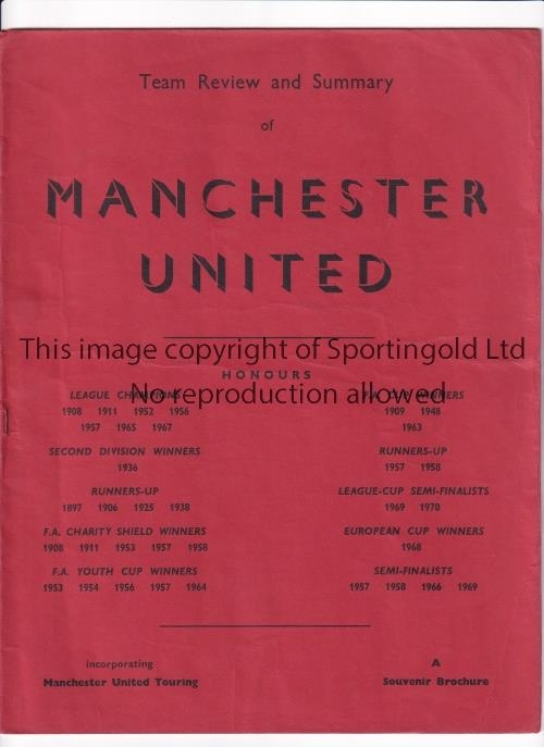 MANCHESTER UNITED Red cover programme for the away Friendly v Celtic 11/5/1970 played for the Toronto Cup in Canada, very slightly creased. Generally good