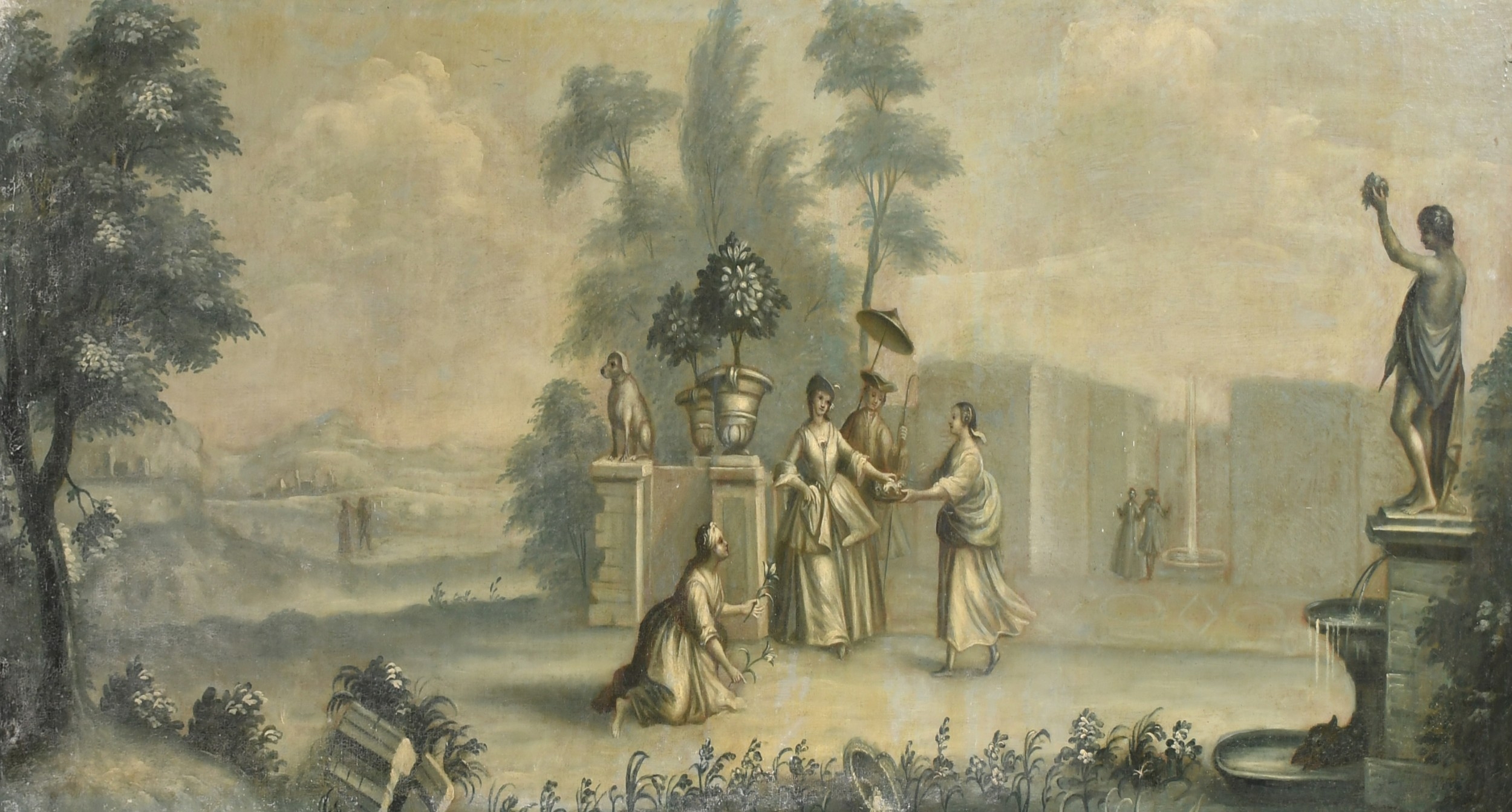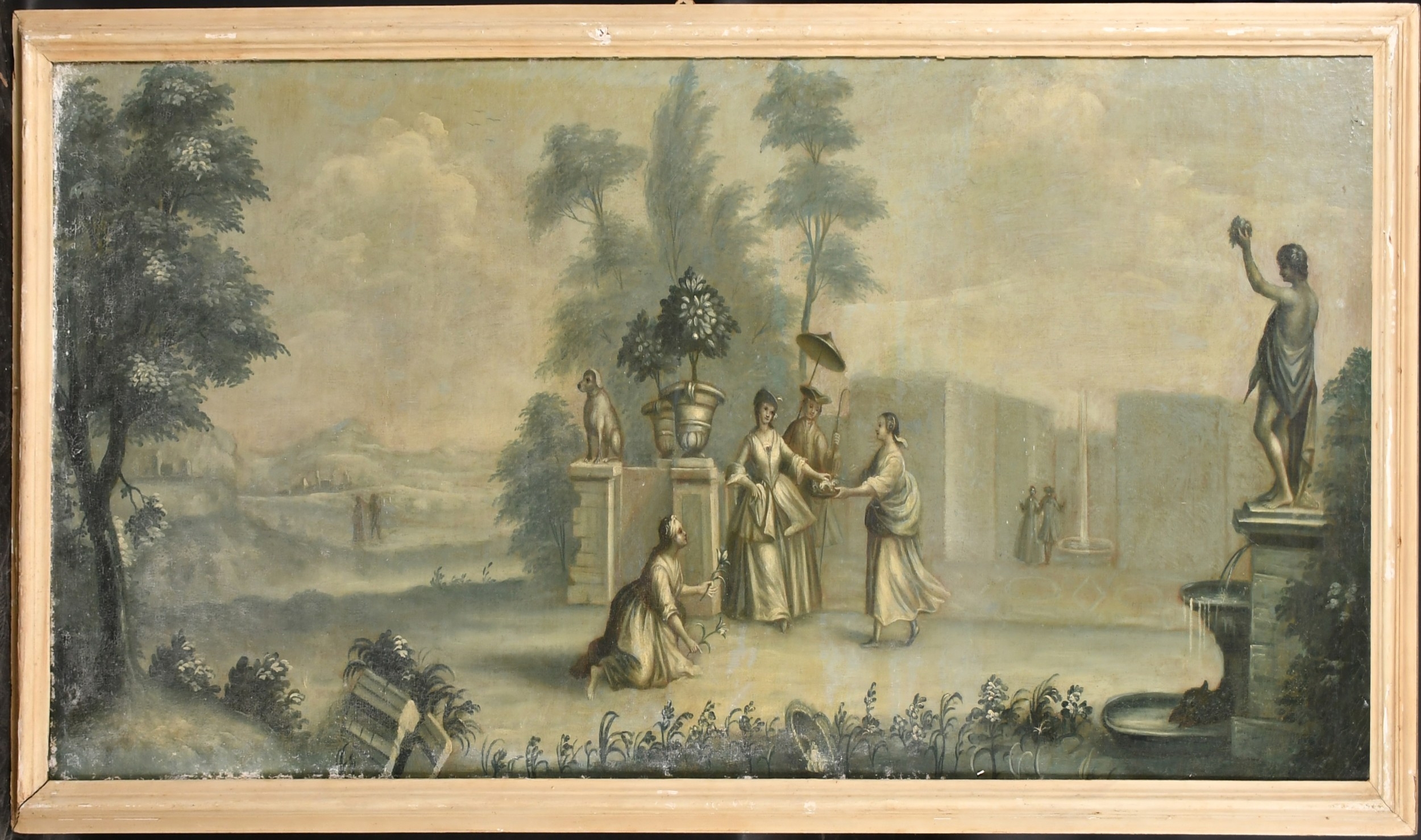 18th Century Italian School. Figures in a Garden, En grisaille, 24.5" x 54.5" (62.2 x 138.4cm)