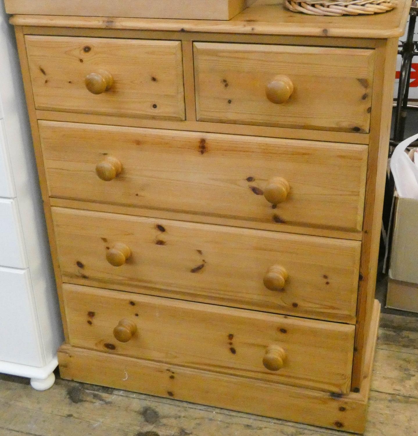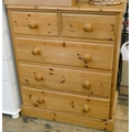 A Victorian style pine chest of three long and two short drawers with bun handles, 2'6 wide