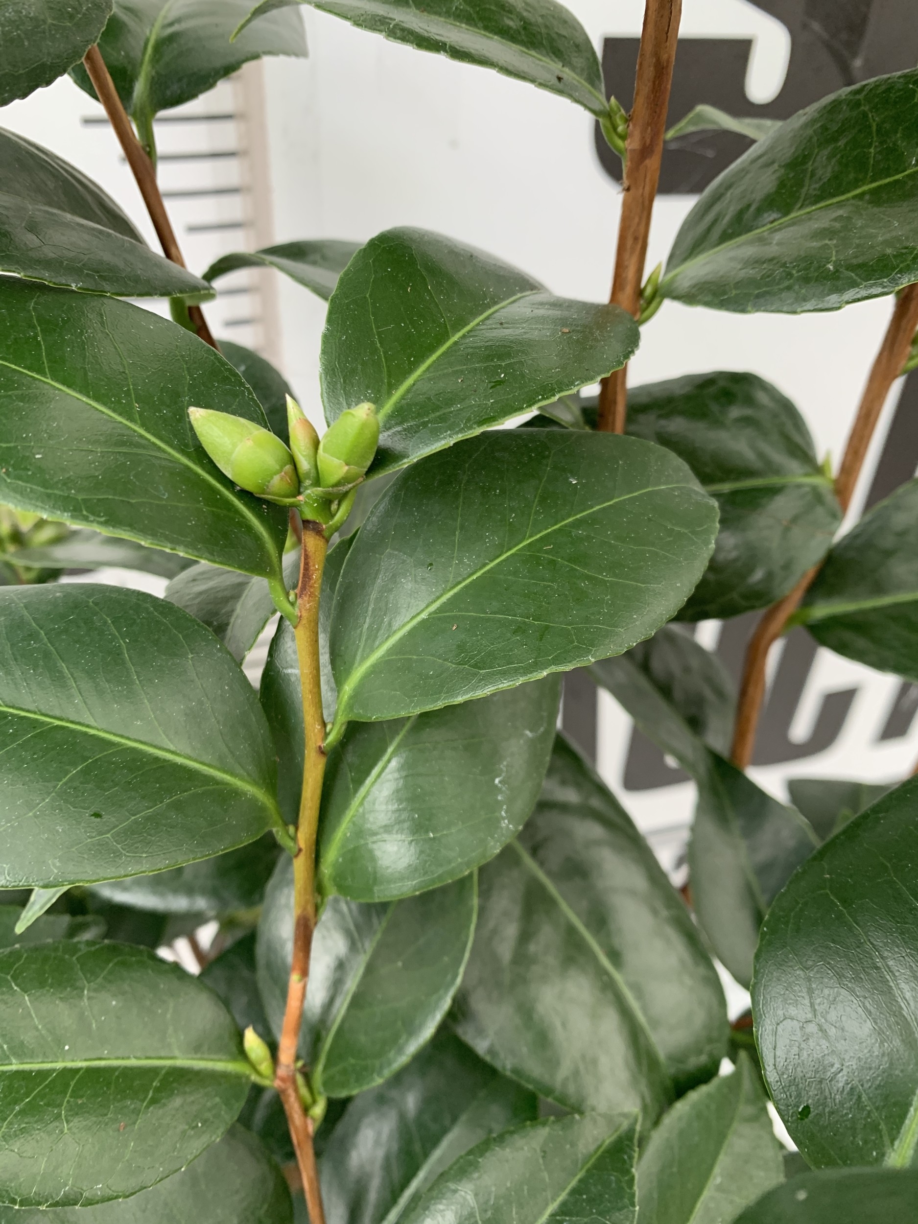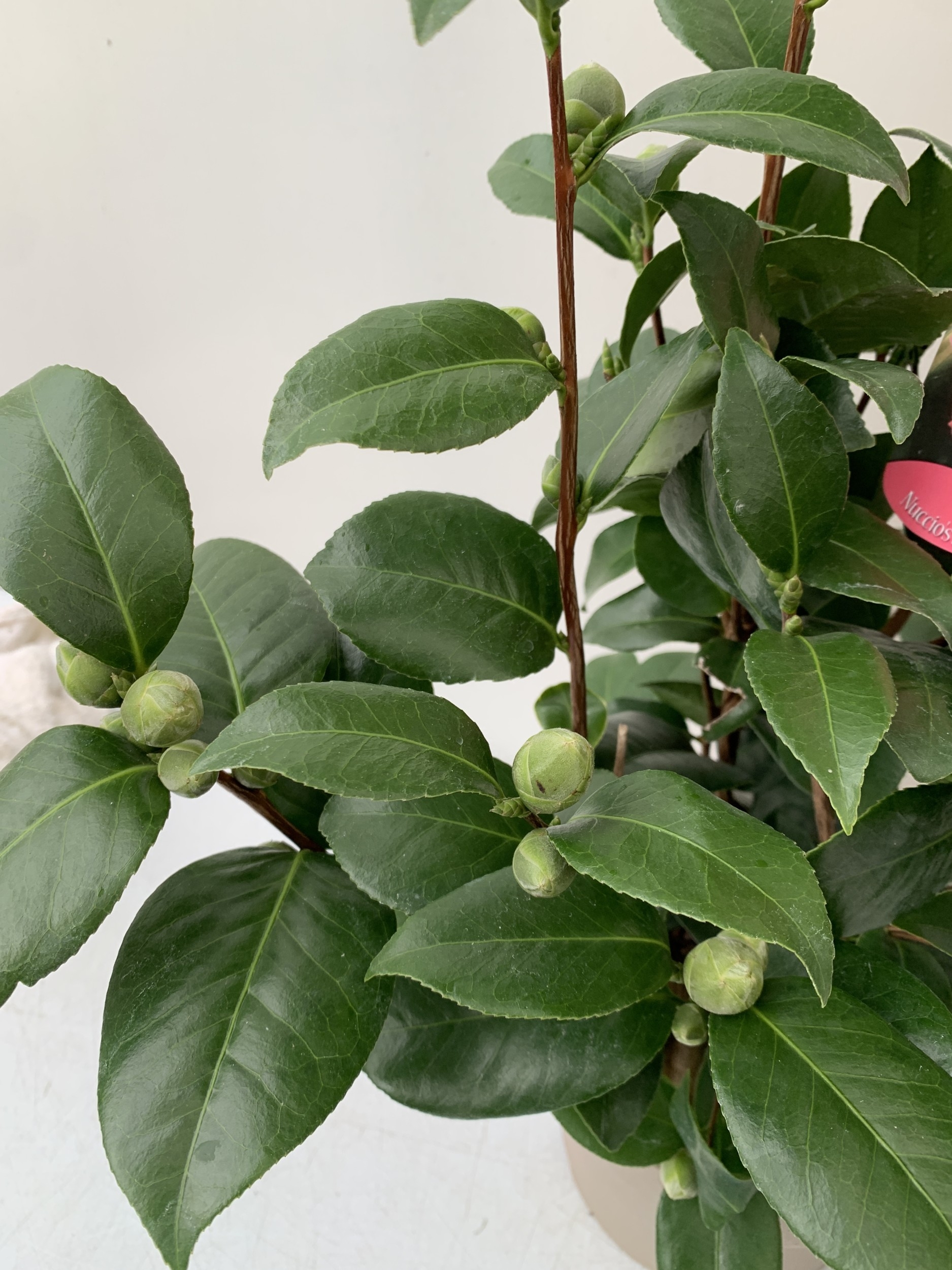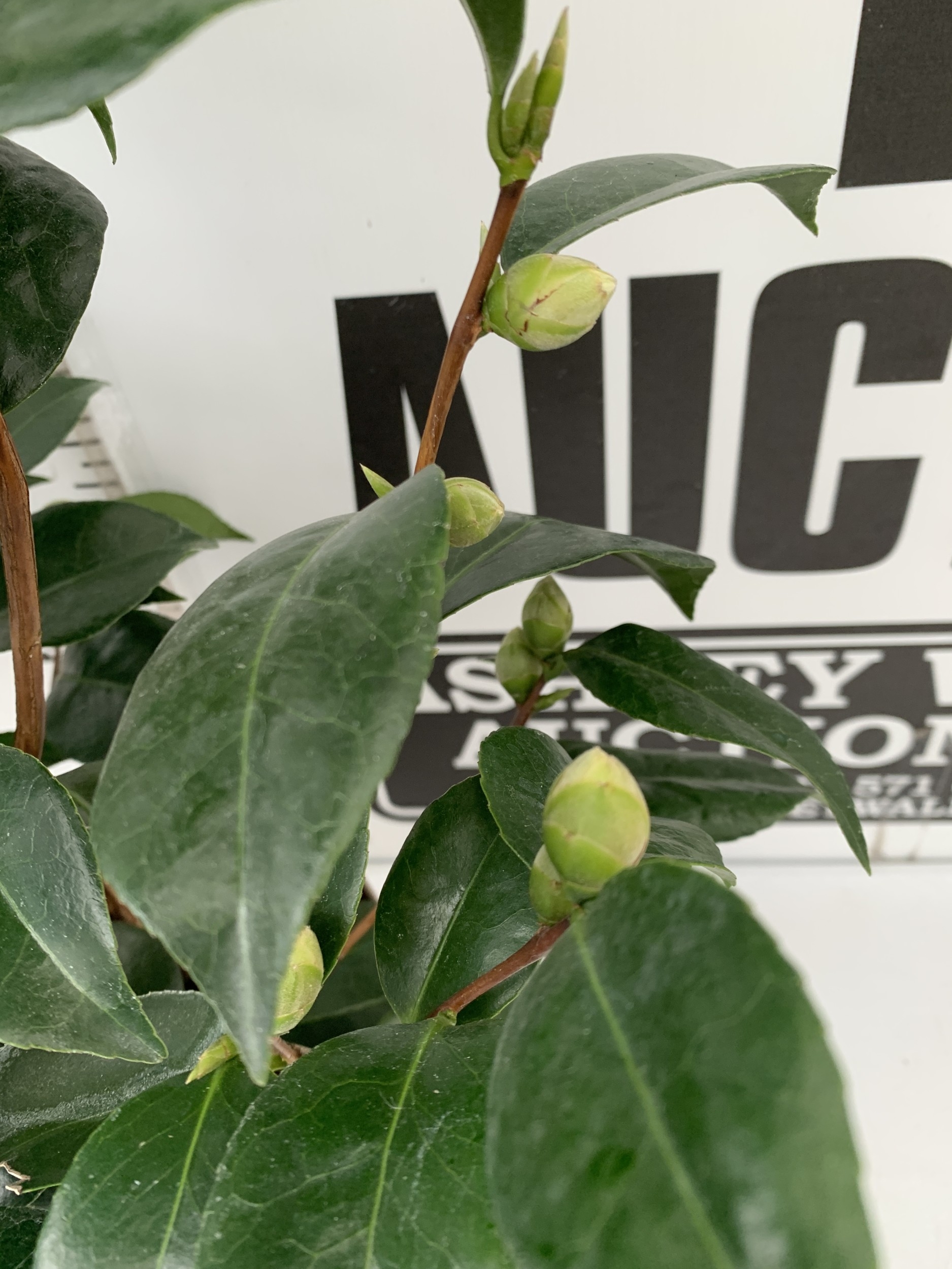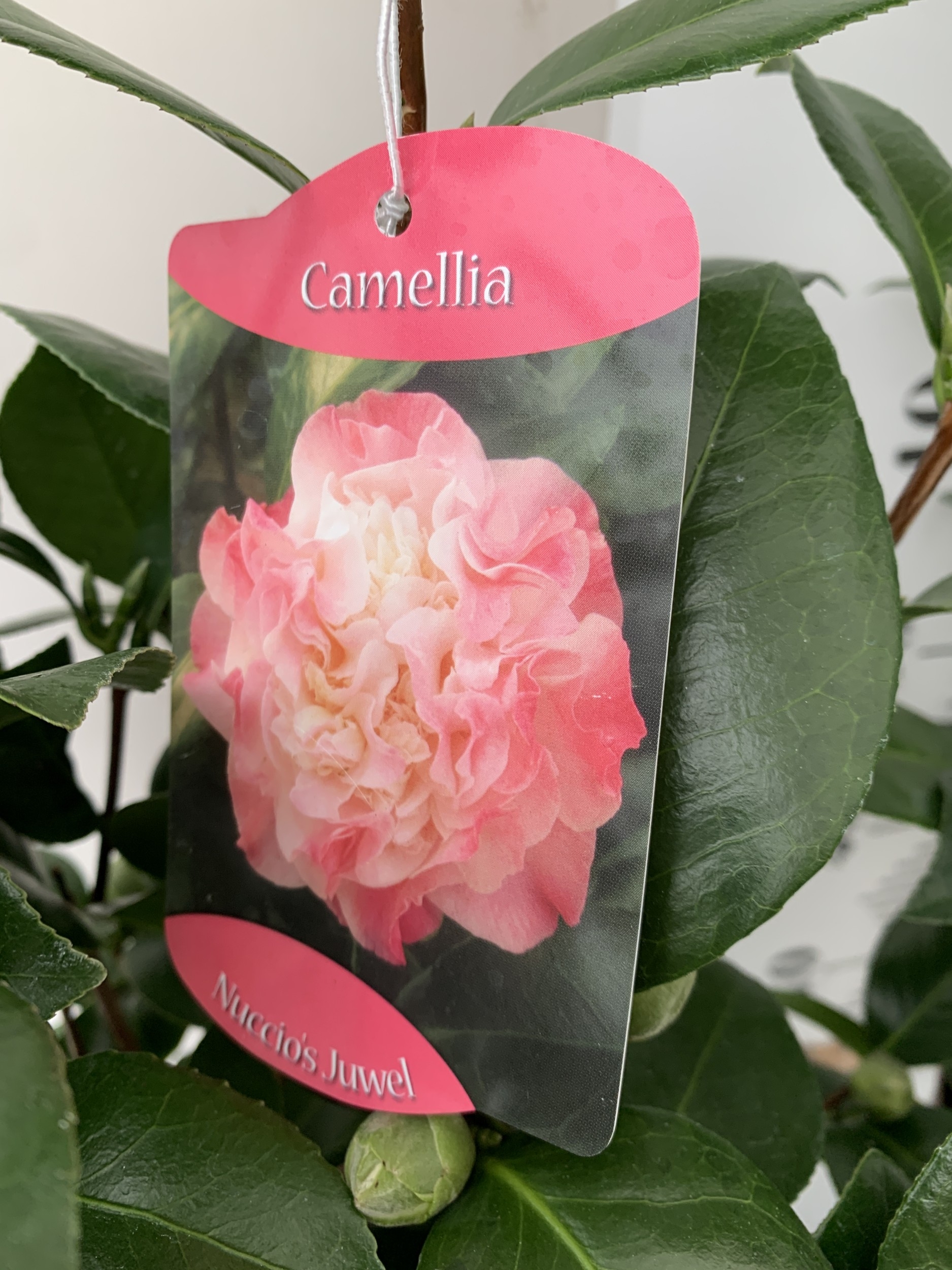 TWO LARGE CAMELLIA JAPONICAS - ONE PINK 'NUCCIO'S JEWEL' AND ONE PINK 'ROSA BAROVEIRA NELLA'. FULL OF BUDS IN 4 LTR POTS, APPROX 80CM TALL. TO BE SOLD FOR THE TWO