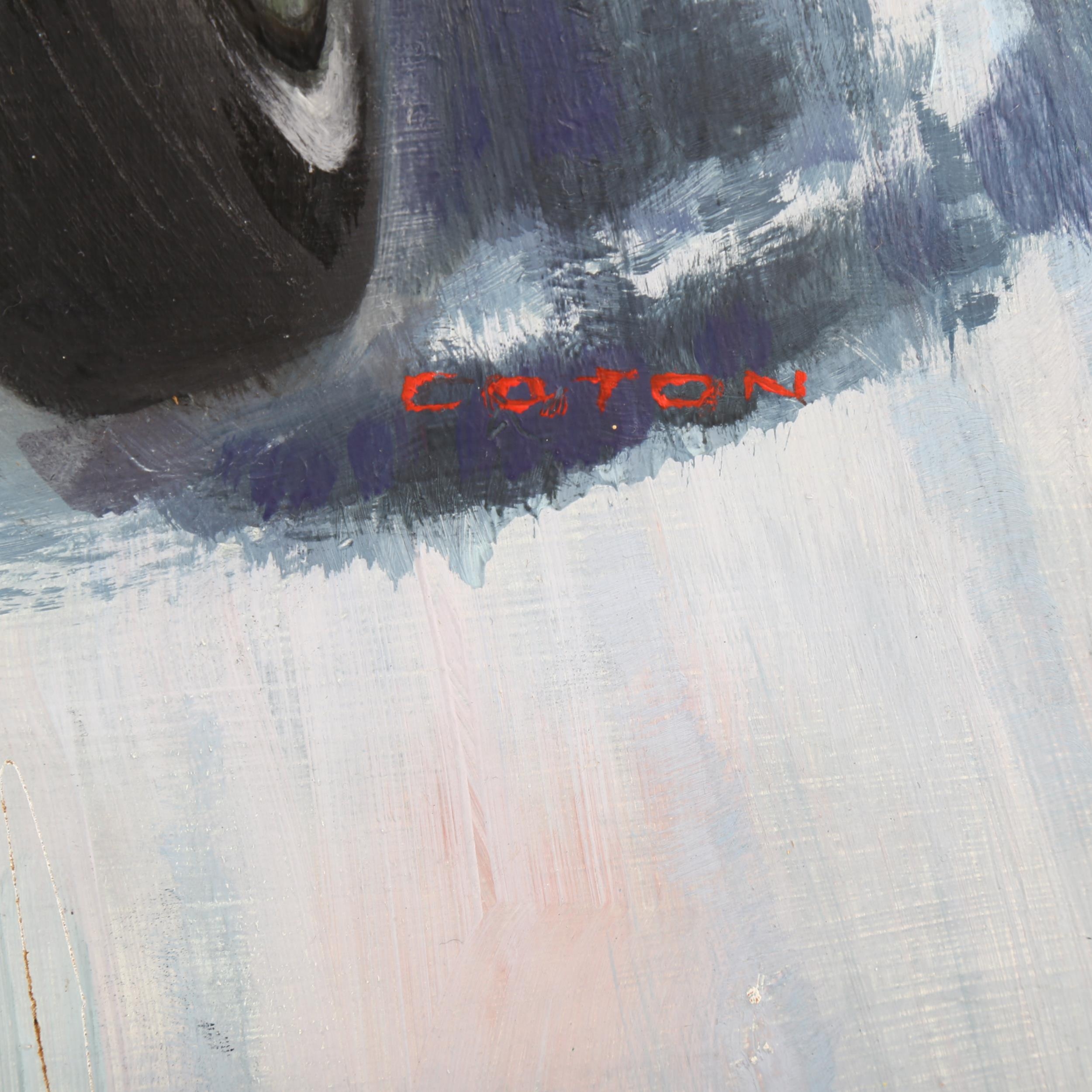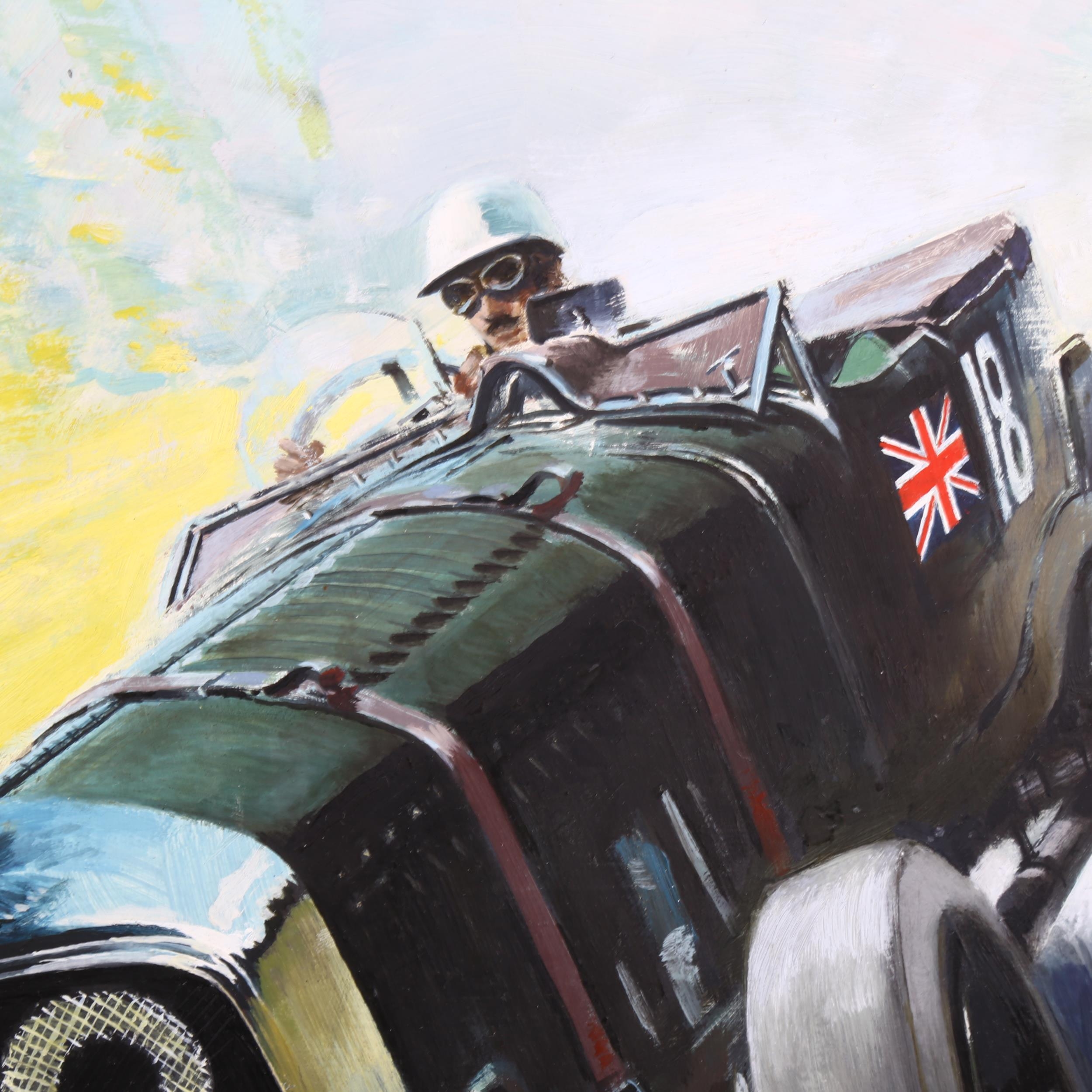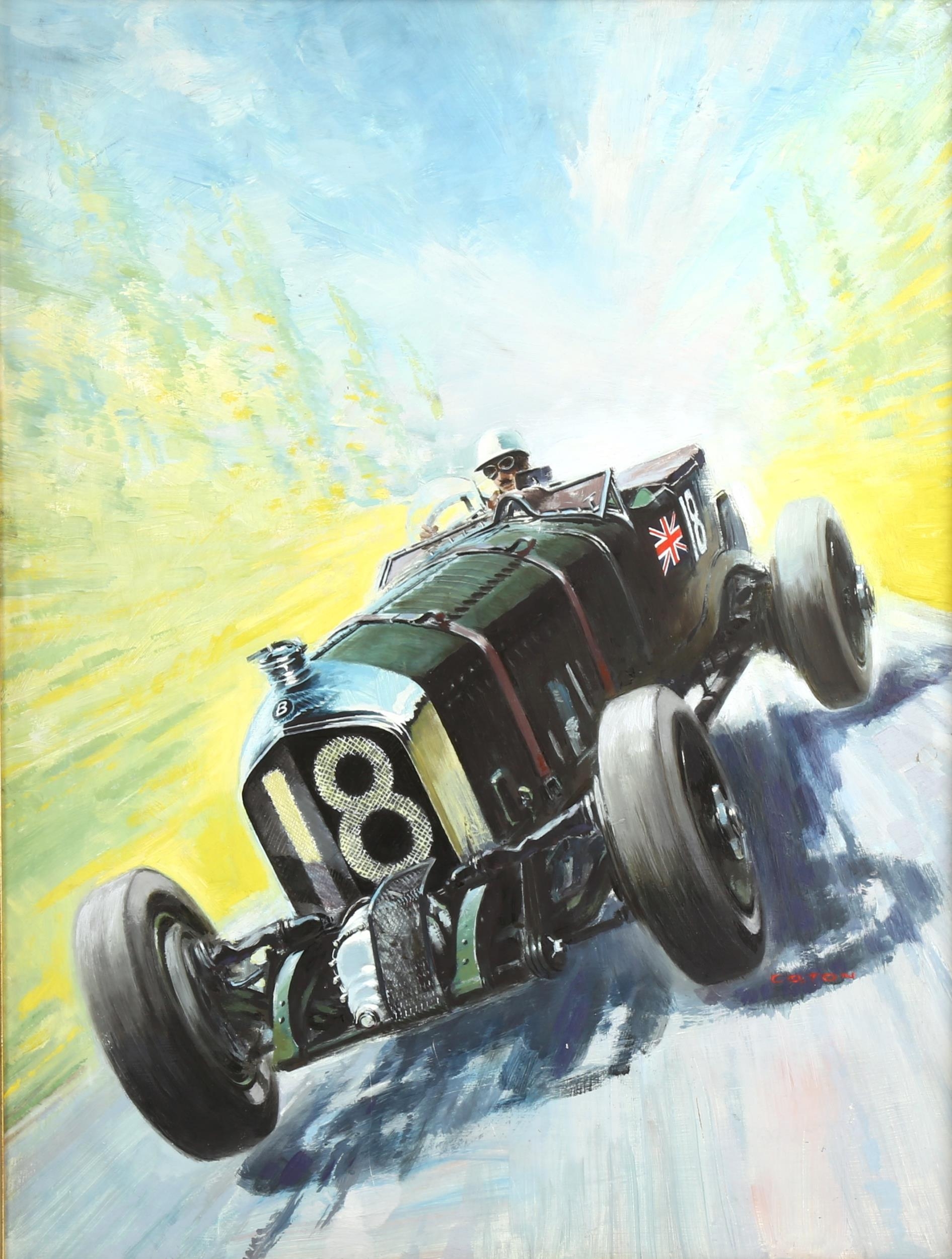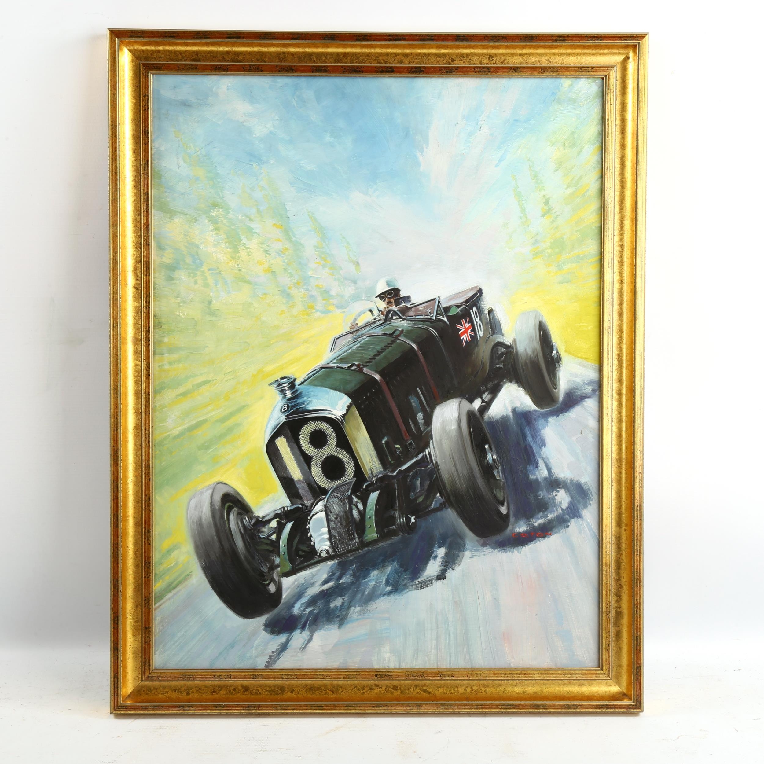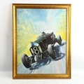 Coton, oil on board, Bentley racing car, 59cm x 44cm, framed