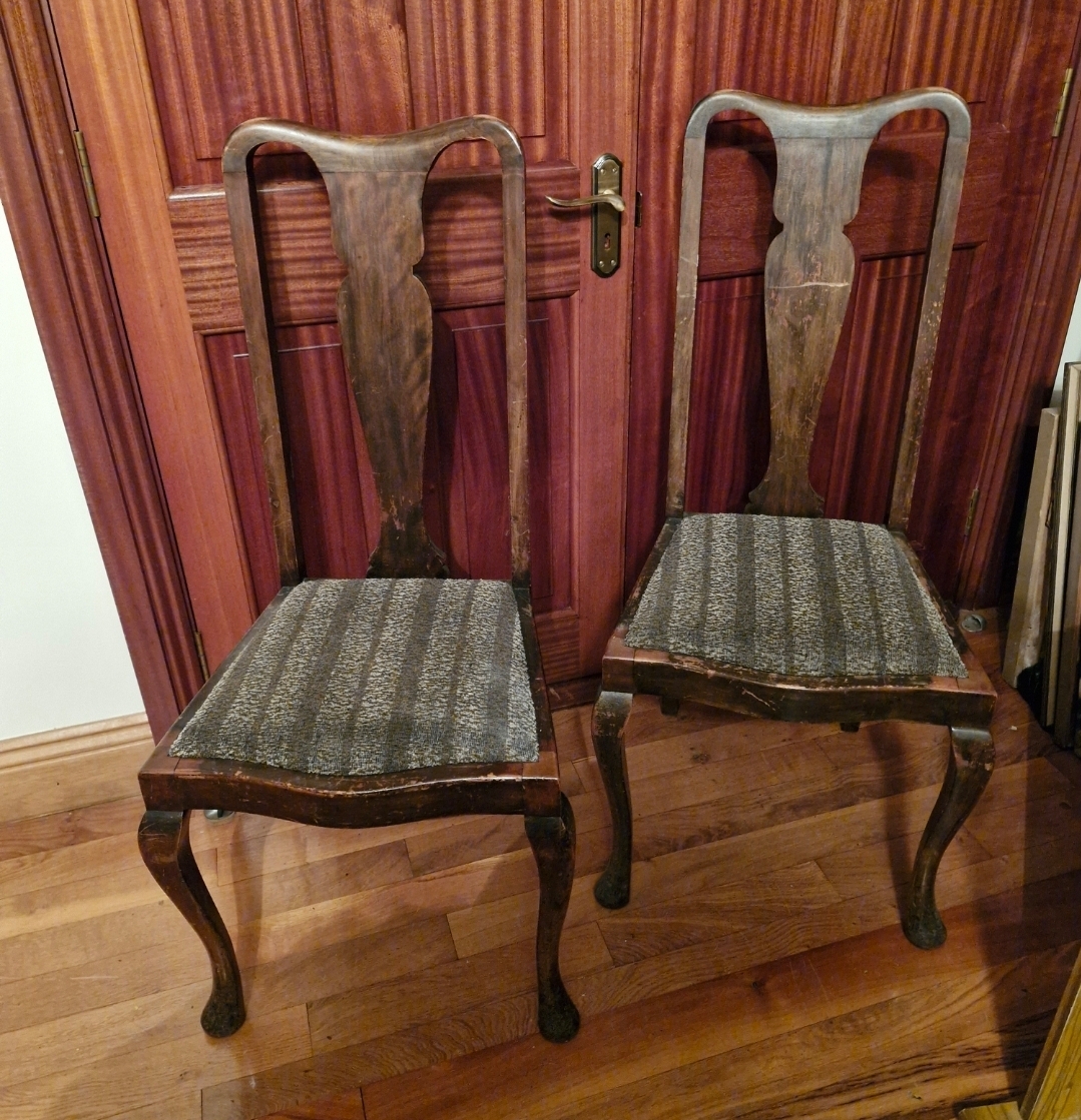 Two Victorian fiddle back chairs