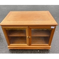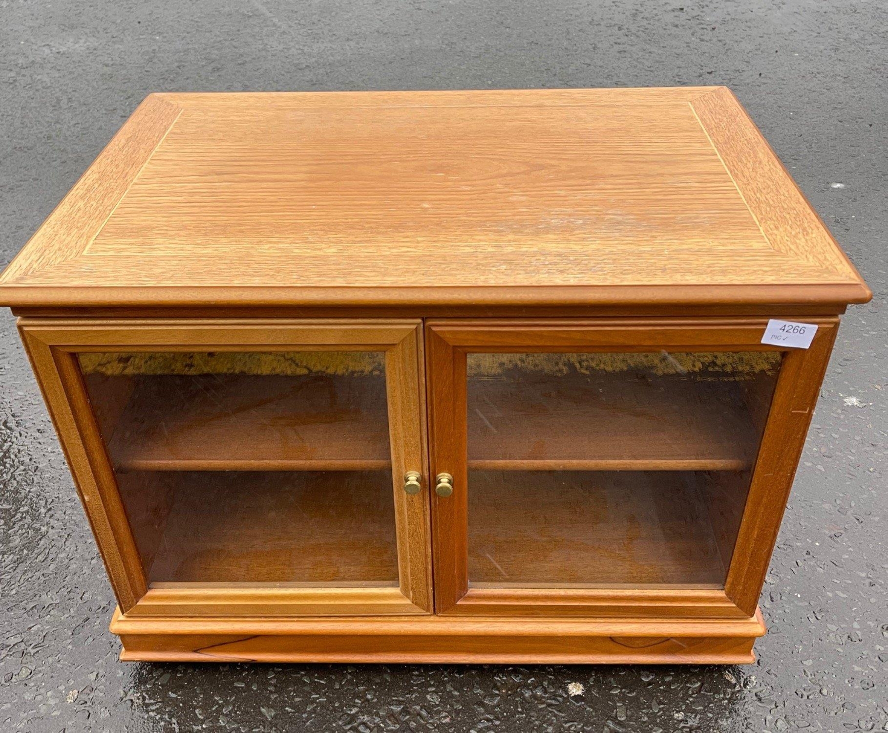 A HANDY wooden MEDIA cabinet with 2 glazed doors -dimensions 3ft x 18" depth x 18" height approx