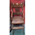 A 19th century oak child's high chair, shaped cresting rail ...