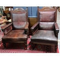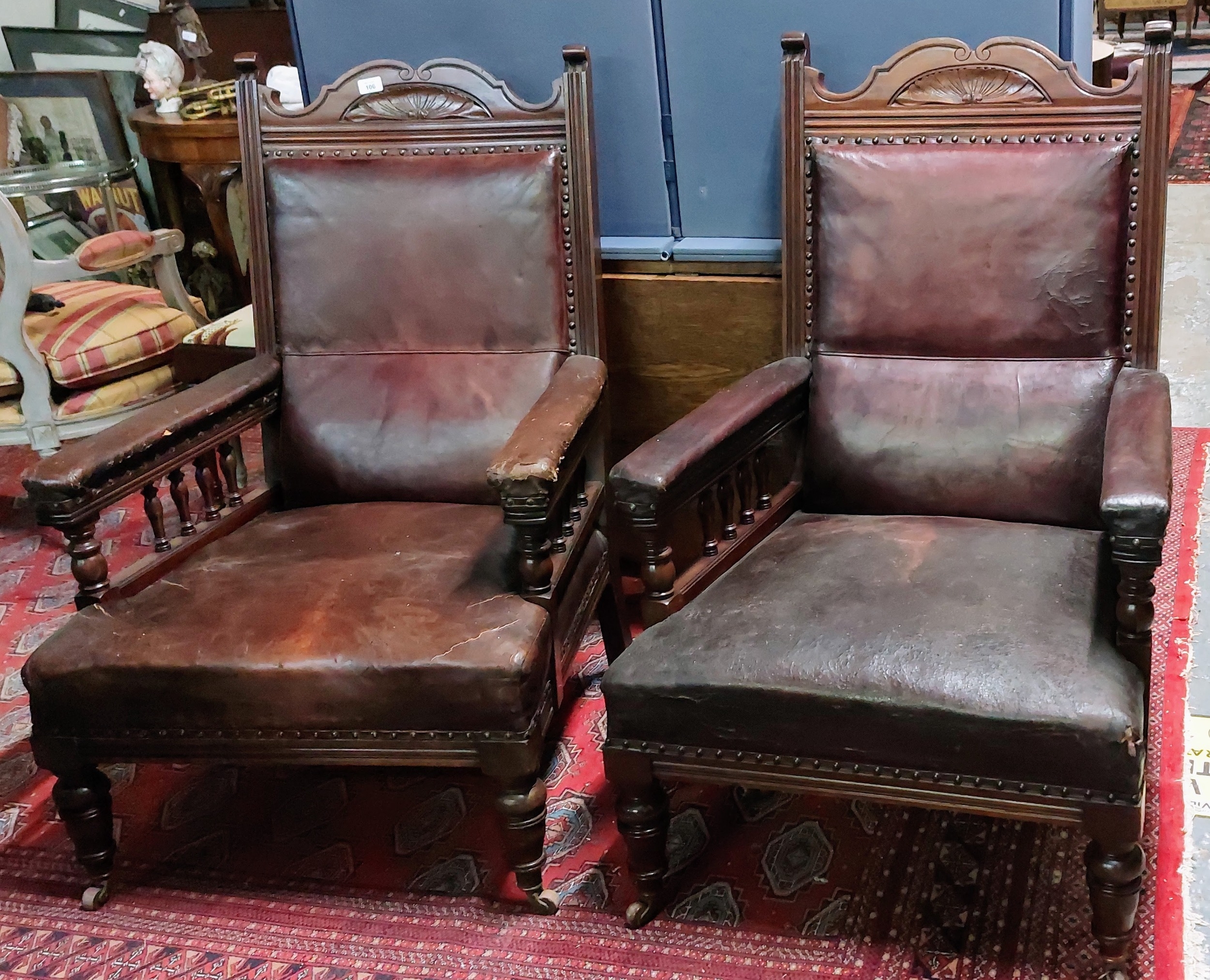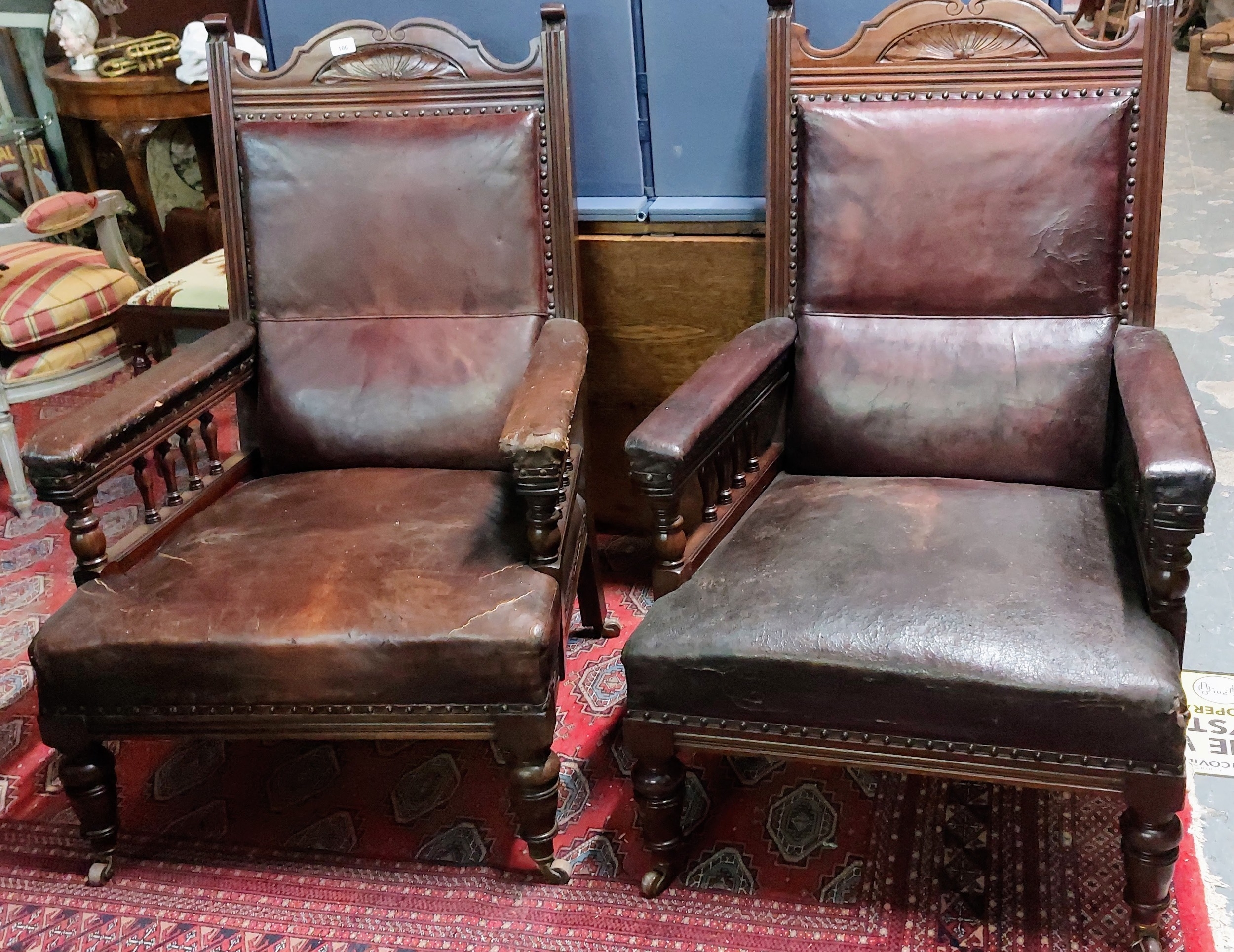 Pair of Victorian Mahogany Library Chairs with Leather Upholstery