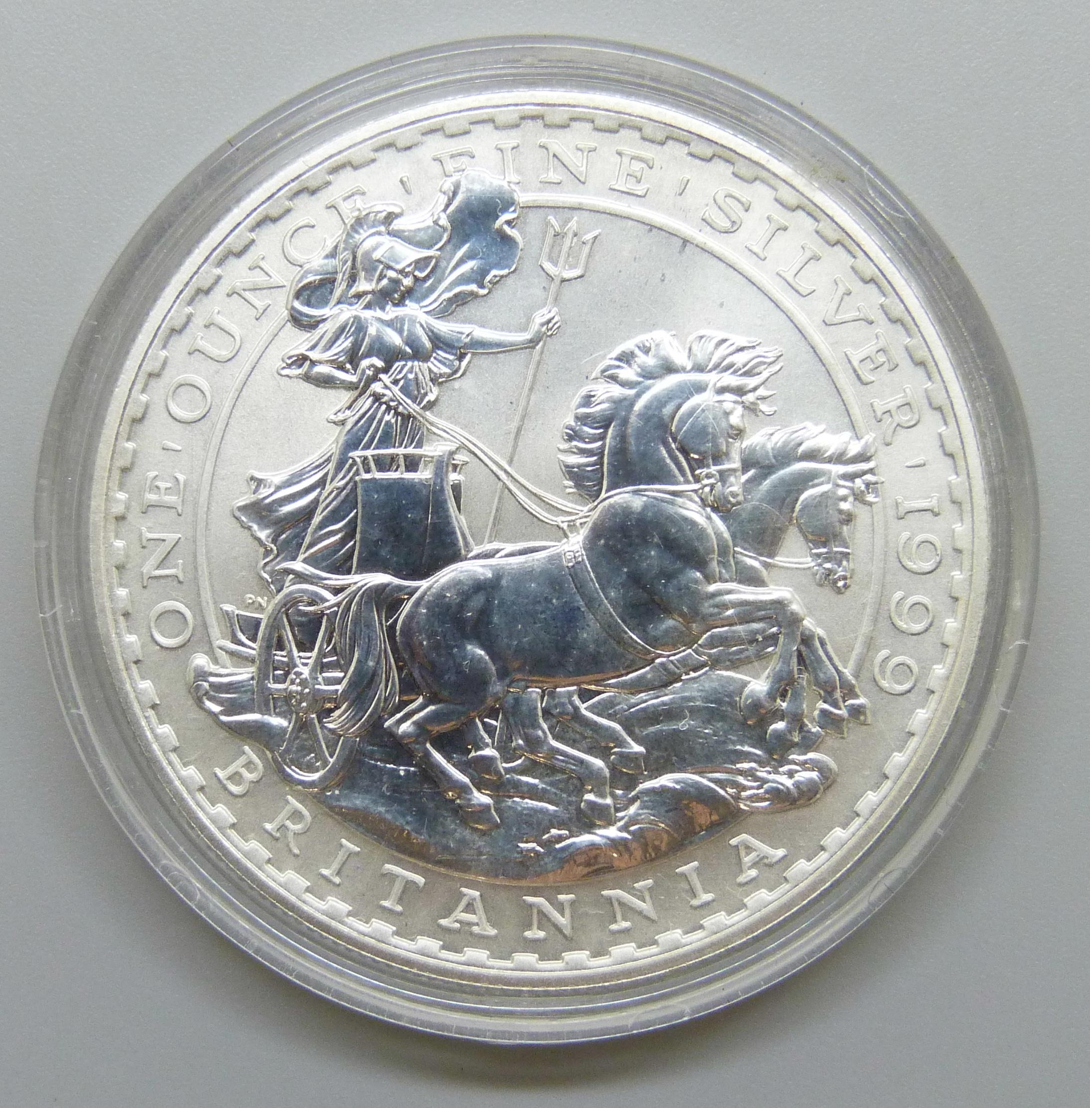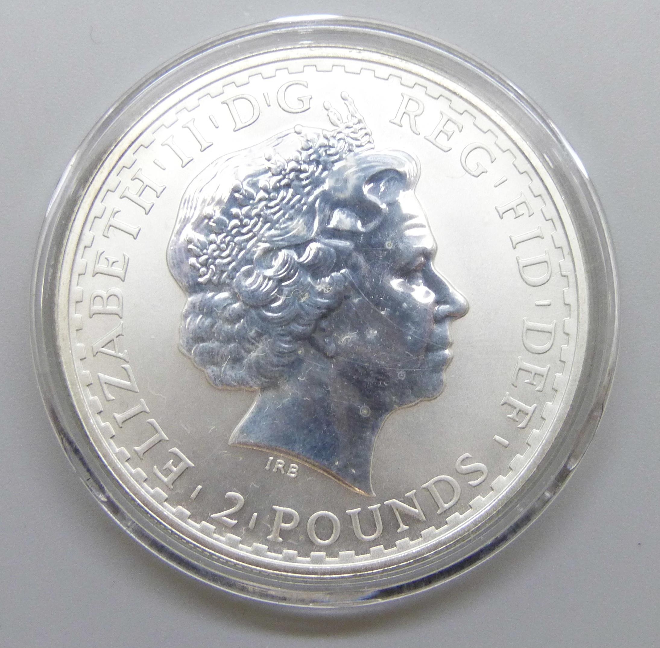 A 1999, 1oz fine silver Britannia 2£ coin