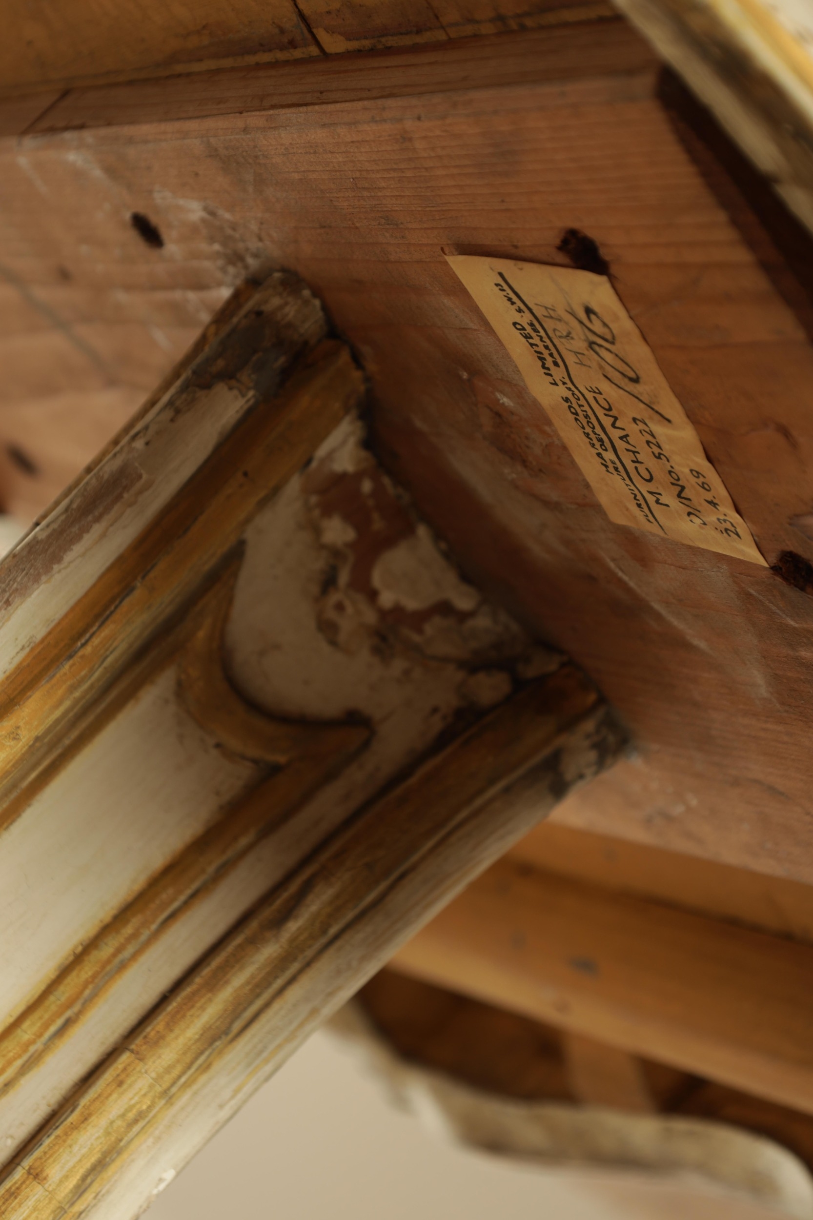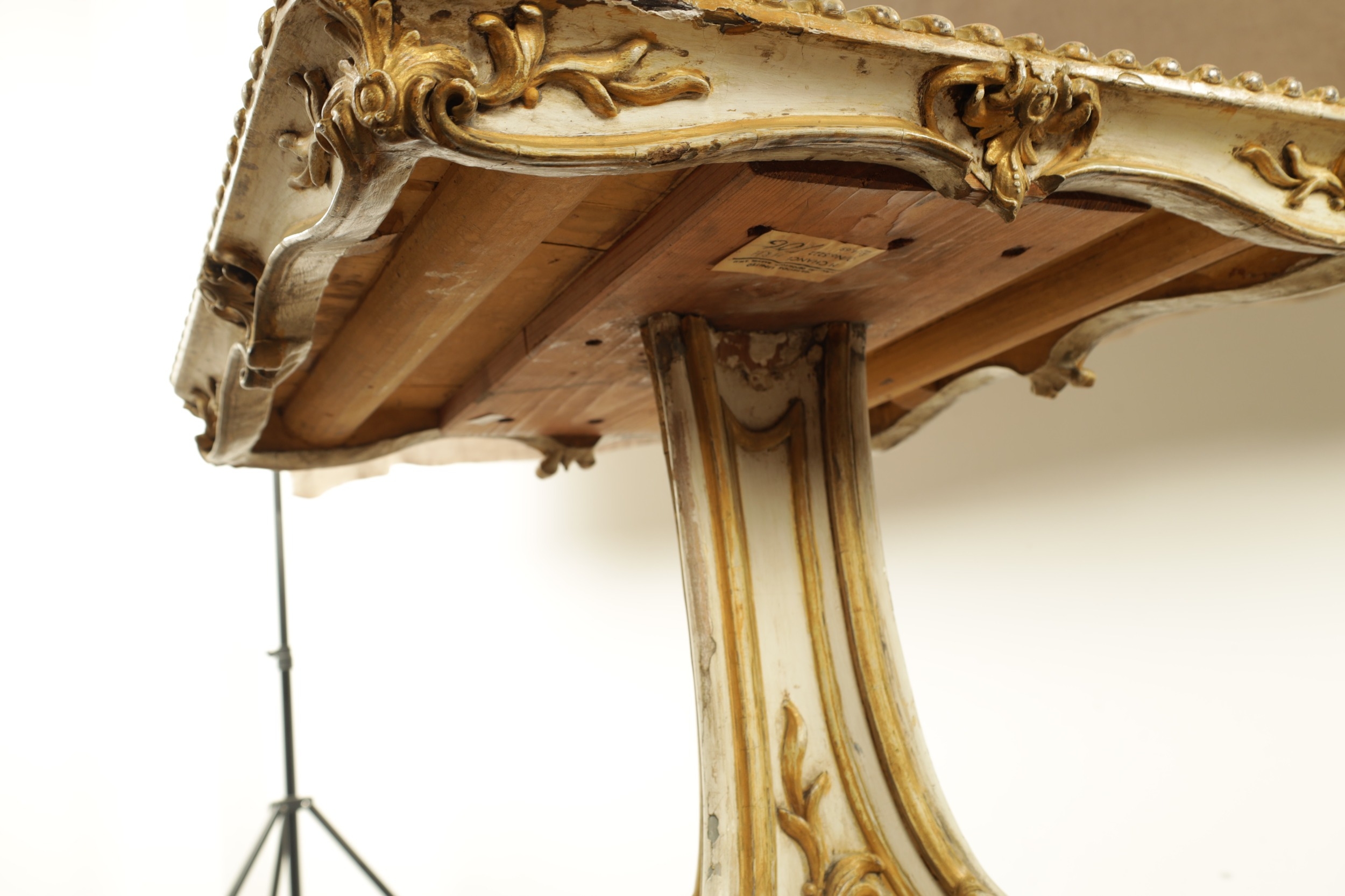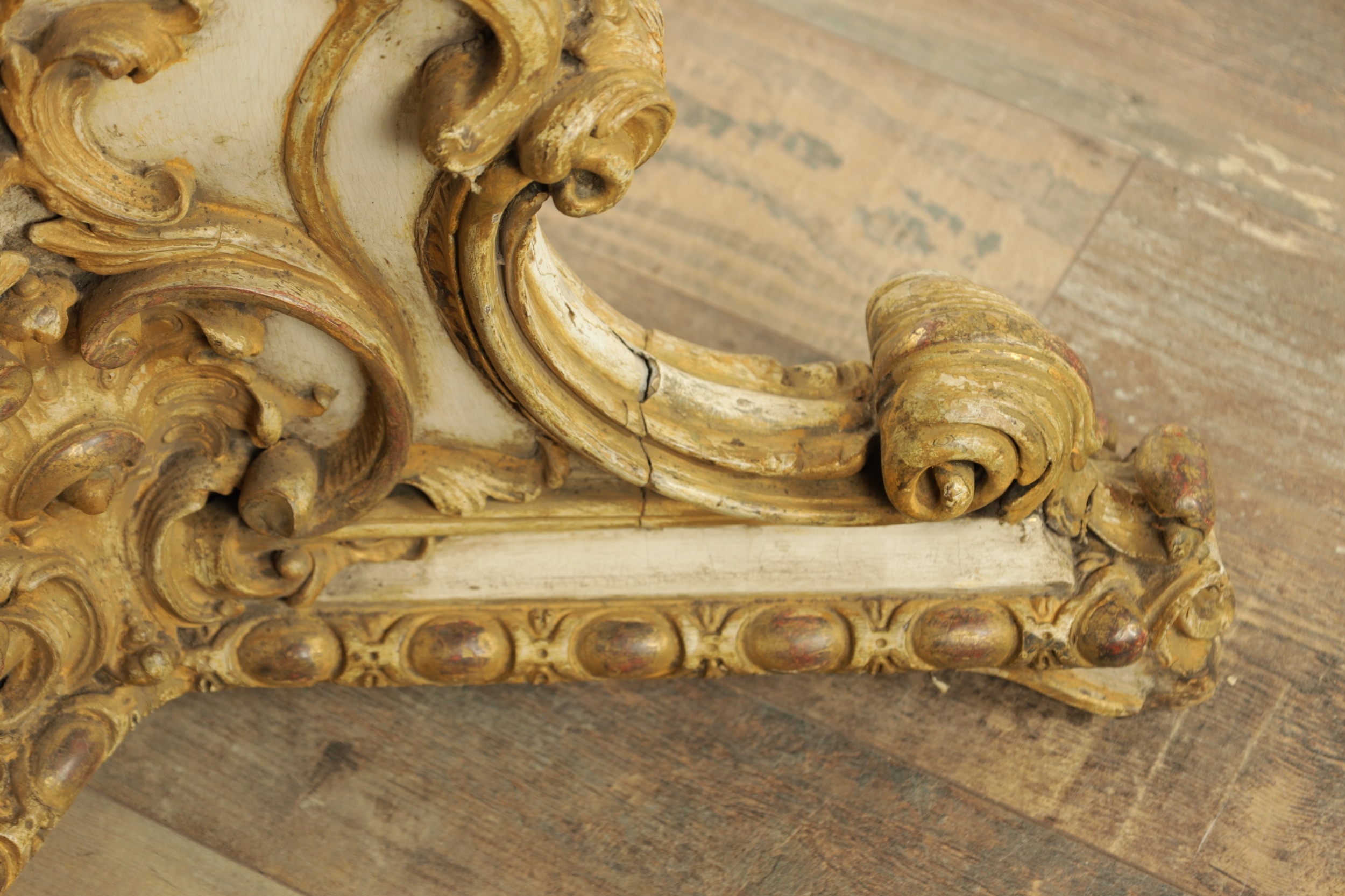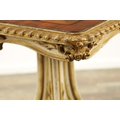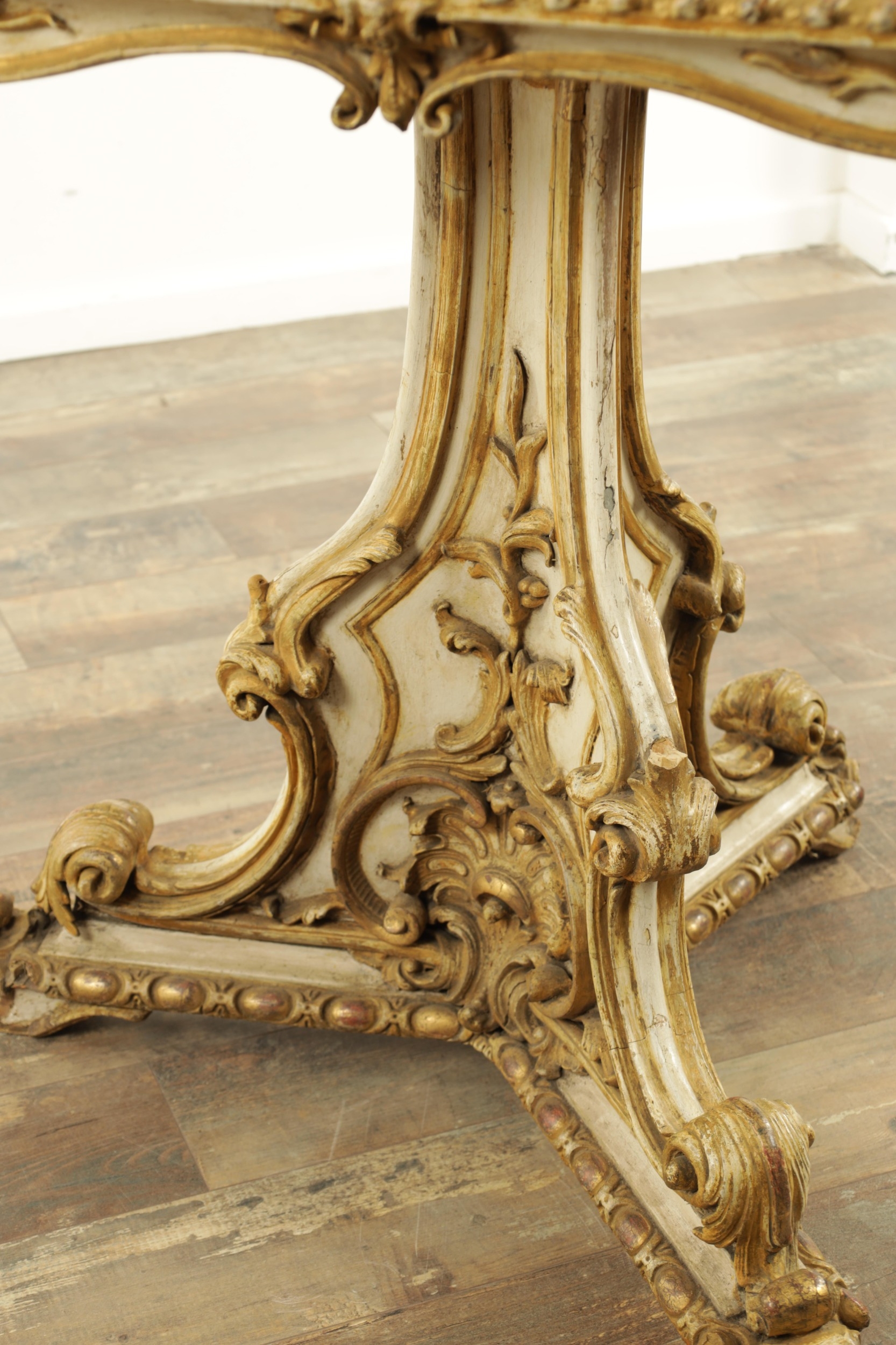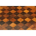 A GOOD REGENCY PAINTED, CARVED WOOD AND PARQUETRY INLAID GAMES TABLE IN THE MANNER OF HENRY HOLLAND with chessboard specimen wood top above an elaborate carved gilt highlighted base (60cm square 76cm high)