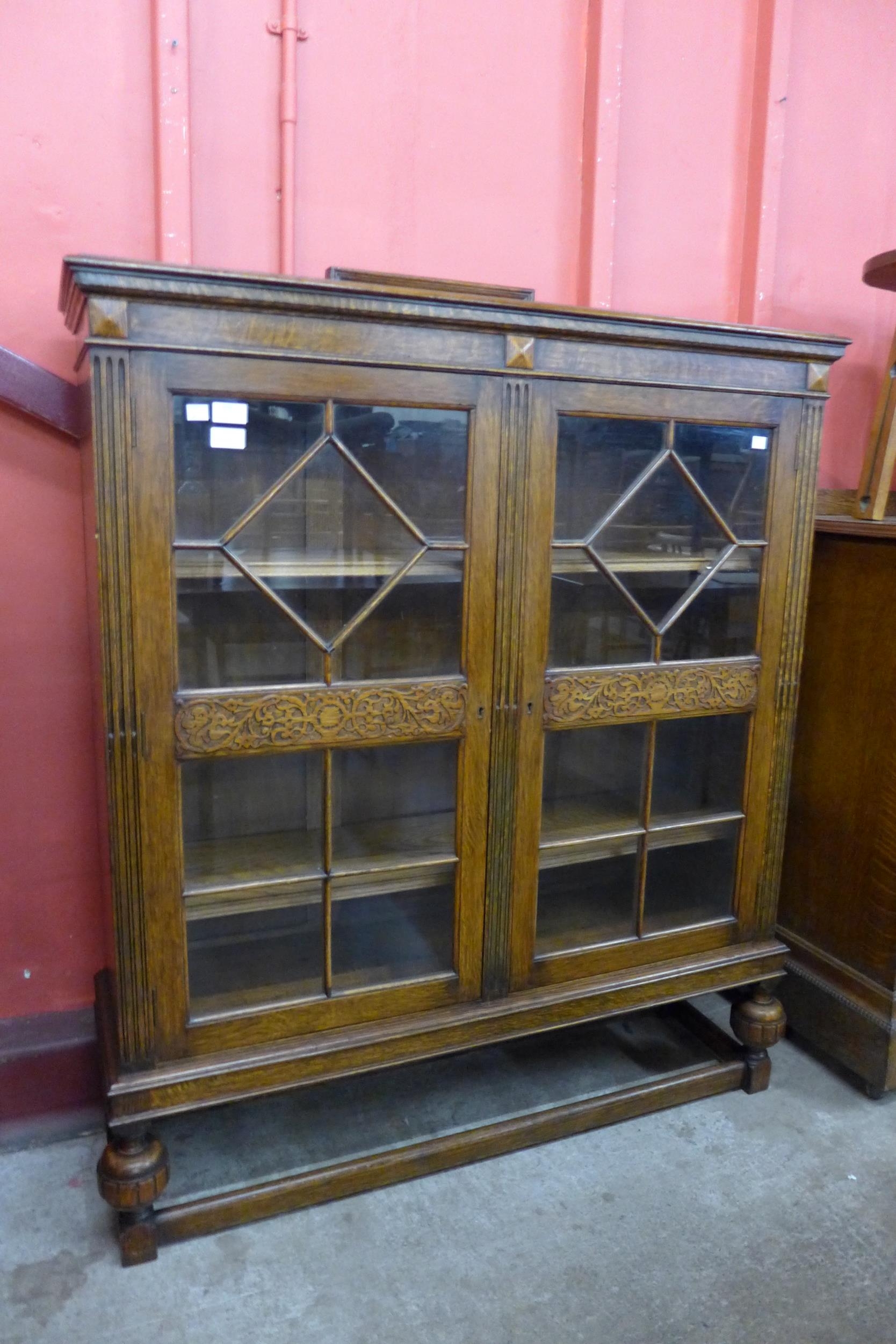 An early 20th Century carved oak two door bookcase