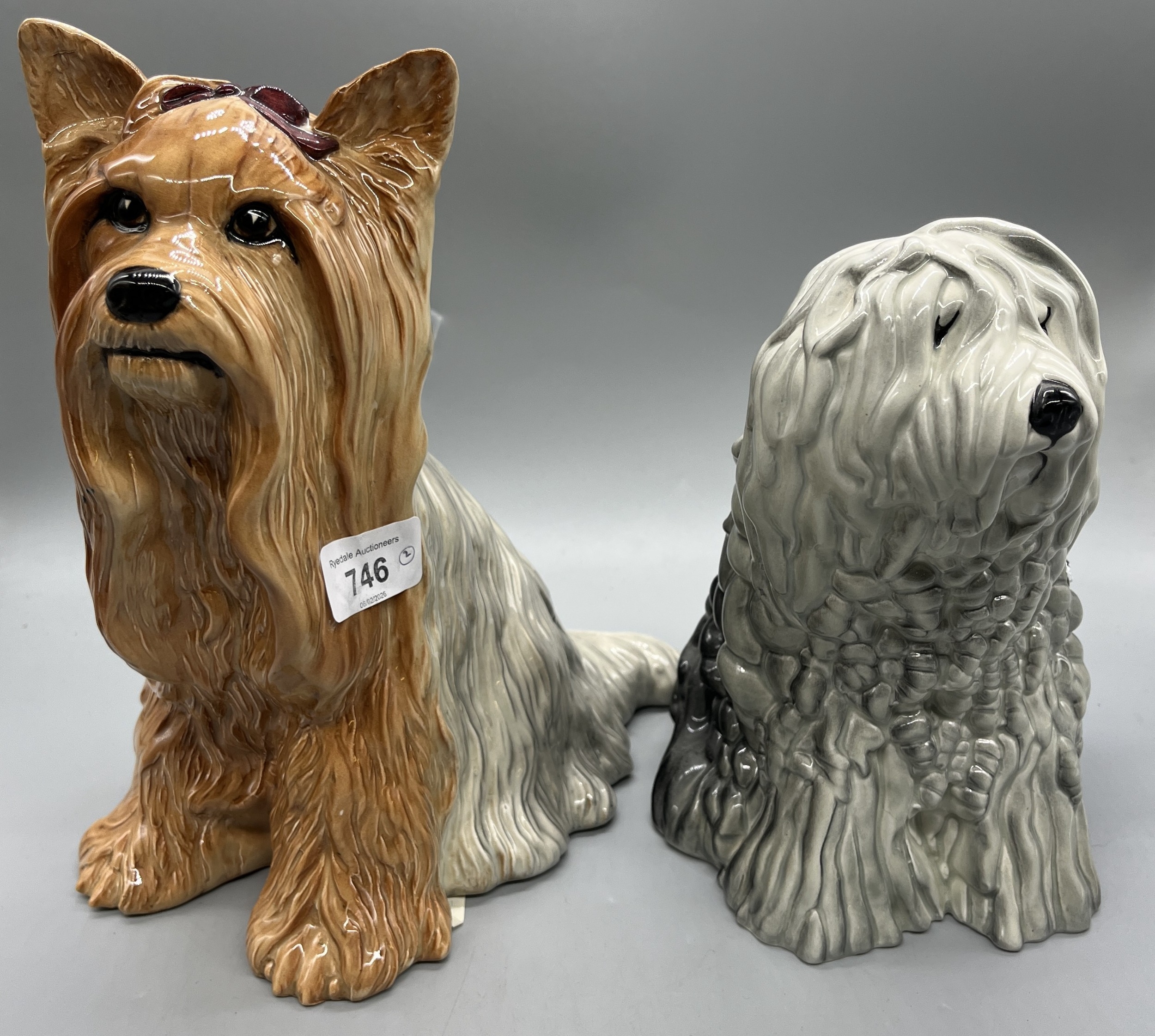 Beswick - Yorkshire Terrier, model 2377 and Old English Sheepdog, model 453, max. H26.5cm (2)