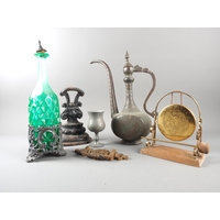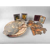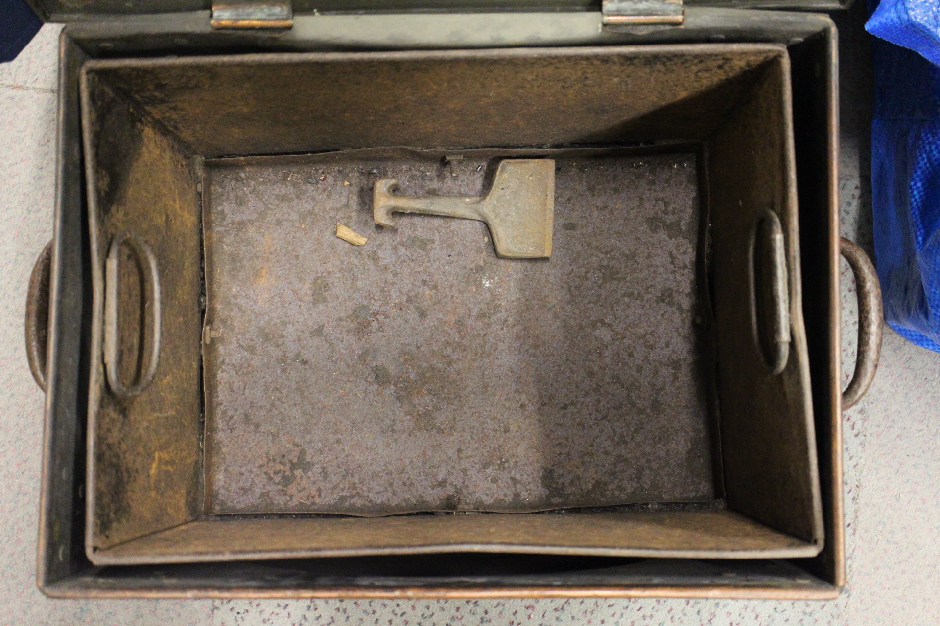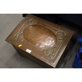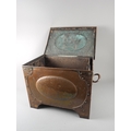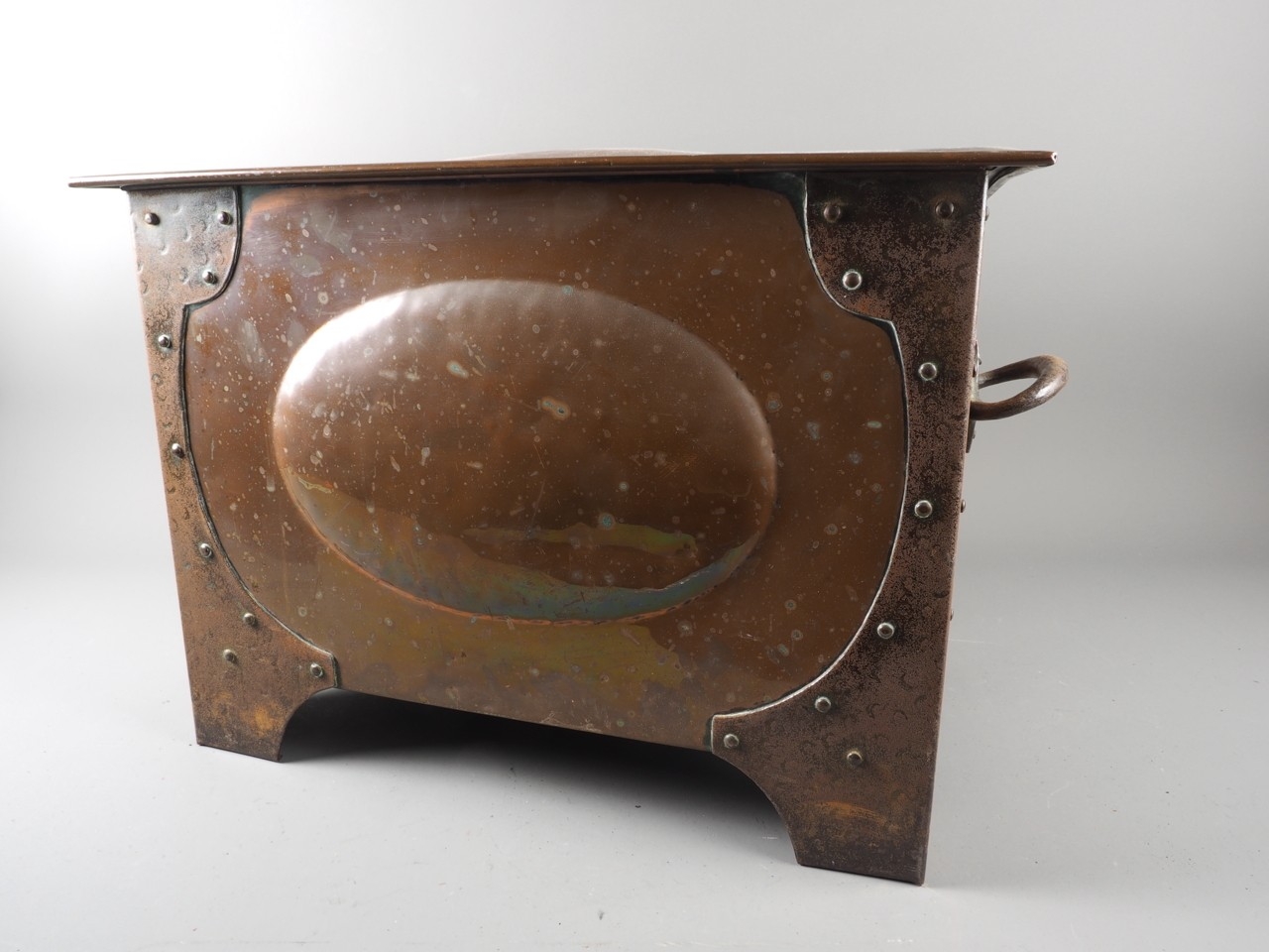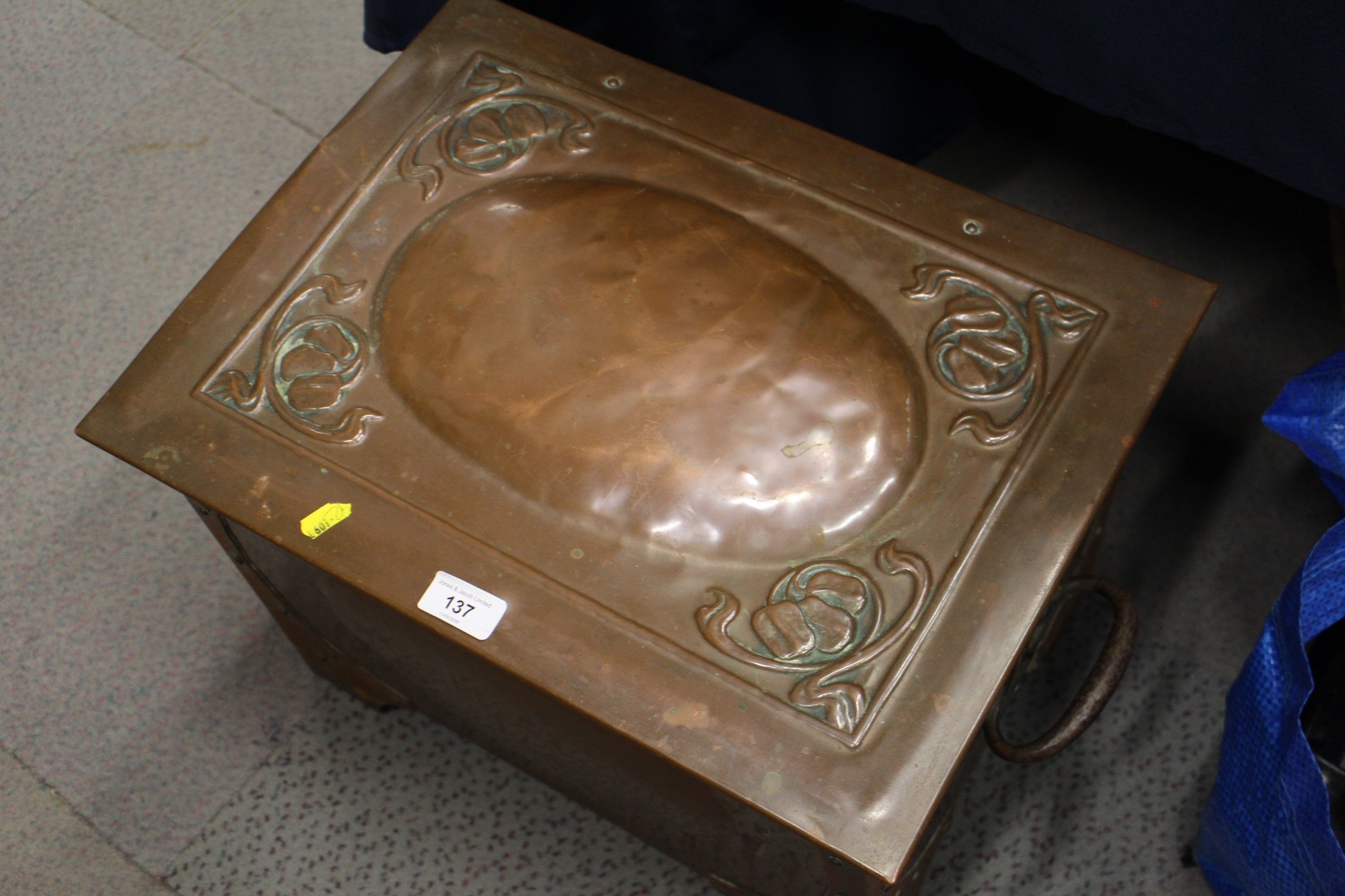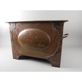 An Art Nouveau two-handled copper coal box with embossed decoration and insert, 20 1/2” overall