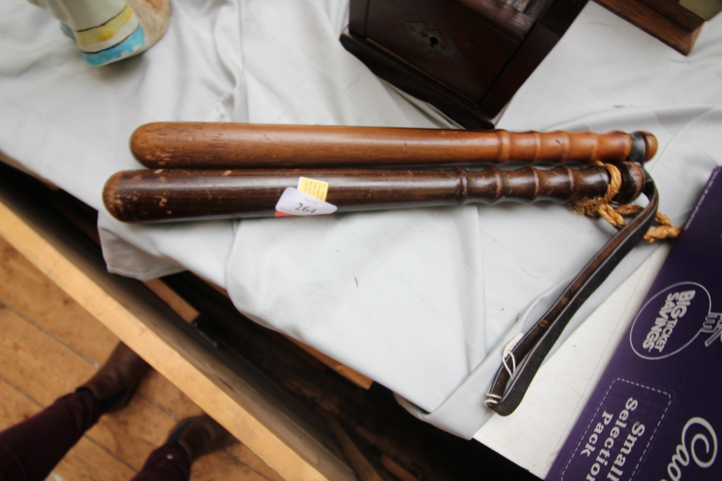 Pair of Victorian police truncheons, one being Leicester police prison officer