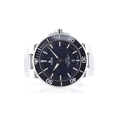 Dial features: Deep blue sunburst dial with applied hour markers. Quick set date aperture at 6 o'clock. Lollipop seconds.