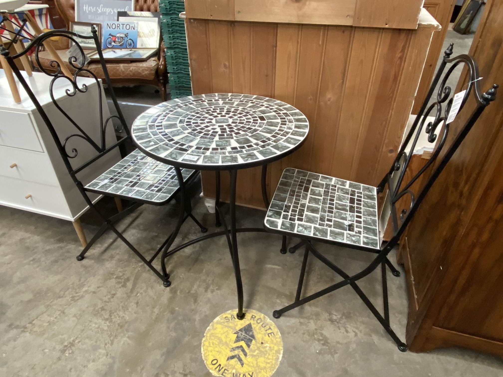 Alpine Corporation Furniture Collection - Marbled glass mosaic bistro set - table 28"H x 21"W x 17"D (inches) glass, metal & concrete construction, NEW
