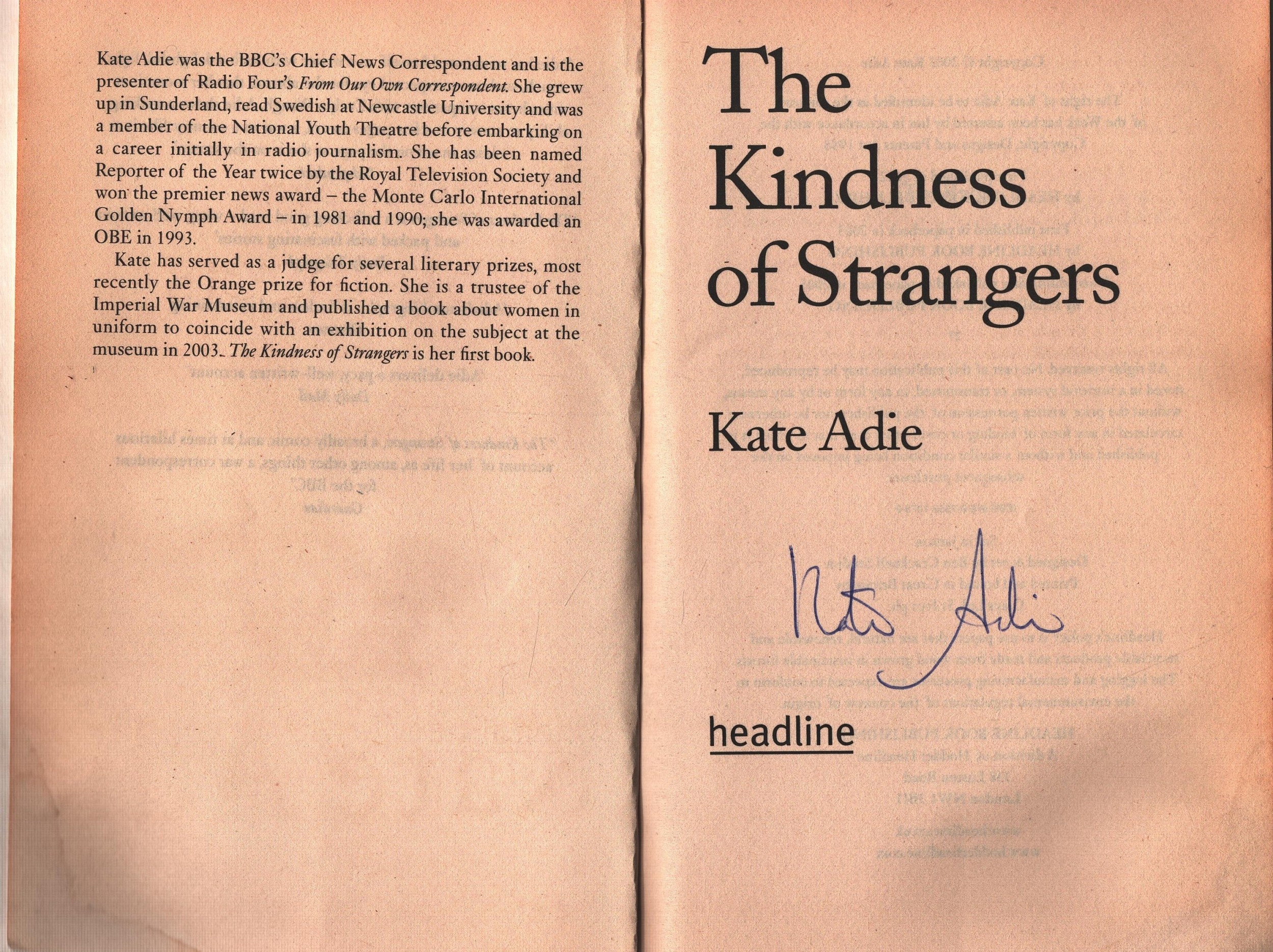 Kate Adie signed Kate Adie - the autobiography paperback first edition book. Signed on inside title page.