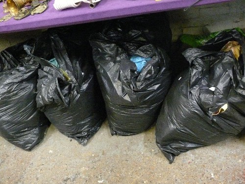 SEVERAL BAGS OF MOSTLY BEDDING BUT SOME CLOTHES