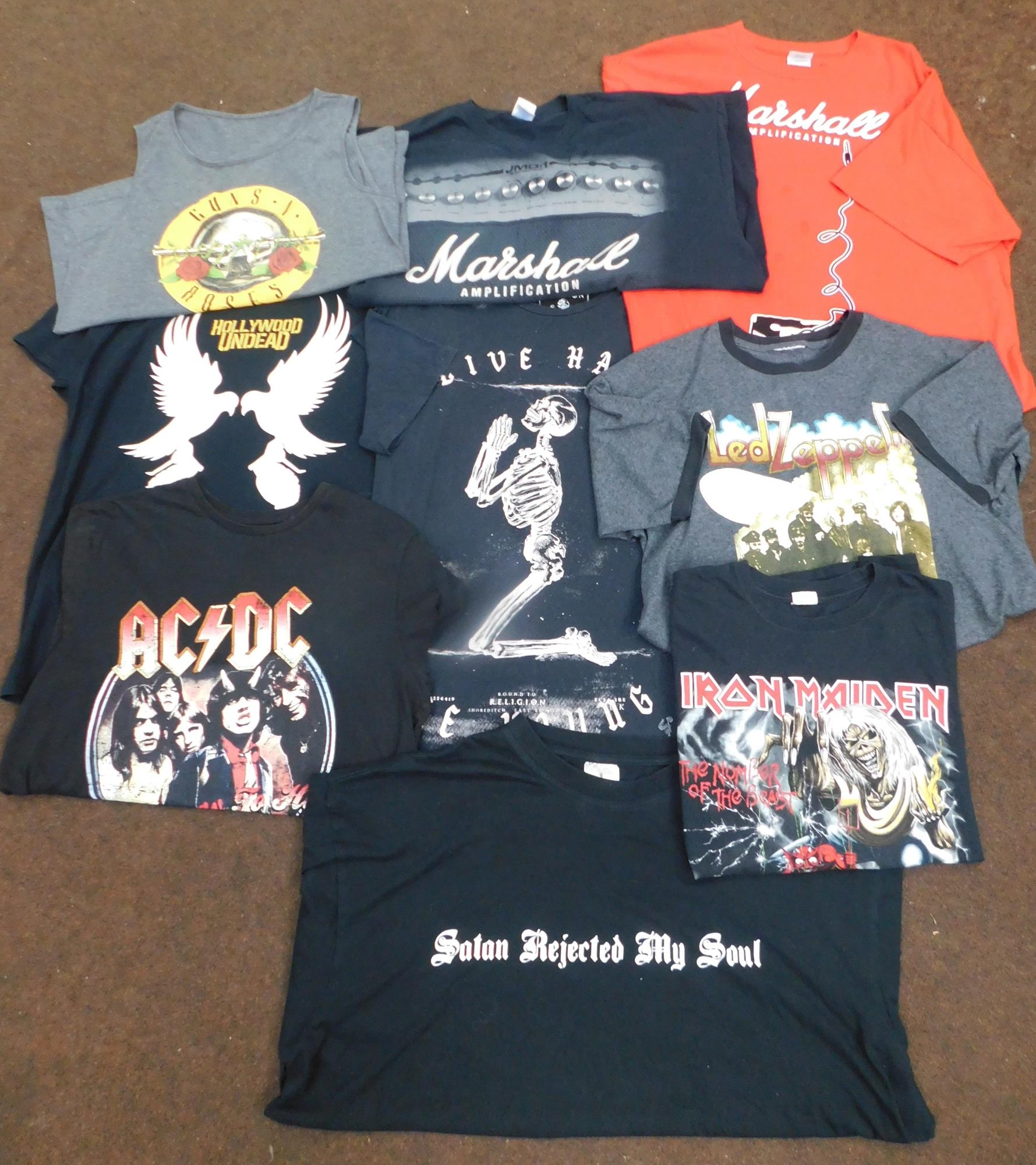 9x Heavy metal t-shirts incl. Guns n Roses, Zeppelin, ACDC, Iron Maiden, Marshals