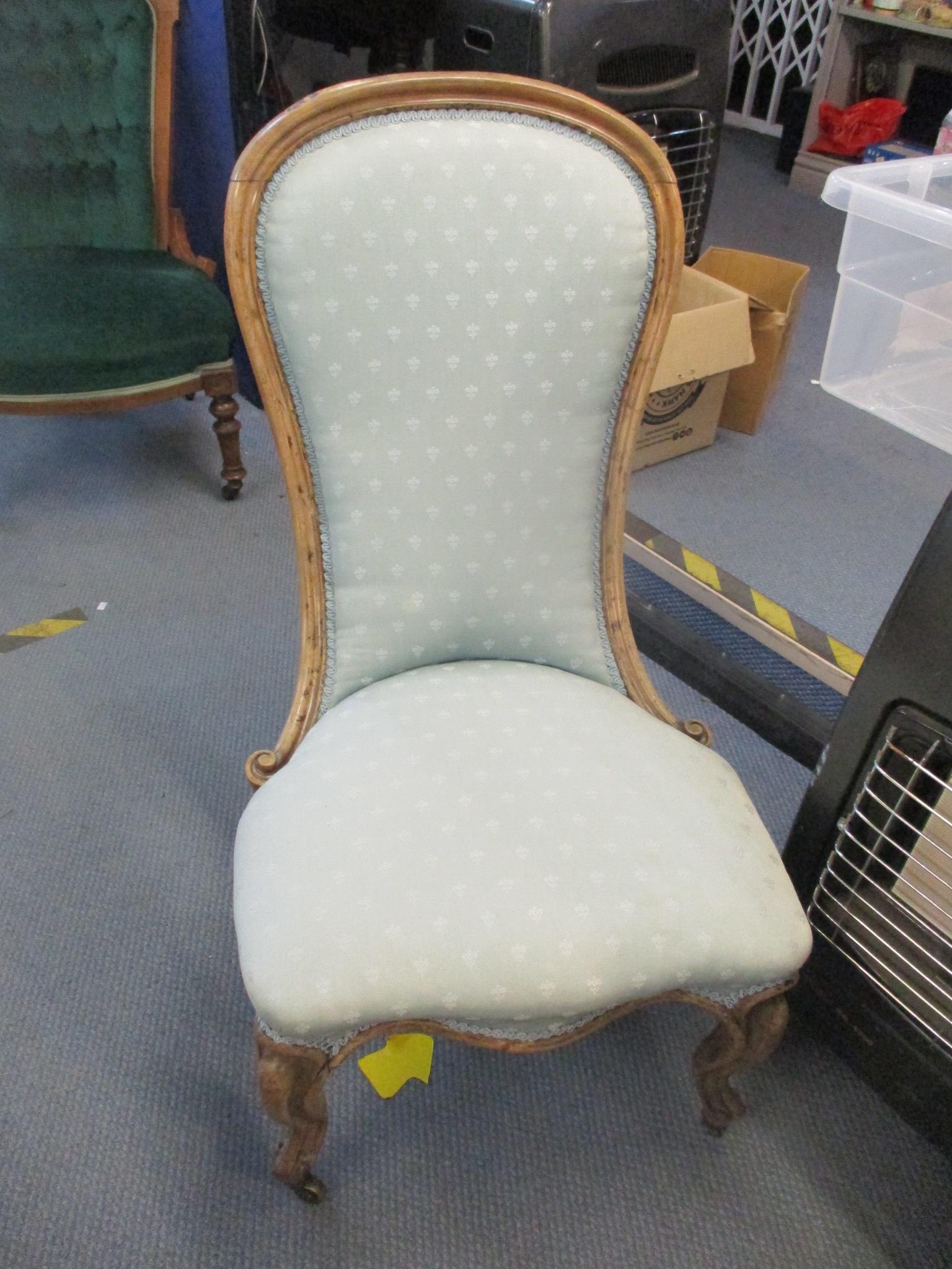 A Victorian walnut spoon back salon chair on front cabriole legsLocation: A1F
