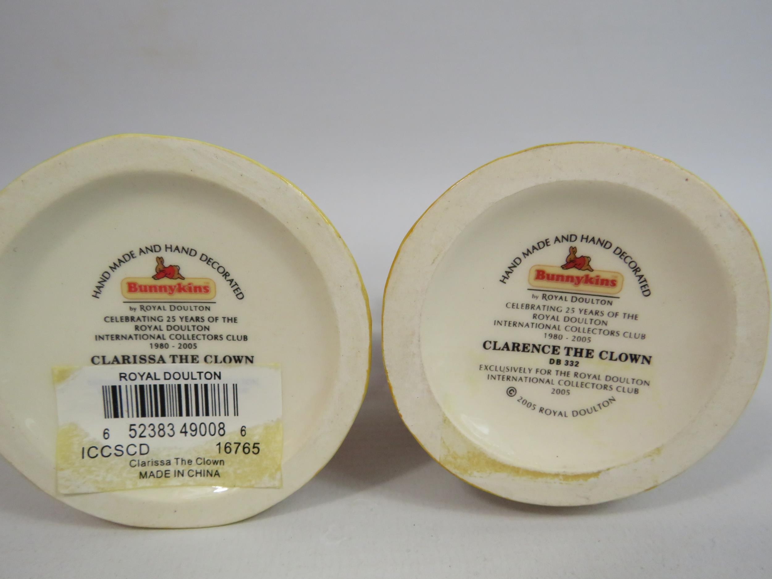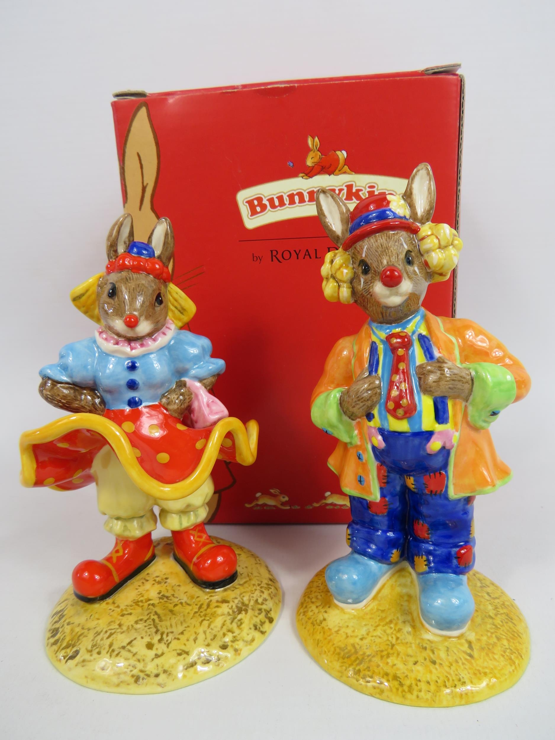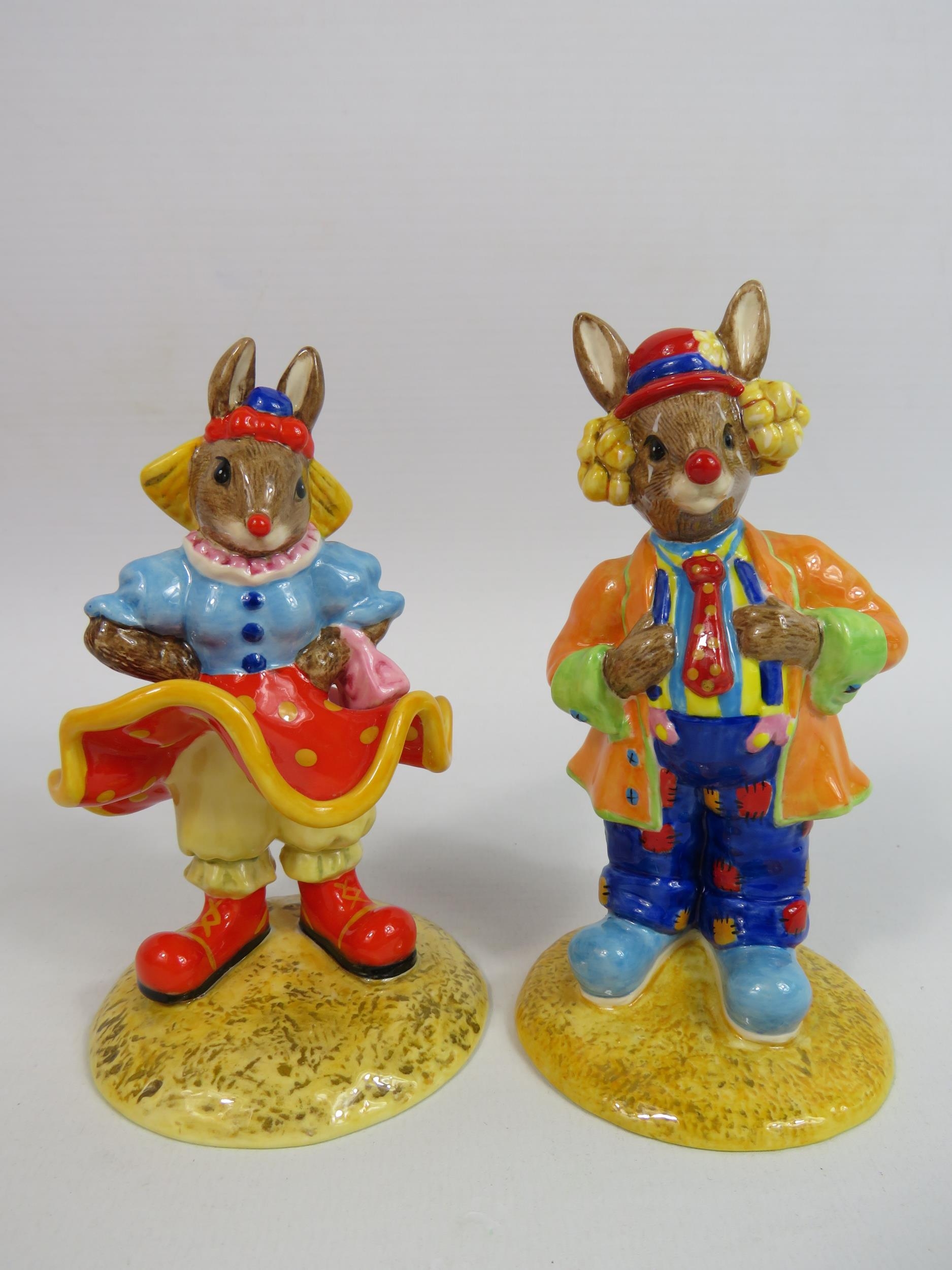 2 Royal Doulton Bunnykins figurines Clarissa the Clown and Clarence the Clown. 1 has a box