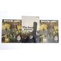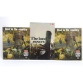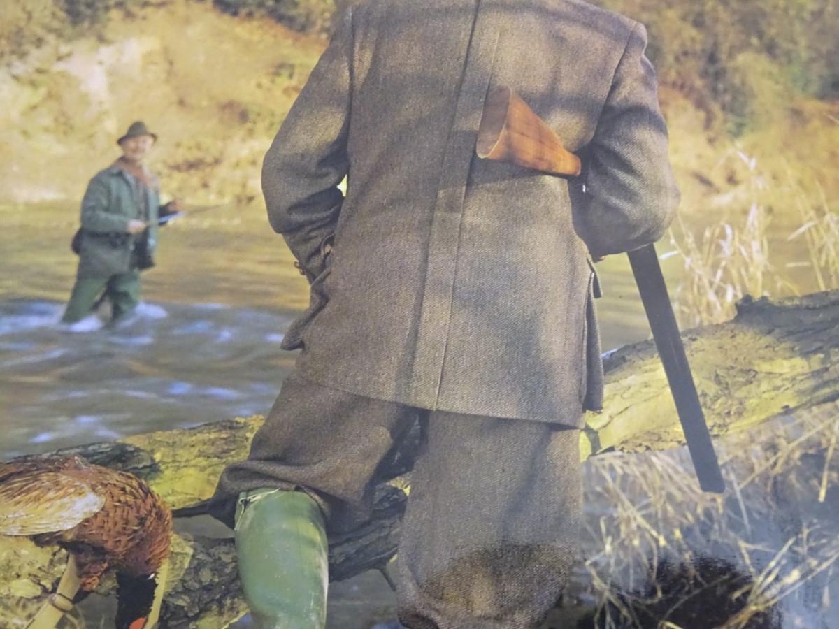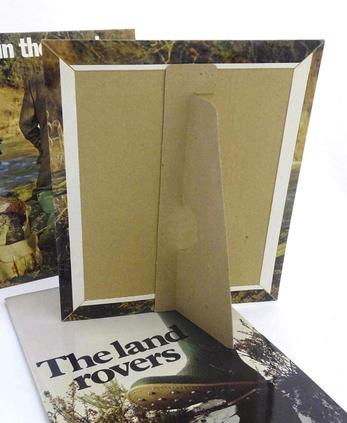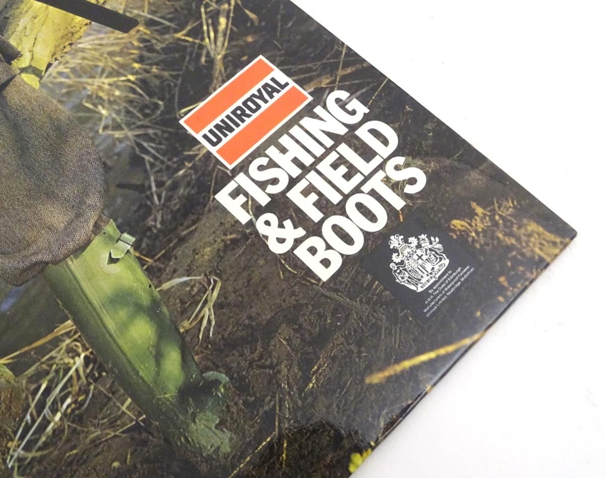 Three shop advertising cards for Uniroyal wellington boots (predecessors of Hunter), depicting fieldsports scenes, the largest 15'' tall, 10'' wide.