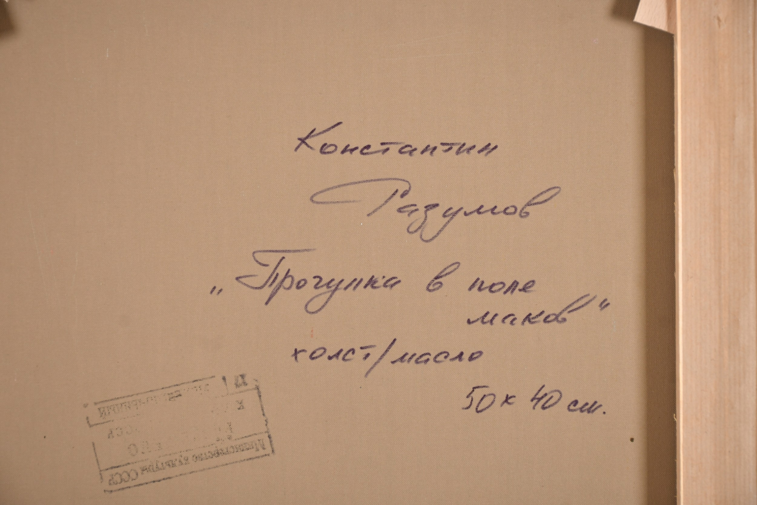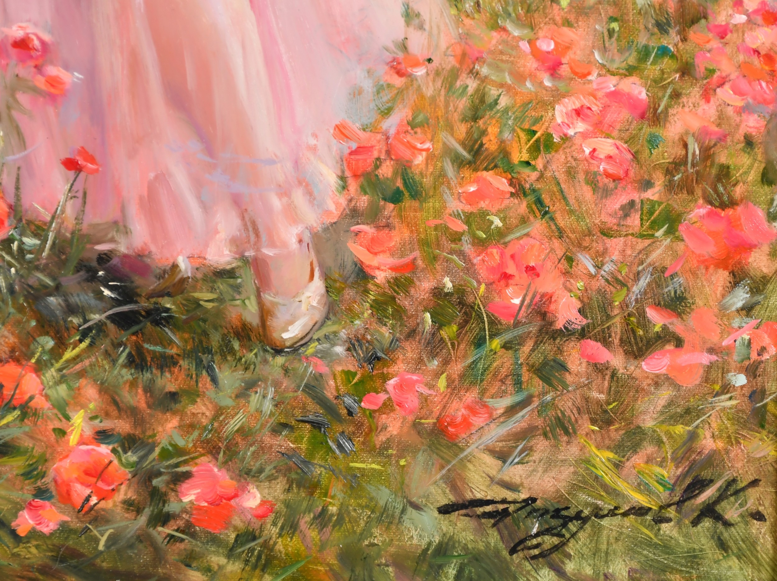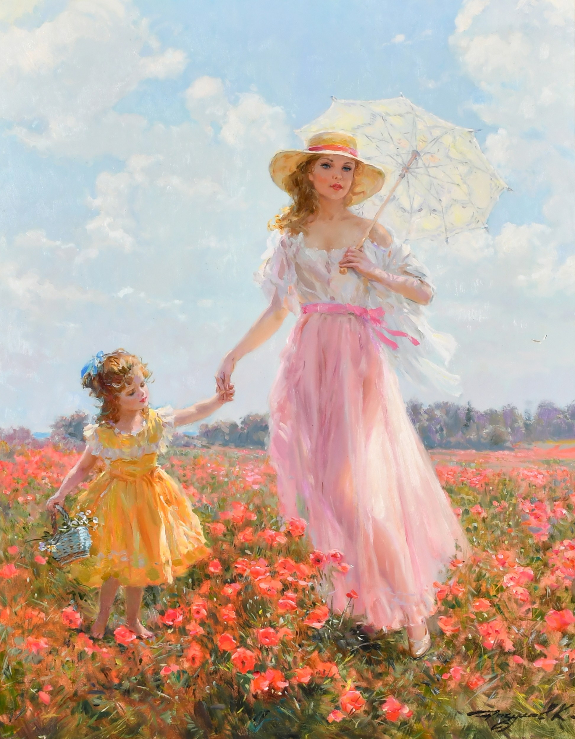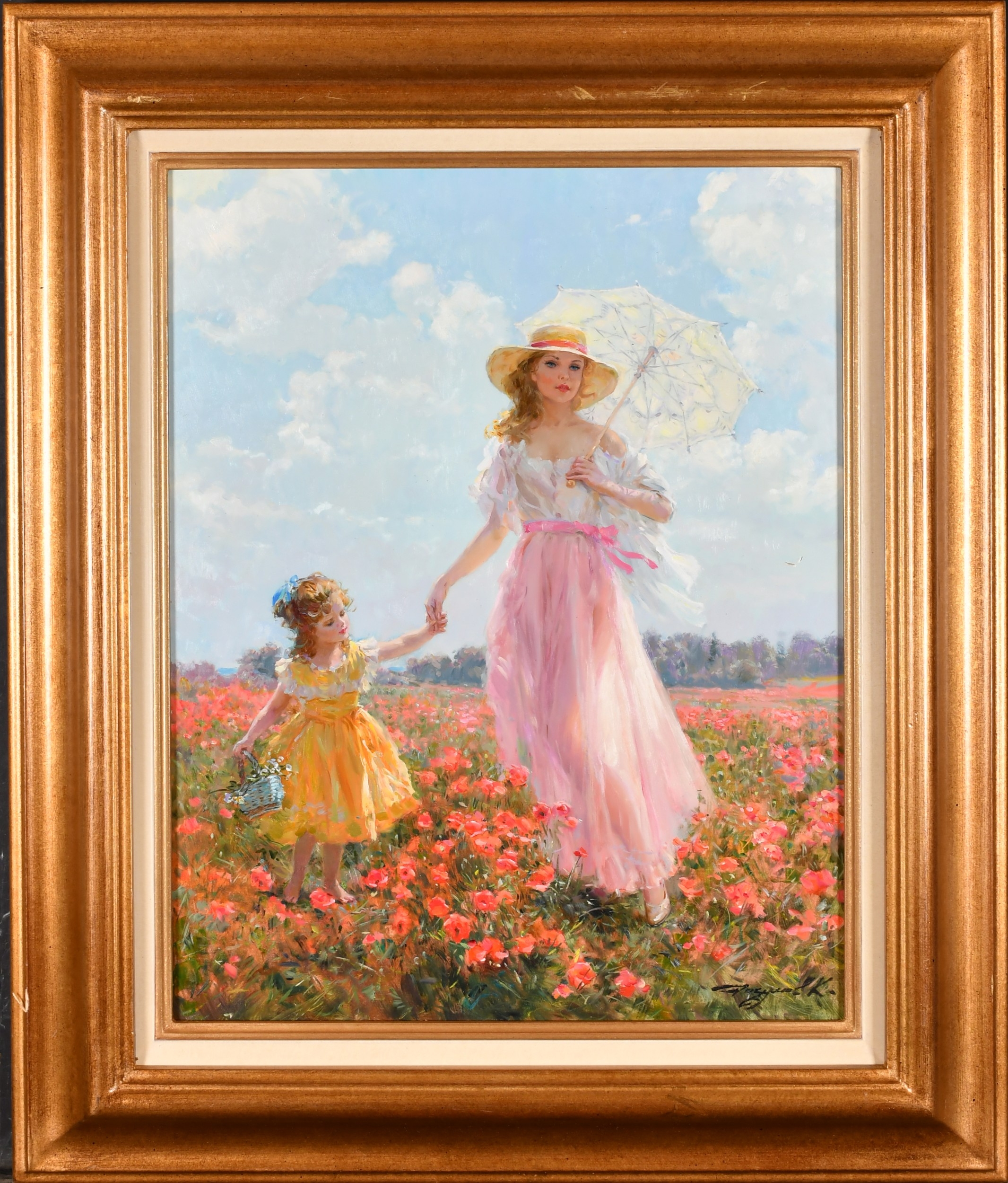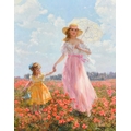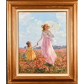 Konstantin Razumov (1974-) Russian. "Walk in a Field of Poppies", Oil on canvas, Signed in Cyrillic, and signed and inscribed in Cyrillic verso, 19.5" x 15.75" (49.5 x 40cm)