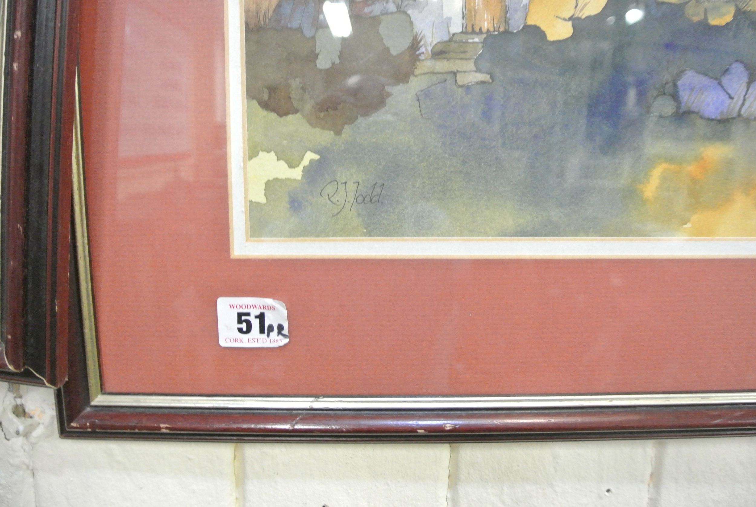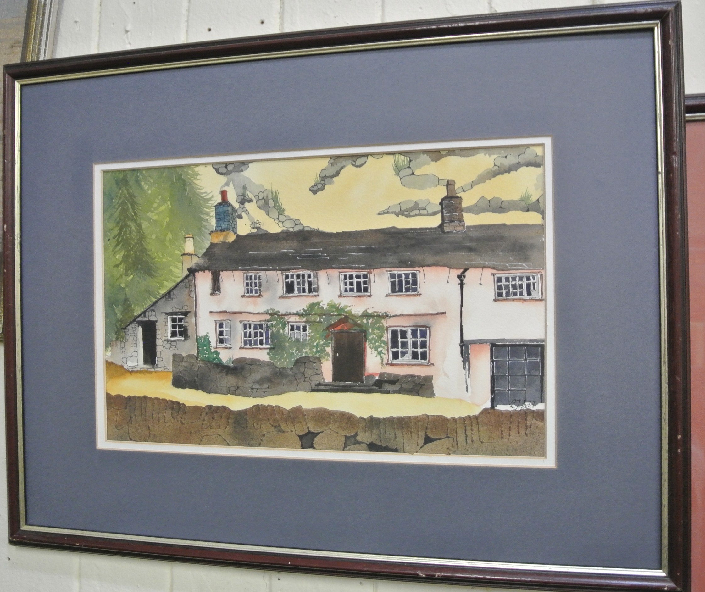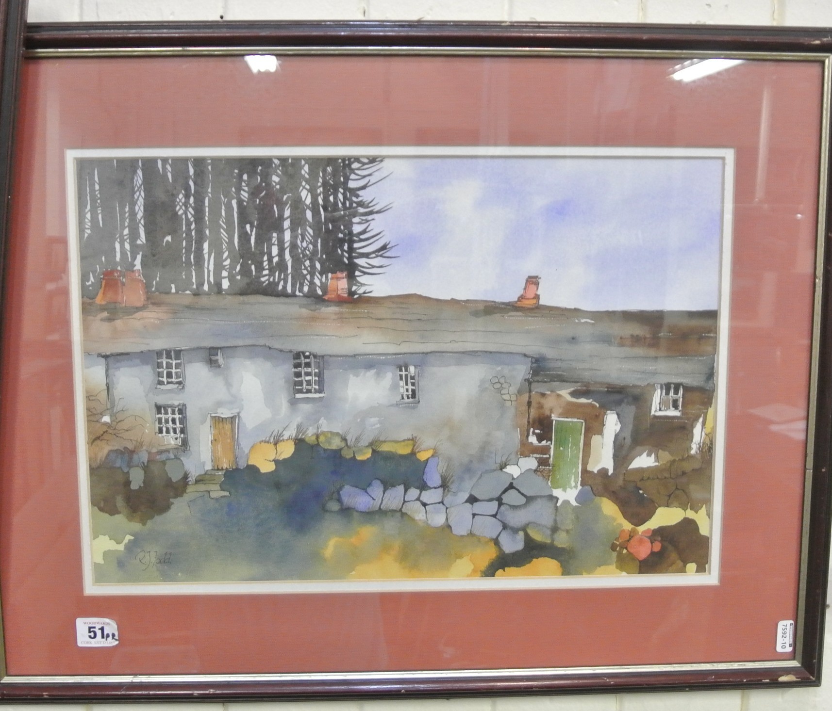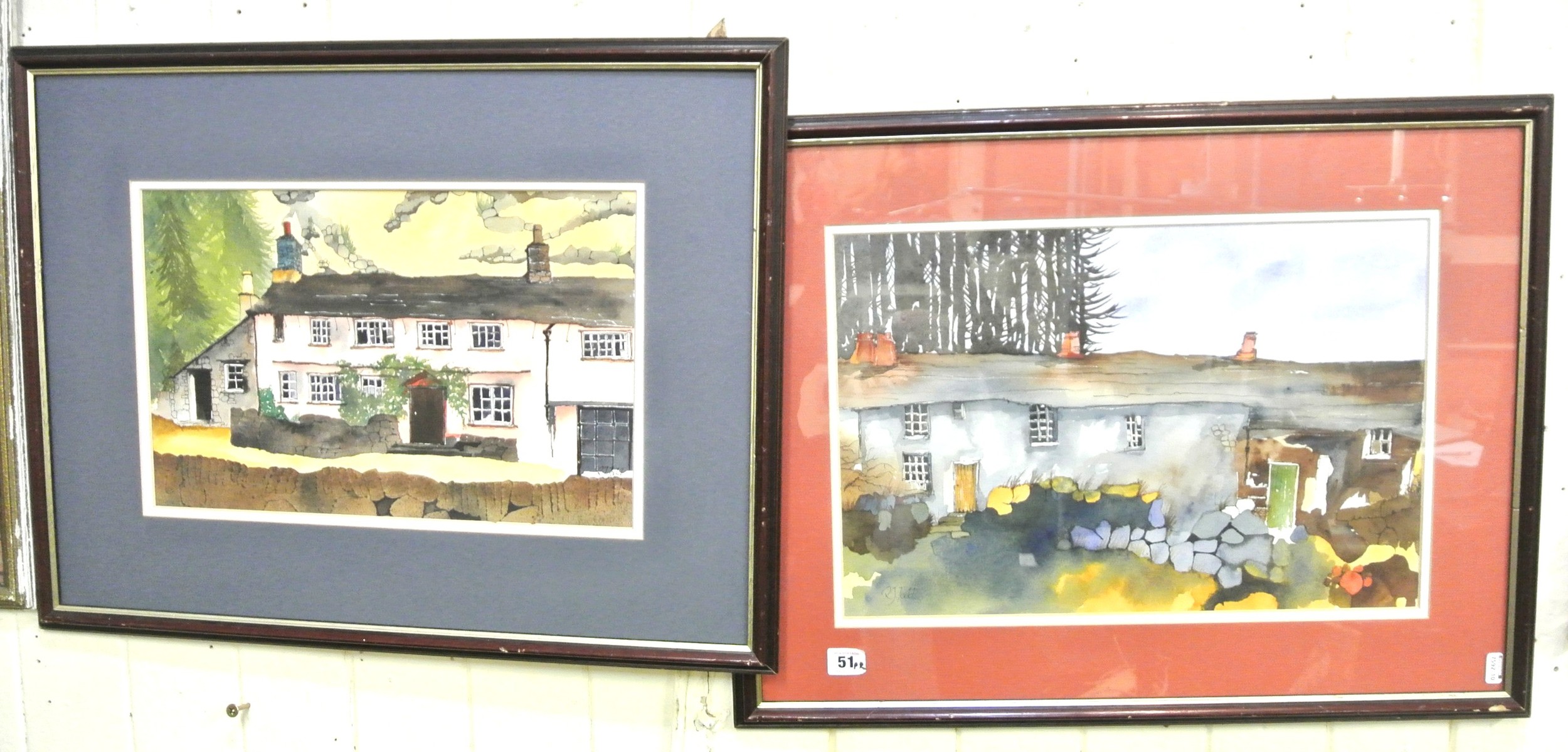 RJ Todd 'Cottages' Pair of watercolours, 26x41cm each, signed