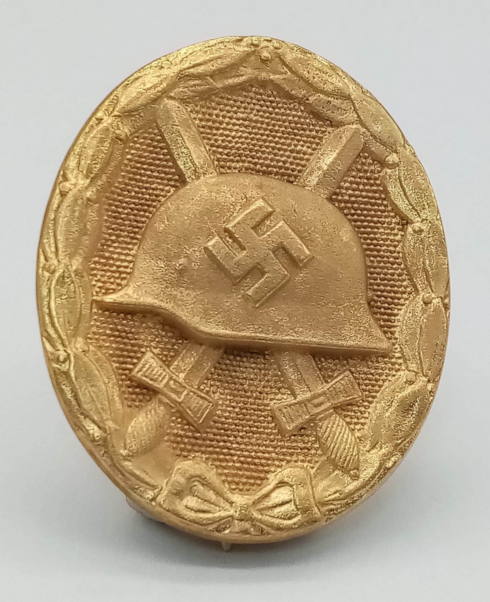 WW2 German Gold Wound Badge (1st class, which could be awarded posthumously) for five or more times wounded. Maker Marked L/11 for Grossman & Co, Wien.