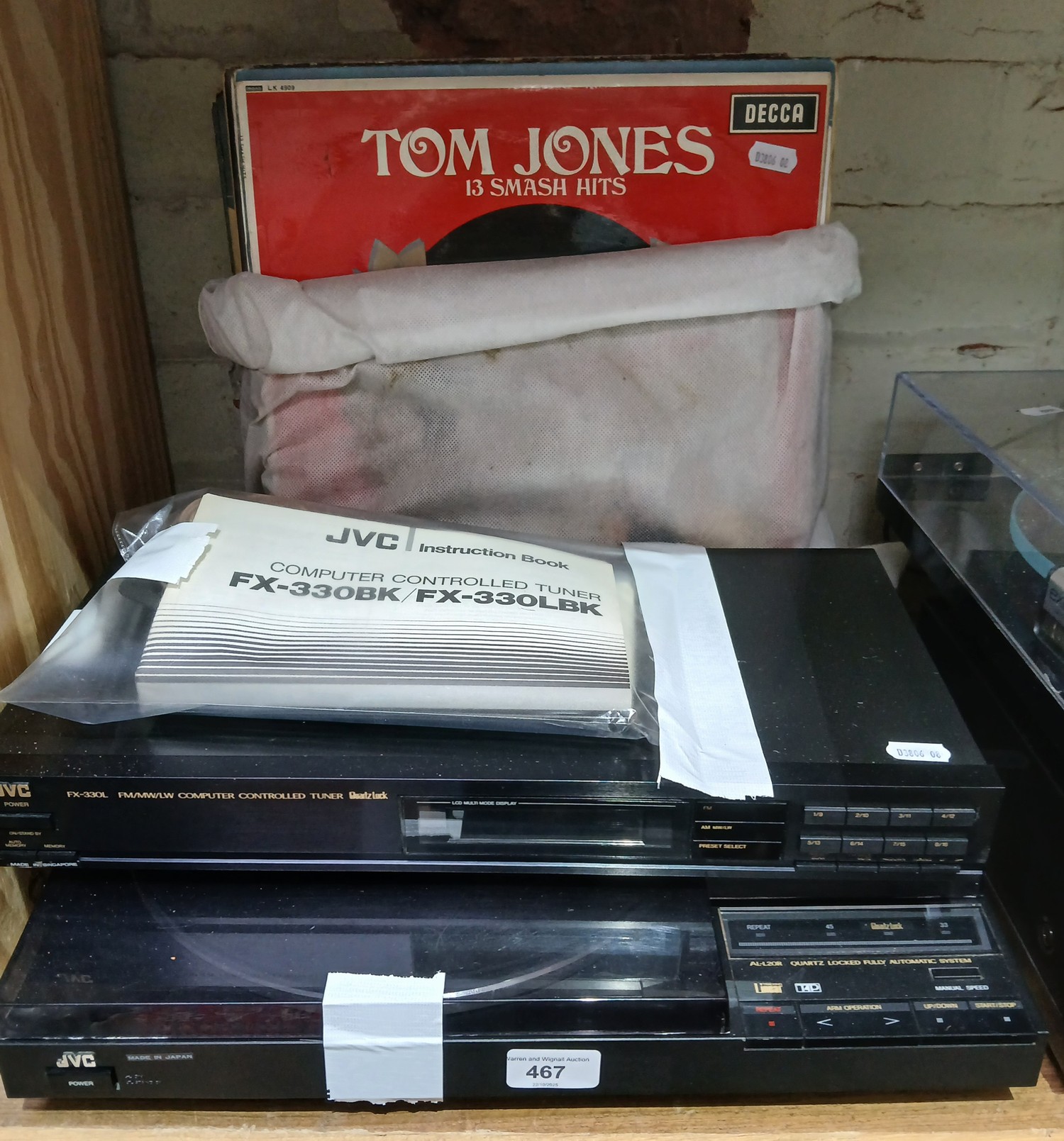 JVC AL-L20RBK turntable FX330BK tuner and assorted LPs.