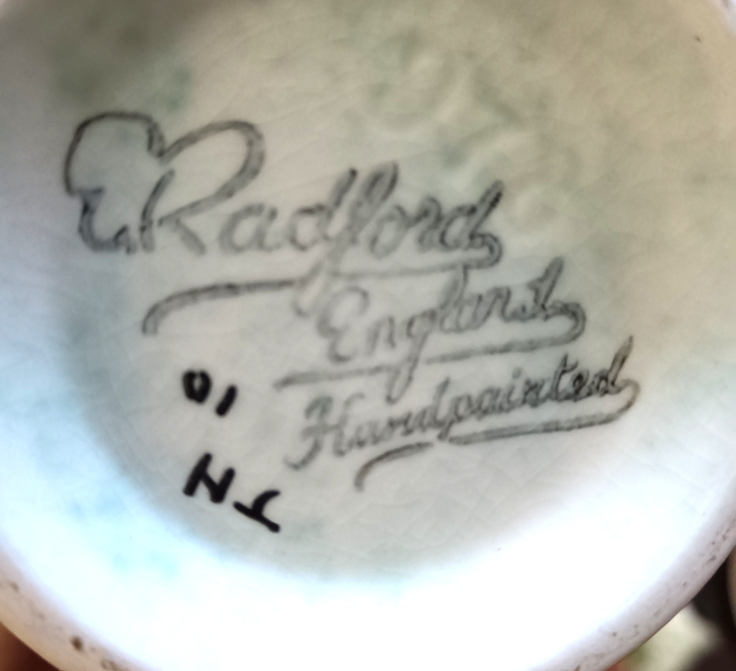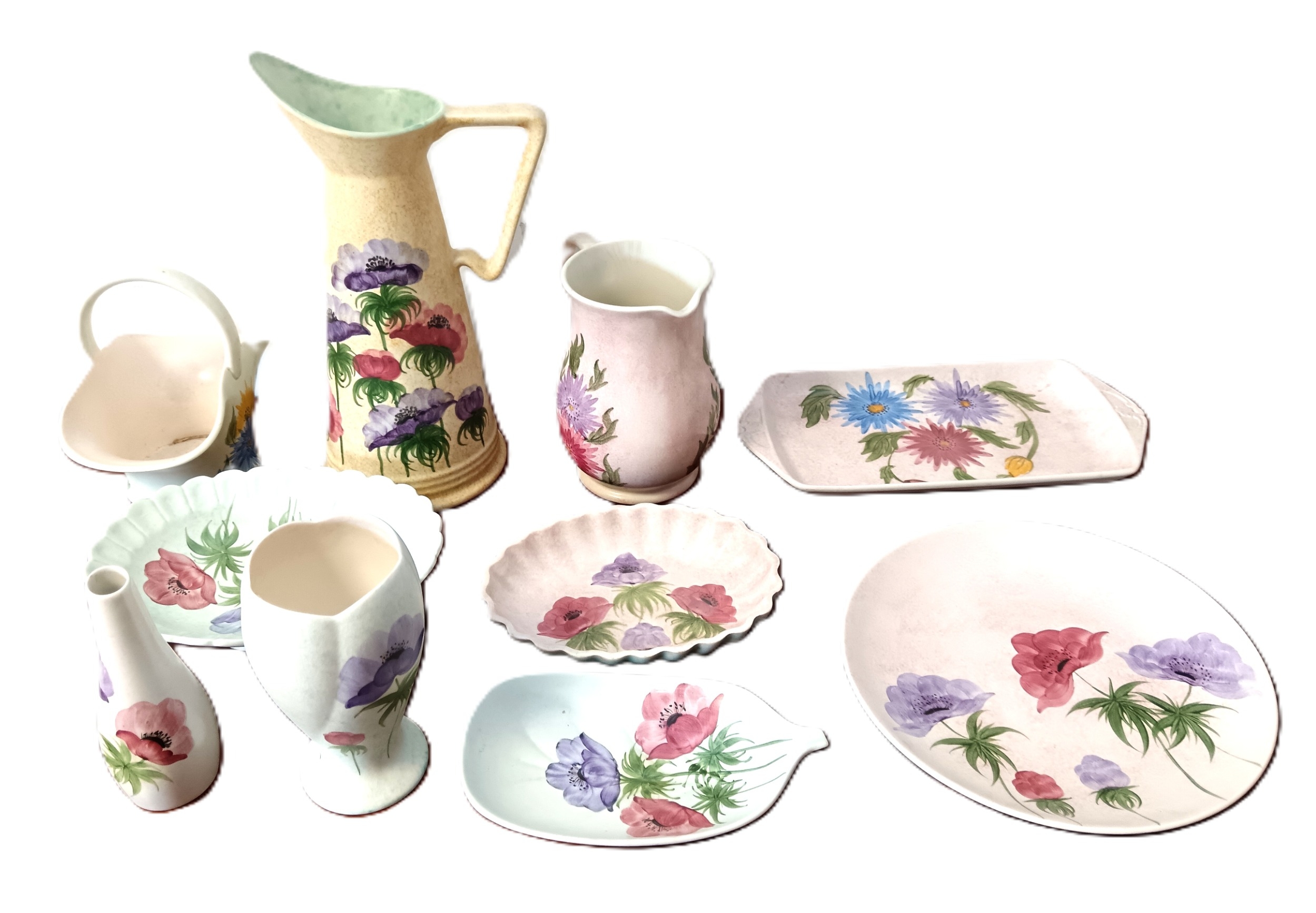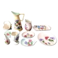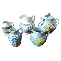 A collection of Radford pottery, to include jugs and a plate, each with typical hand-painted decoration and glazed finishes