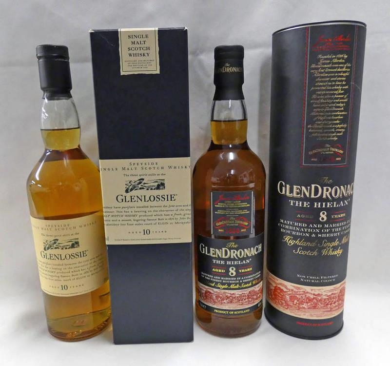 2 BOTTLES SINGLE MALT WHISKY : GLENLOSSIE 10 YEAR OLD - 70CL, 43% BOXED & GLENDRONACH 8 YEAR OLD THE HEILAN - 700ML, 46% VOL IN TUBE