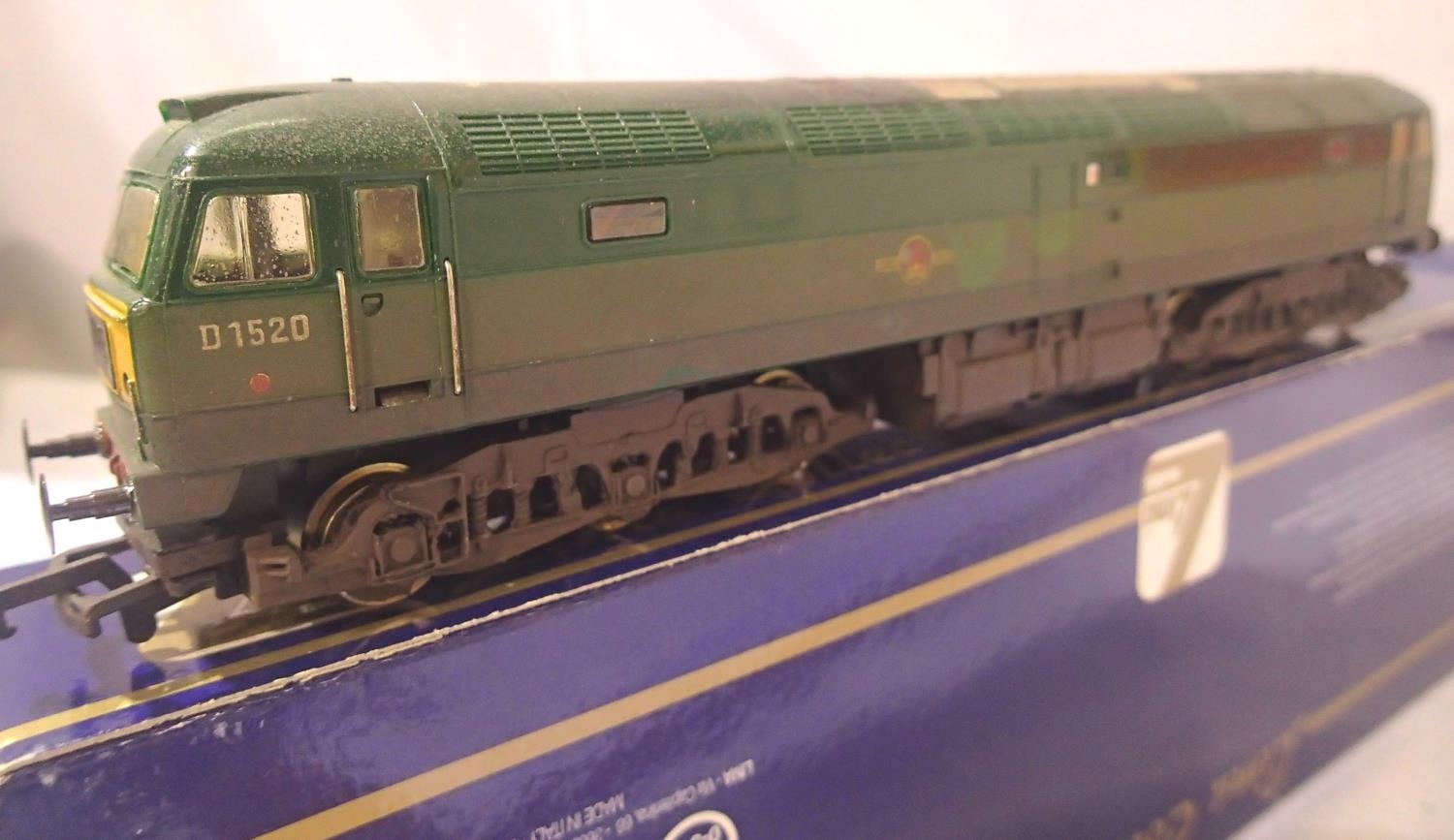 Hornby D1520, two tone Green, Late Crest, heavily weathered, in fair to good condition, wrong box. P&P Group 1 (£14+VAT for the first lot and £1+VAT for subsequent lots)