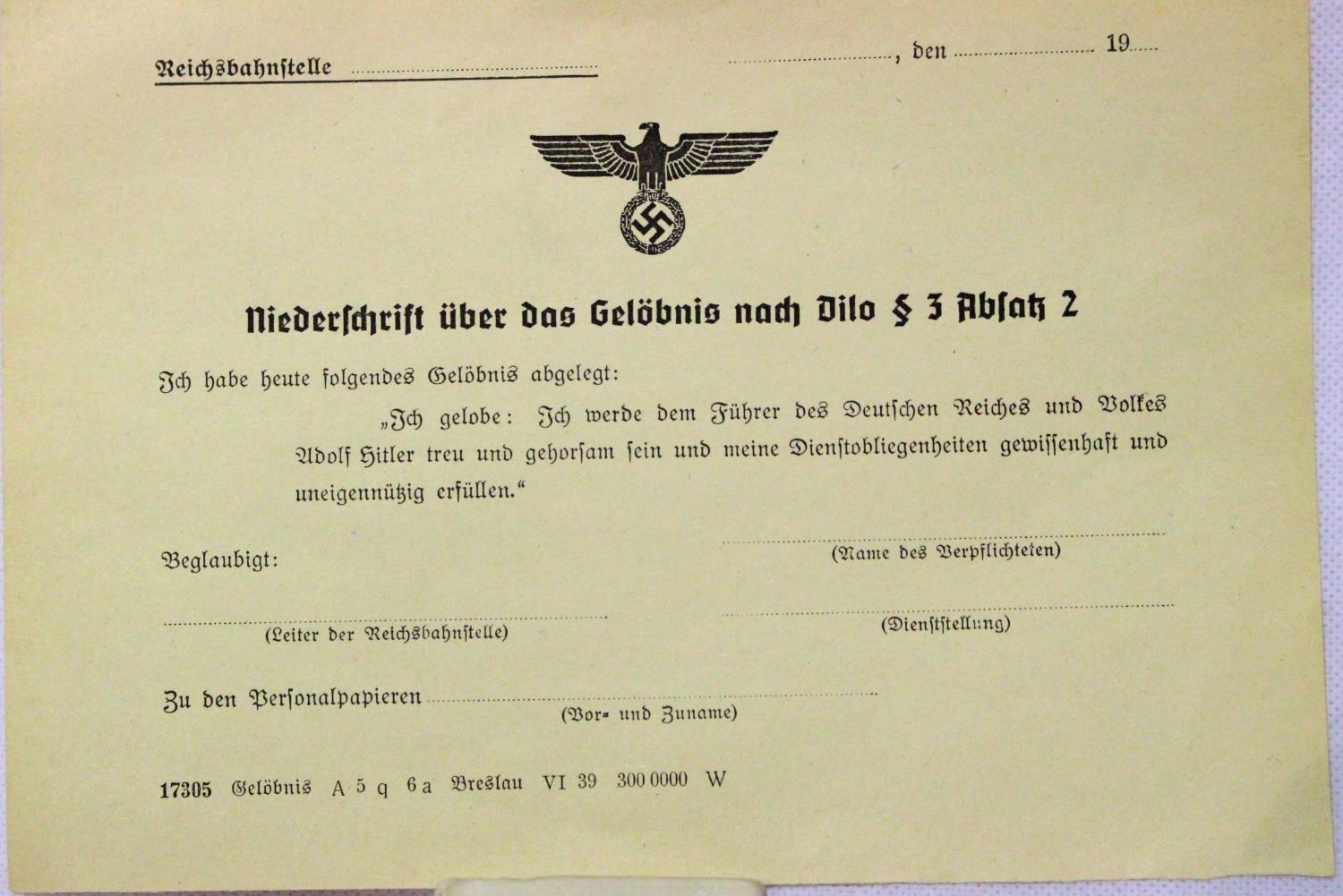 German Third Reich Oath of Office, printed page, unused. P&P Group 1 (£14+VAT for the first lot and £1+VAT for subsequent lots)