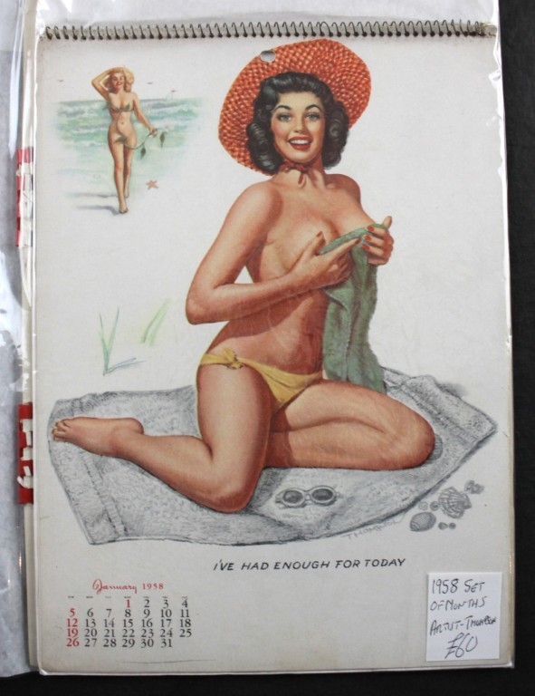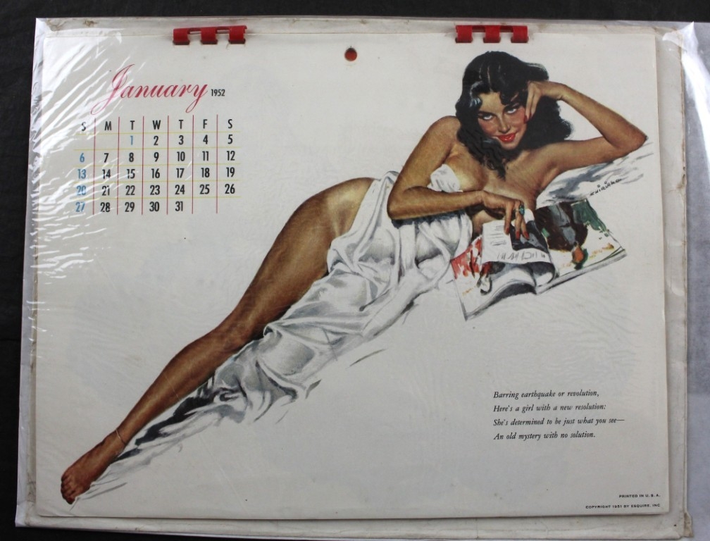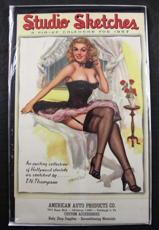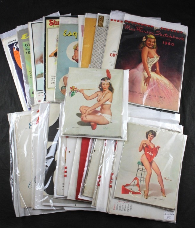 PIN UP CALENDARS: a group of 24, mostly 1950s period, to include examples issued by Esquire: Studio Sketches (for American Auto Products Co): Macpherson Sketch Book (For Tennessee Electric Motor Service) and similar, spiral bound and other formats, gen g-vg. (24)