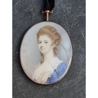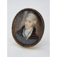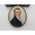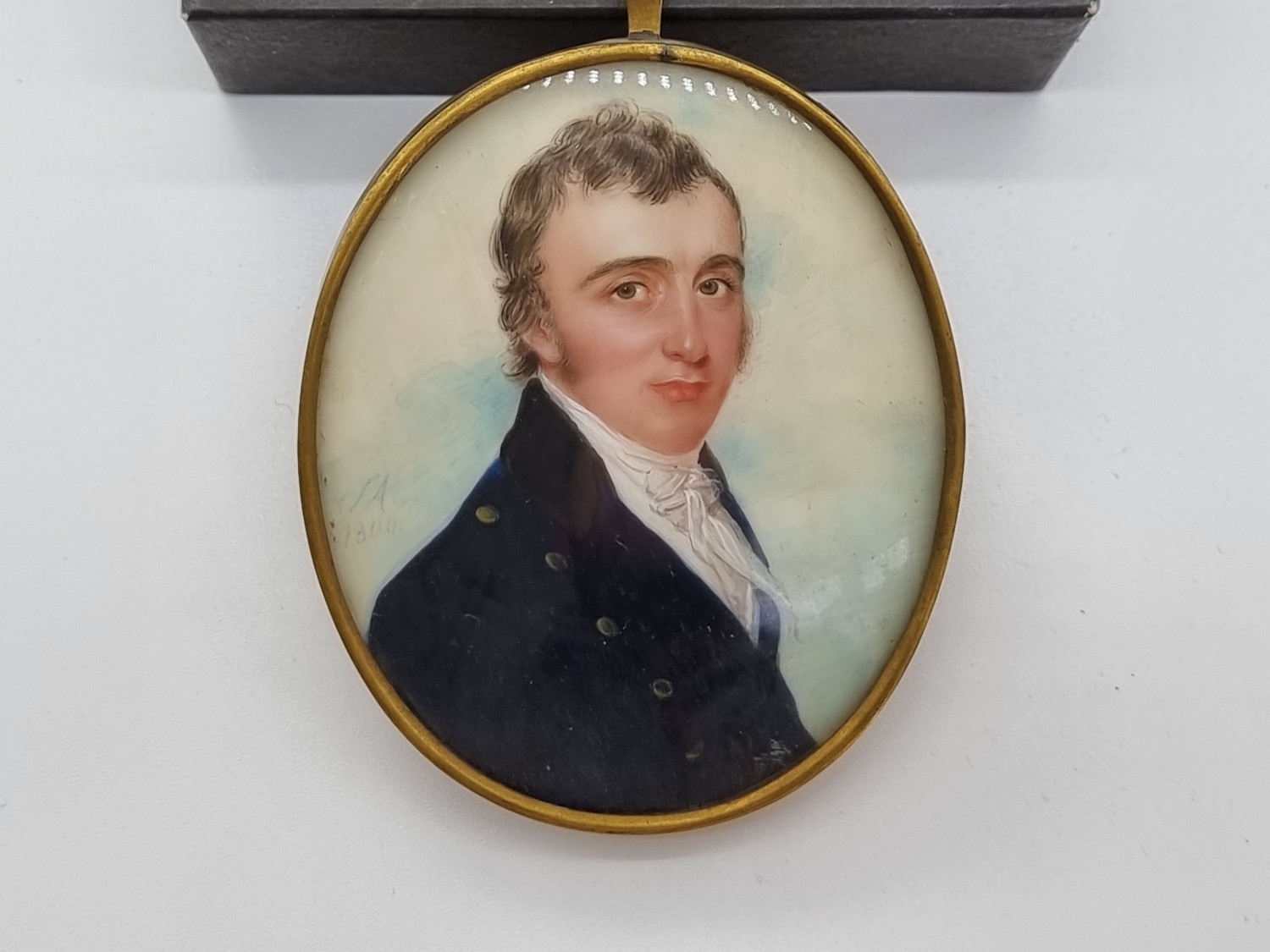 J. A., late 18th century/early 19th century, head and shoulders portrait miniature of a gentleman wearing a blue jacket and a white cravat, initialled and dated 1800, on ivory, 7.4 x 6cm oval.