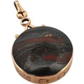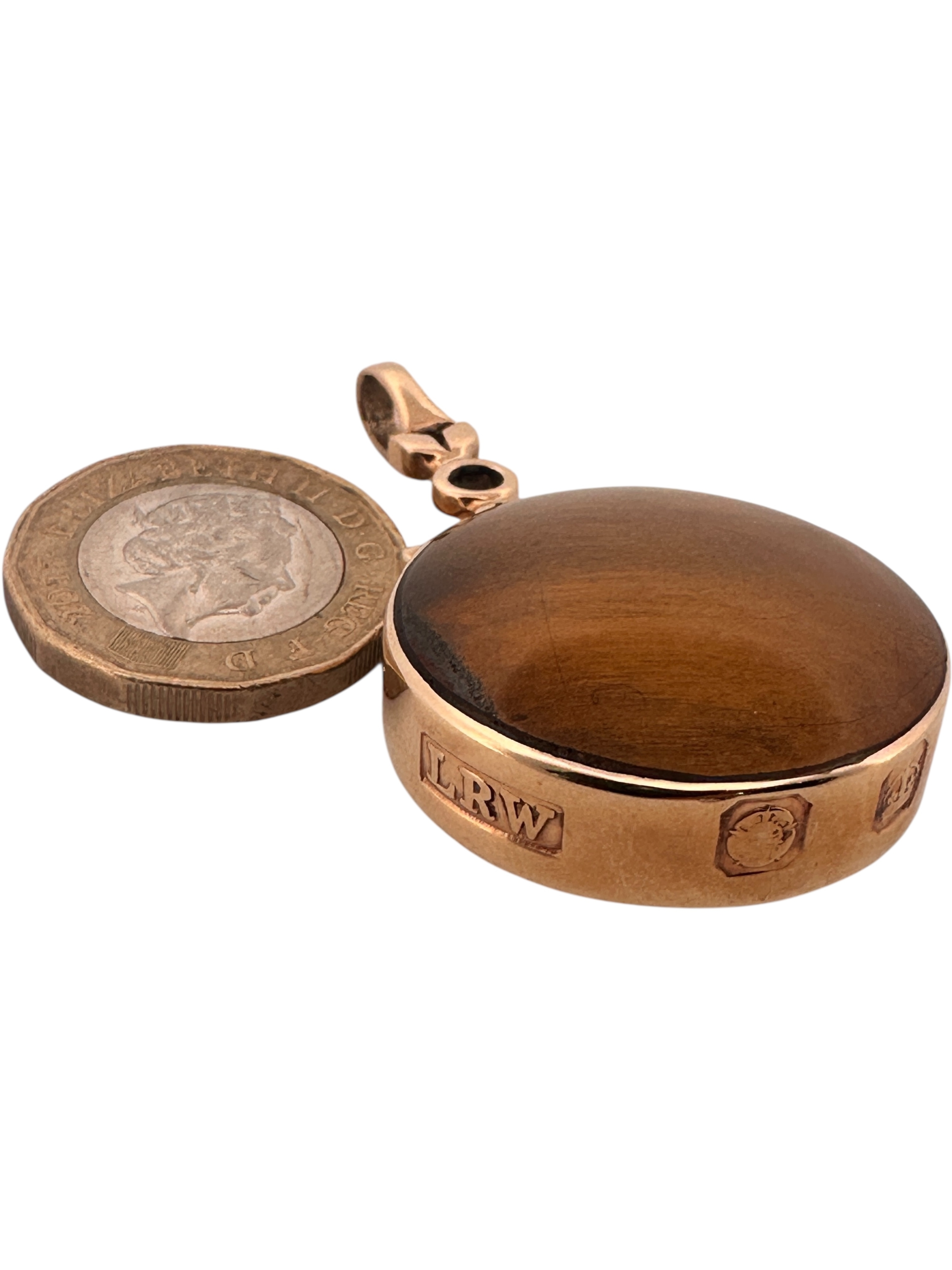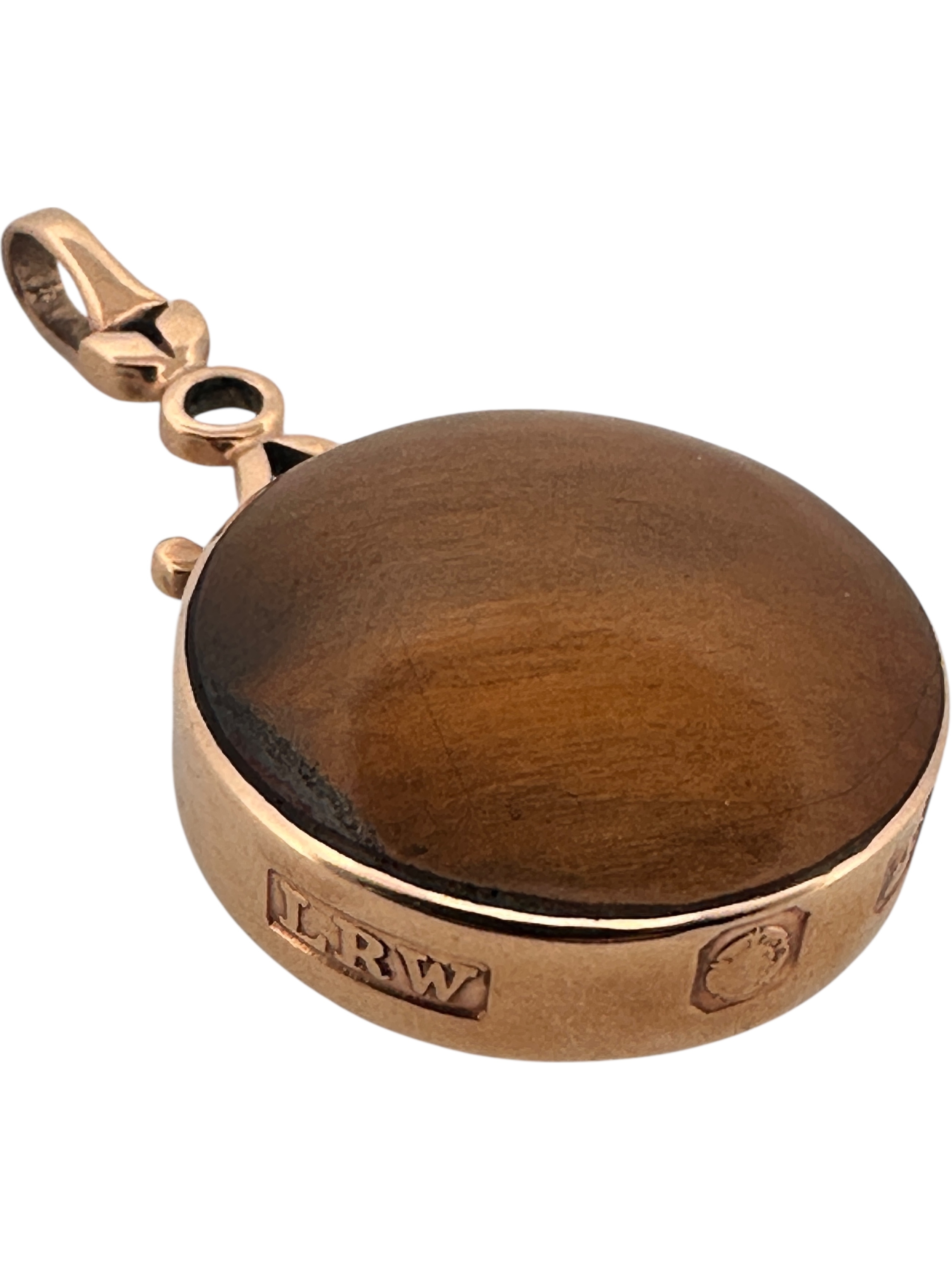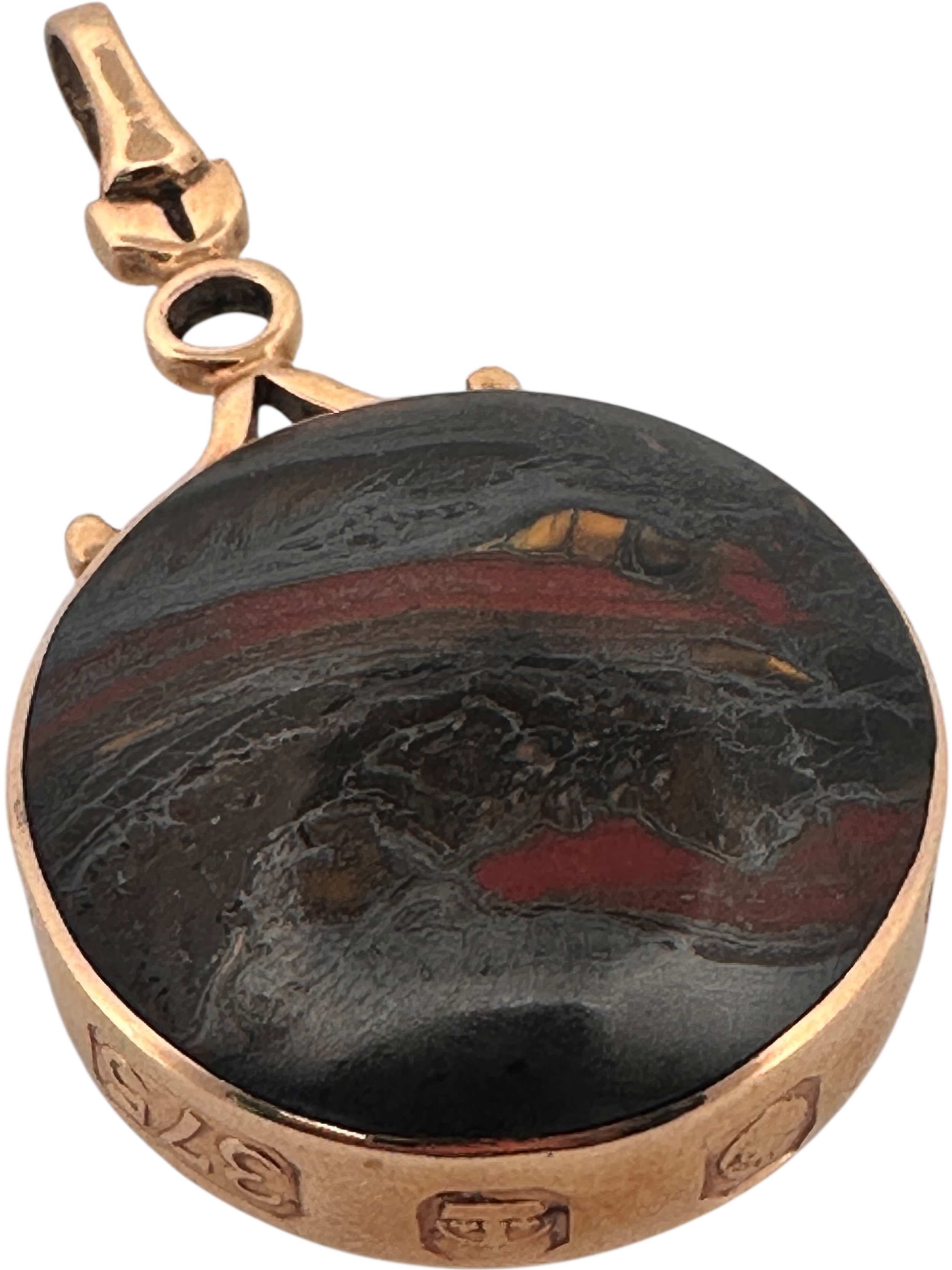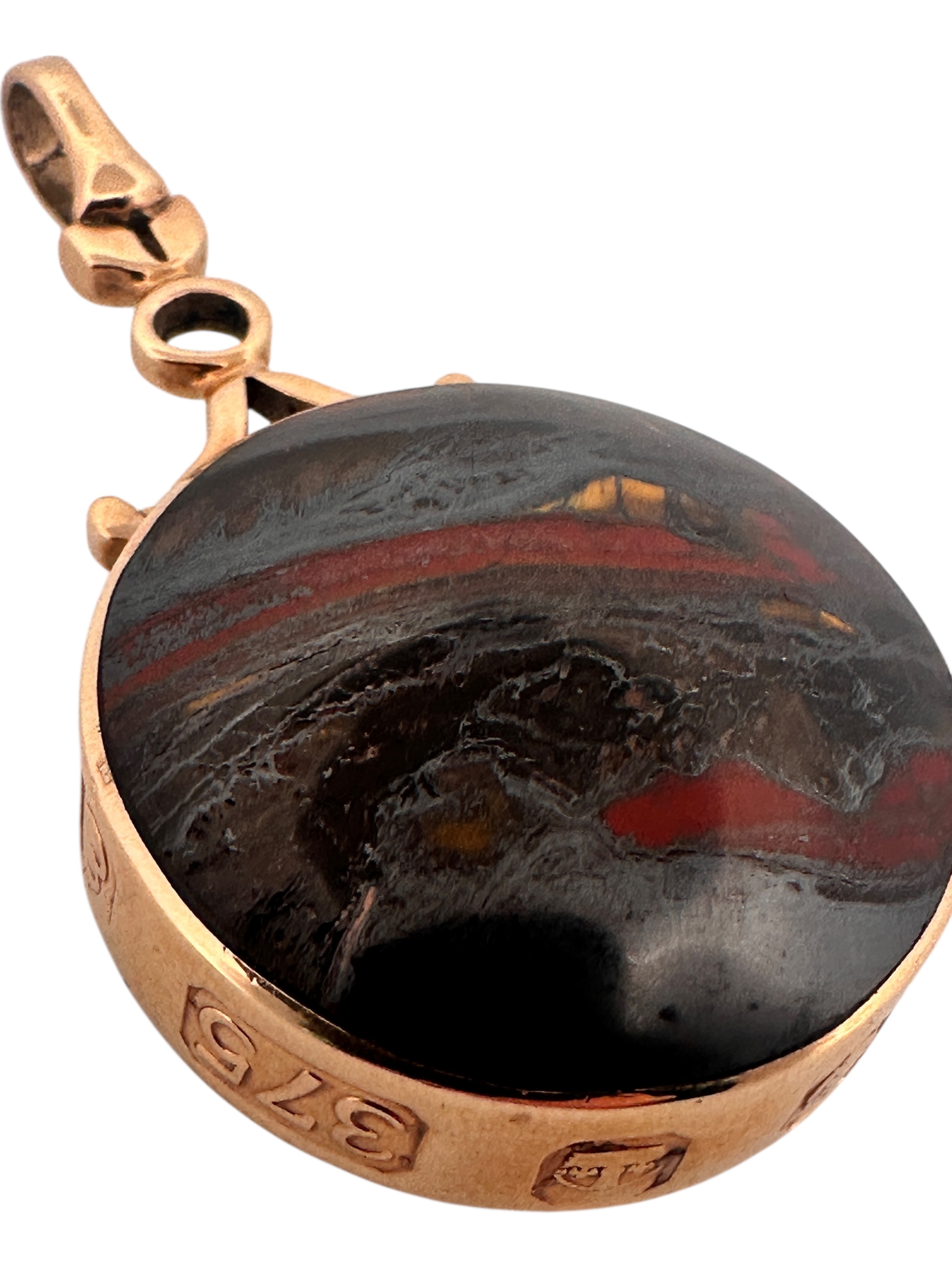 Large Polished Stone Fob with Thick Hallmarked Gold Surround. 21.8g gross.