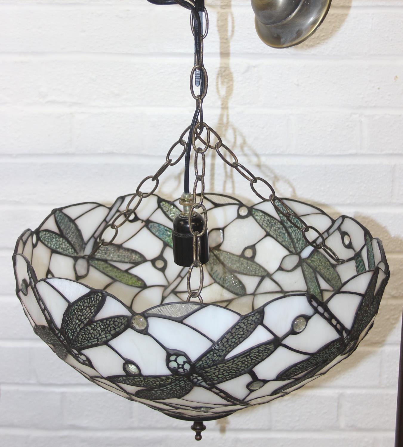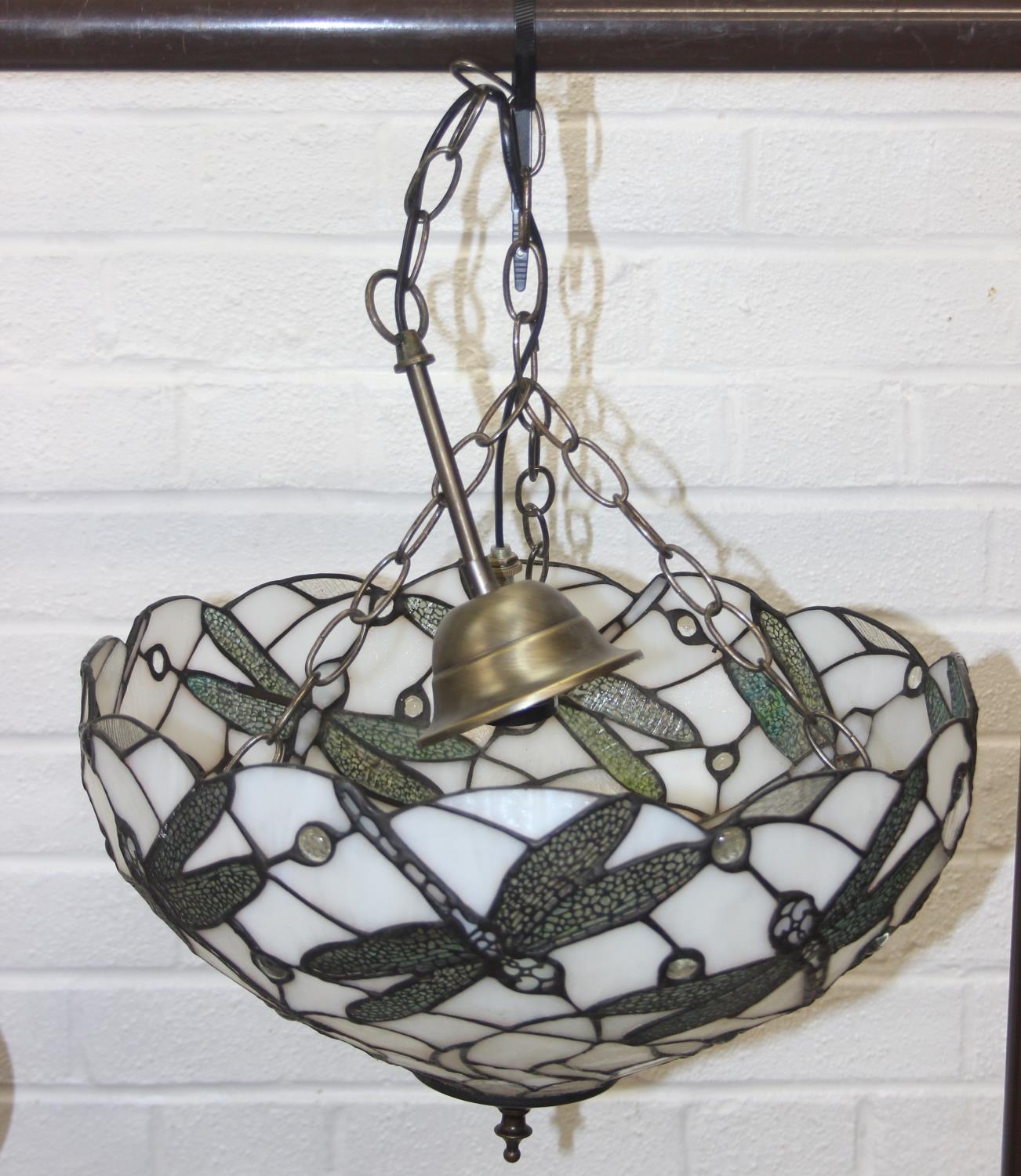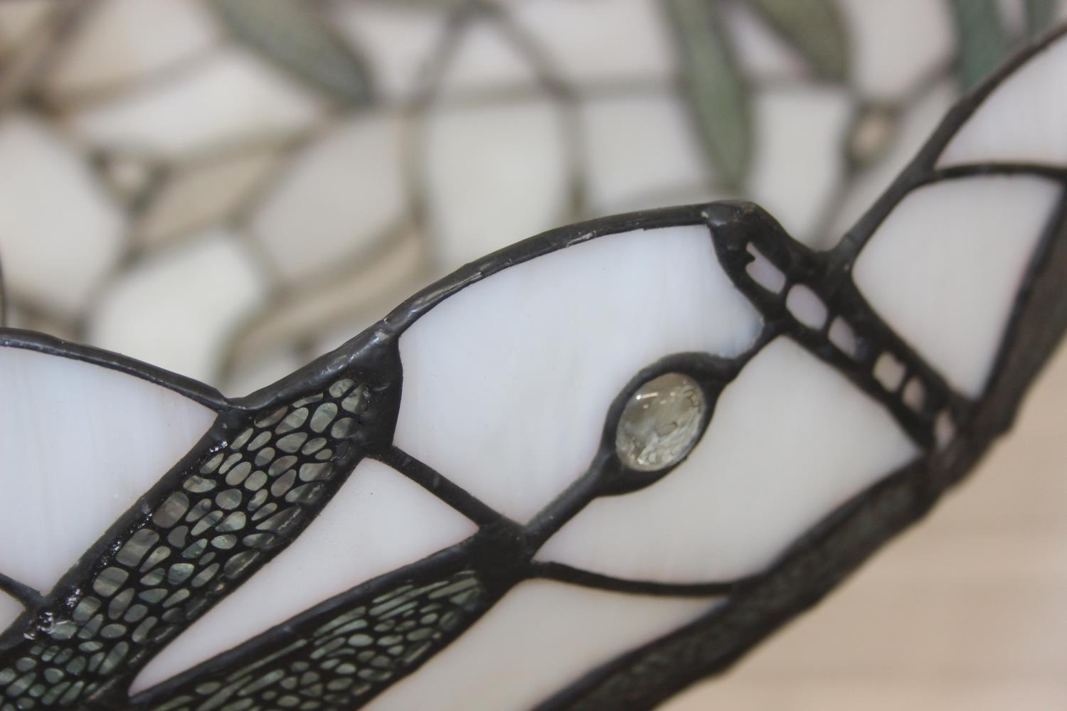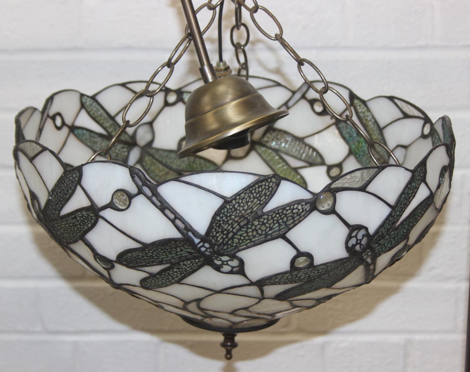 Tiffany style leaded glass ceiling uplighter shade with dragonfly design, 40cm diameter